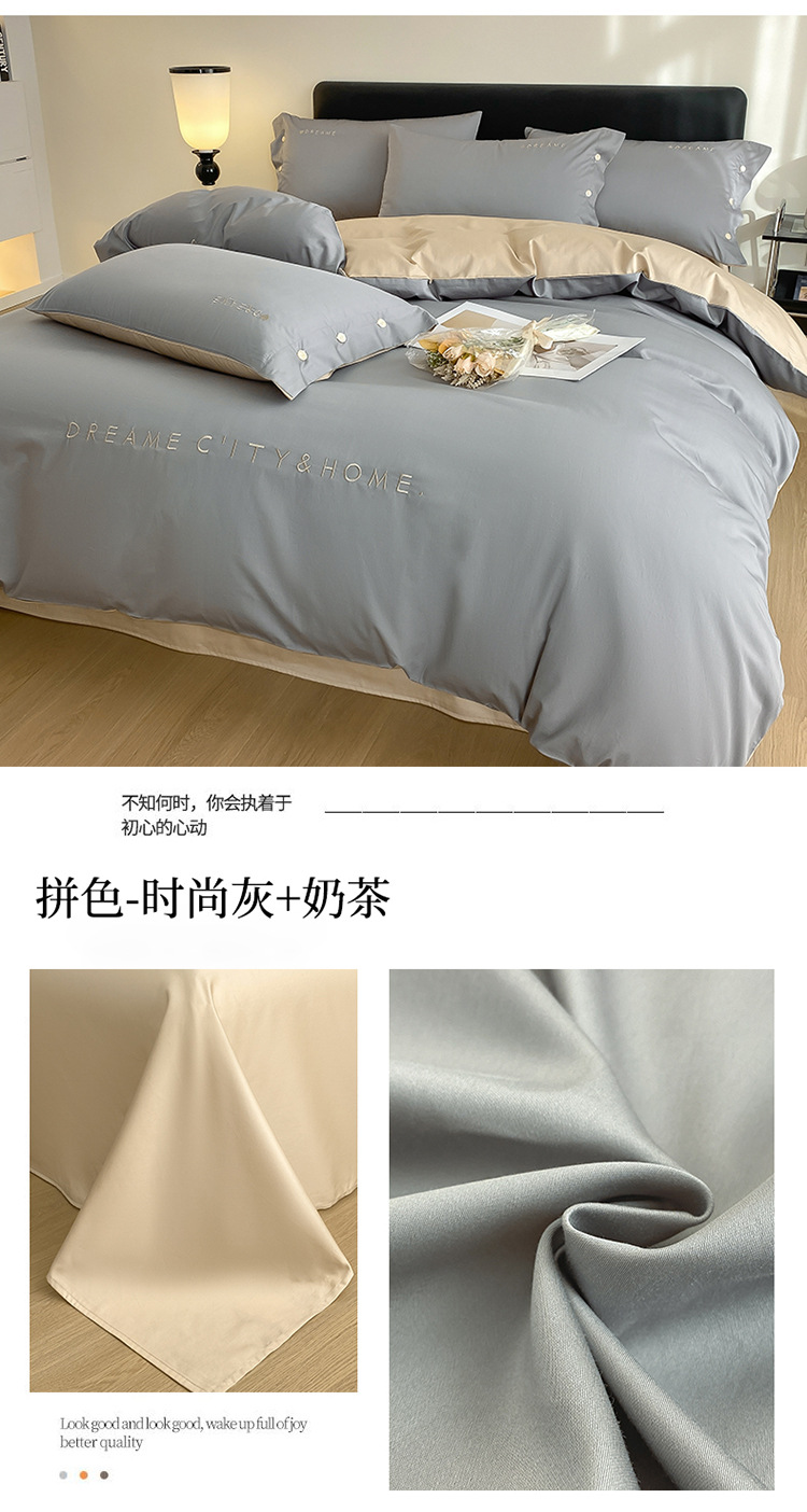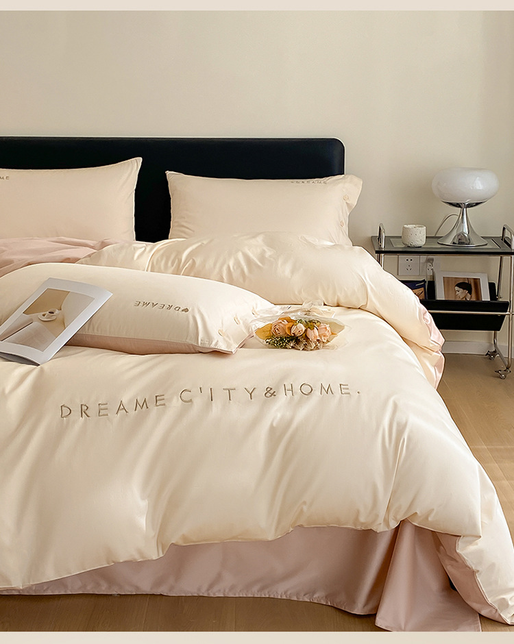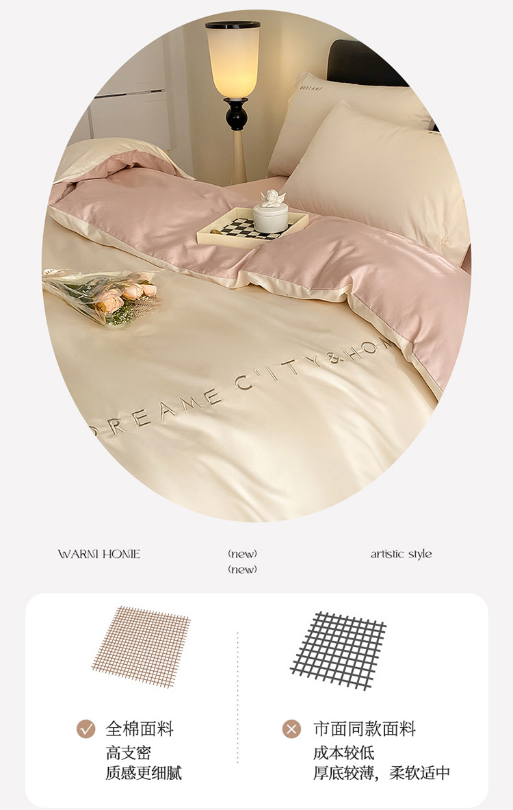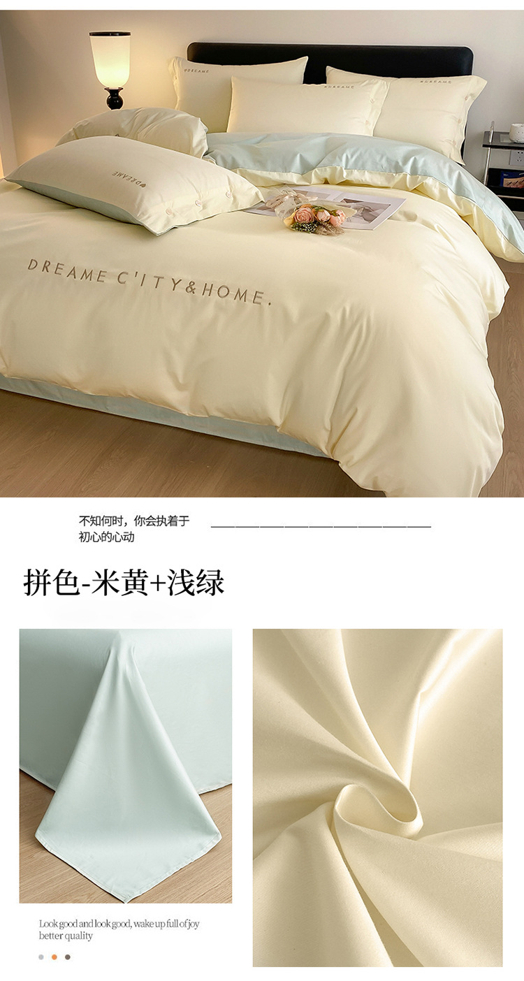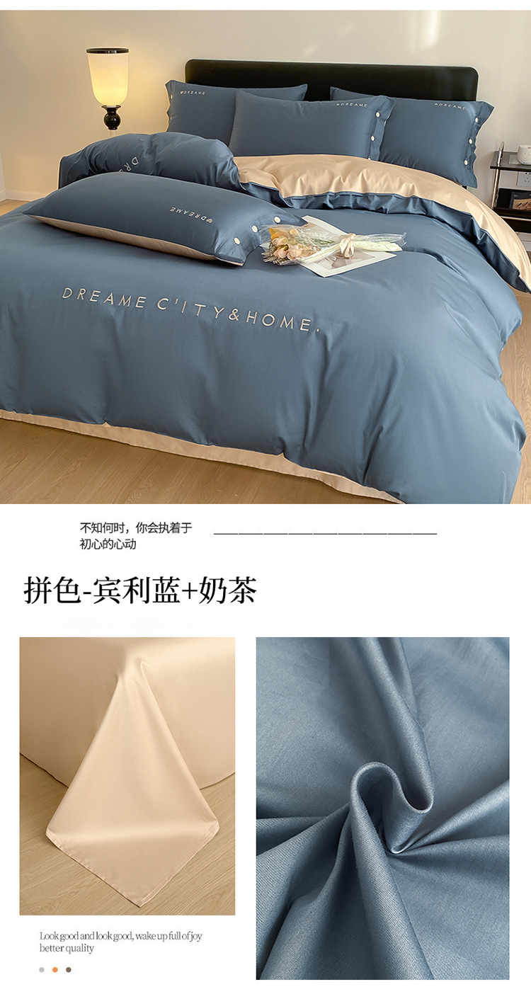 Cama de algodón cuatro piezas estudiantes tres piezas cubierta de edredón bordado de algodón sábanas caseras ropa de cama impresión y teñido activo