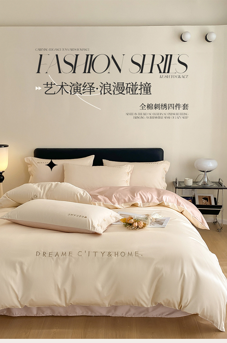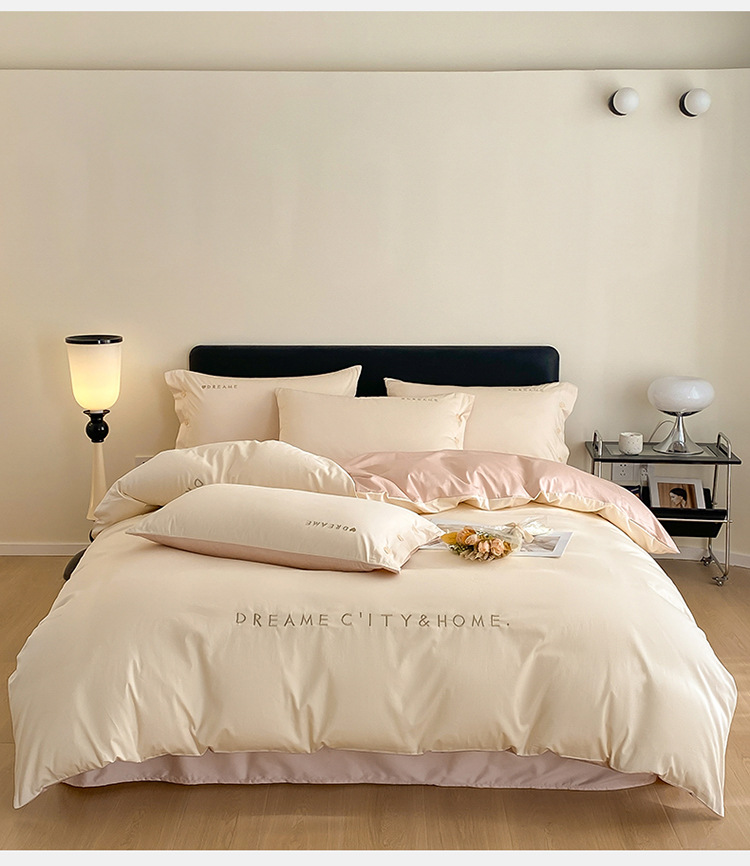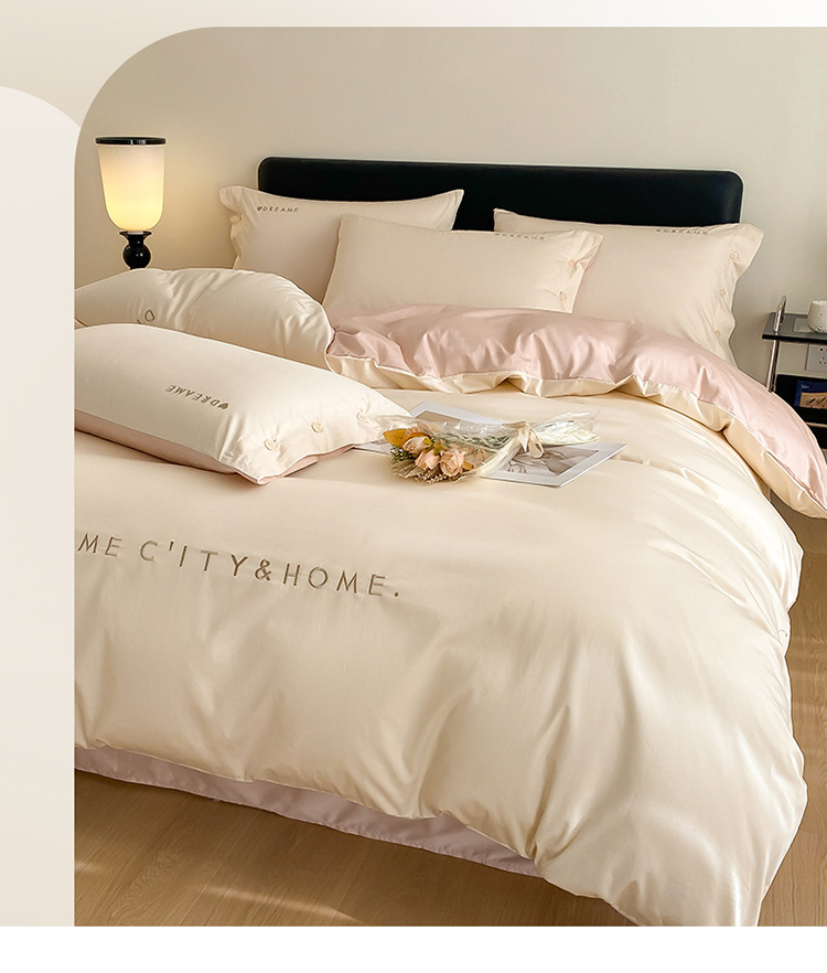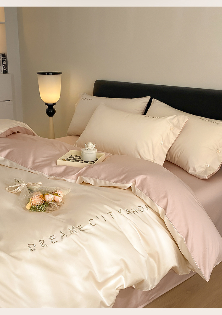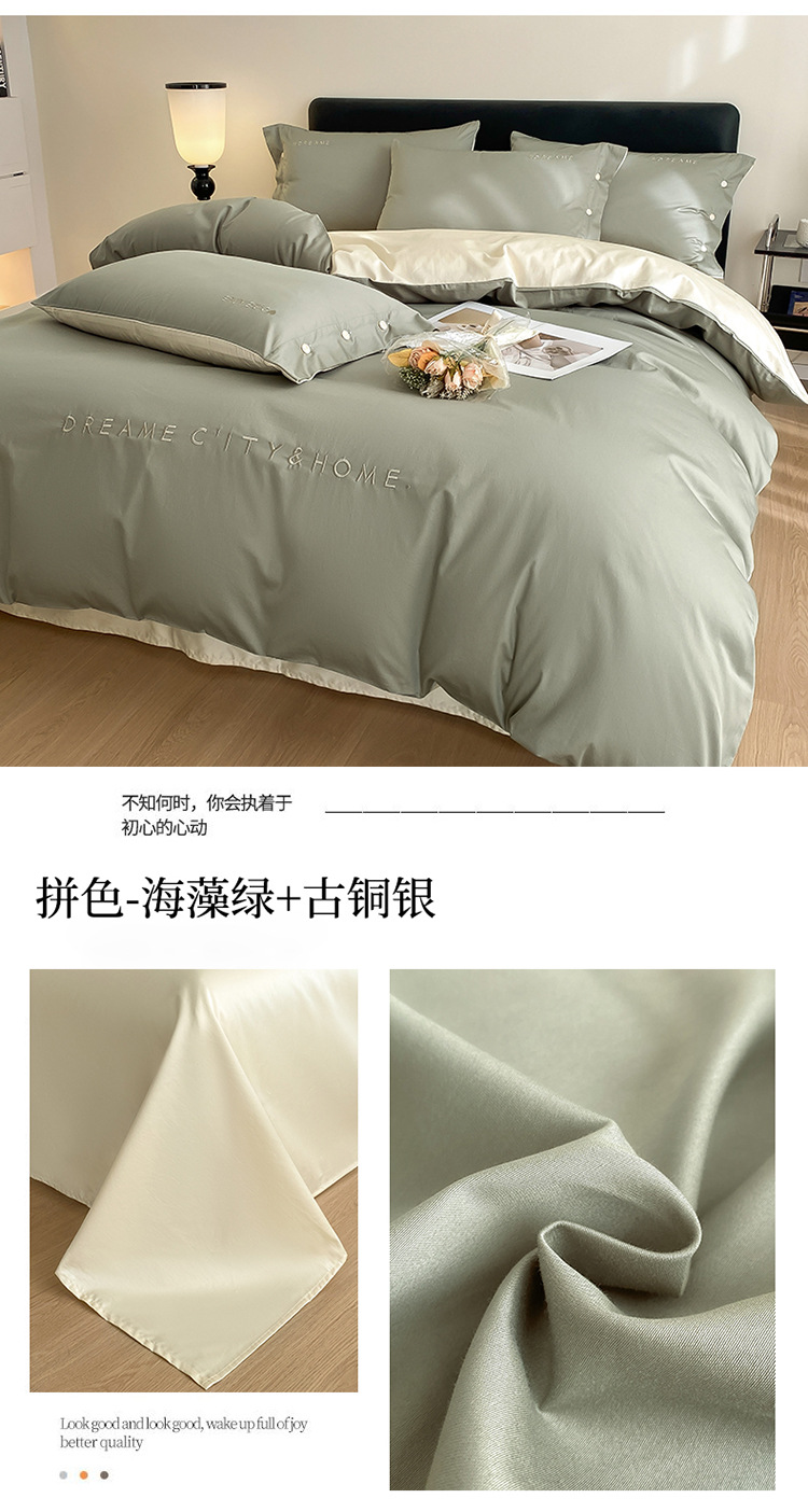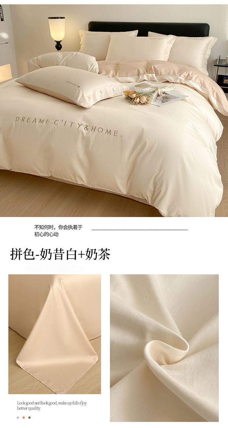 Cama de algodón cuatro piezas estudiantes tres piezas cubierta de edredón bordado de algodón sábanas caseras ropa de cama impresión y teñido activo