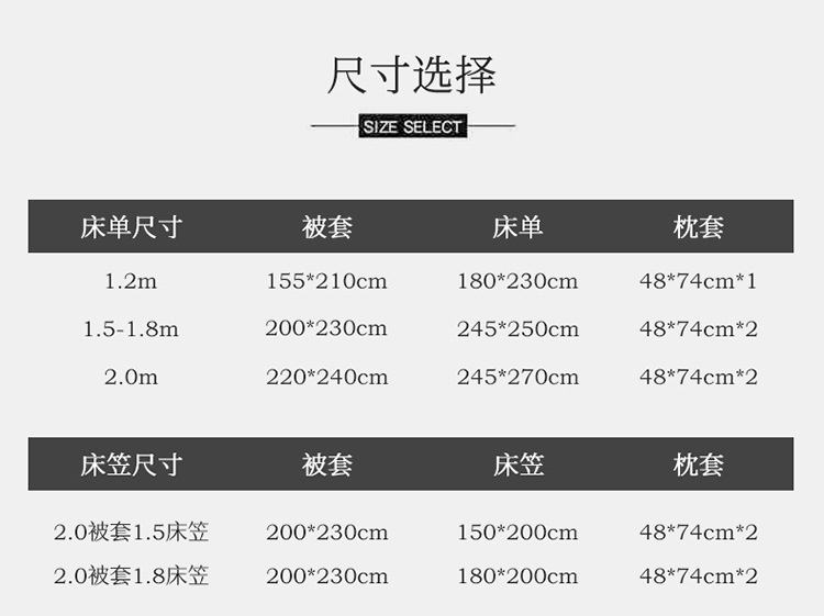 | Especificaciones de tamaño | 155 * 210cm edredón único, 180 * 220cm edredón único, 200 * 230cm edredón único, 220 * 240cm edredón único, tres juegos de sábanas individuales - edredón 150 * 200, 1,5 m edredón cuatro juegos - edredón 200 * 230cm, 1,8 m edredón cuatro juegos - edredón 200 * 230cm, 2,0 m sábanas cuatro juegos - edredón 220 * 240cm, 1,5 m edredón cuatro Juegos - edredón 200 * 230cm, 1,8 m edredón cuatro juegos - edredón 200 * 230cm |