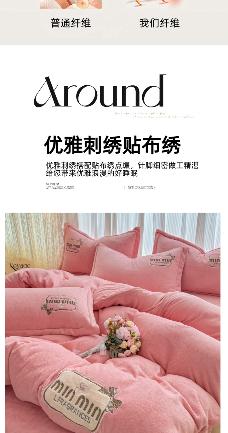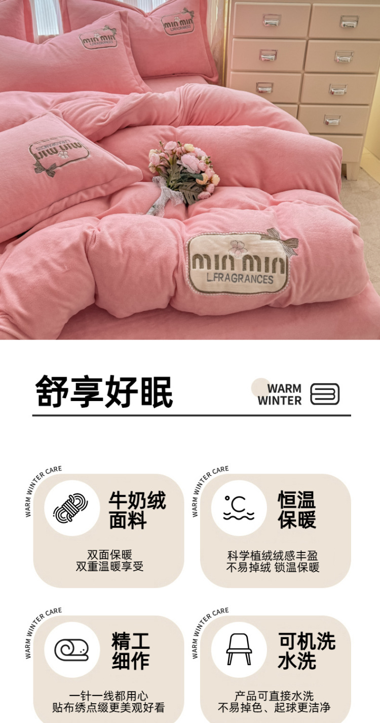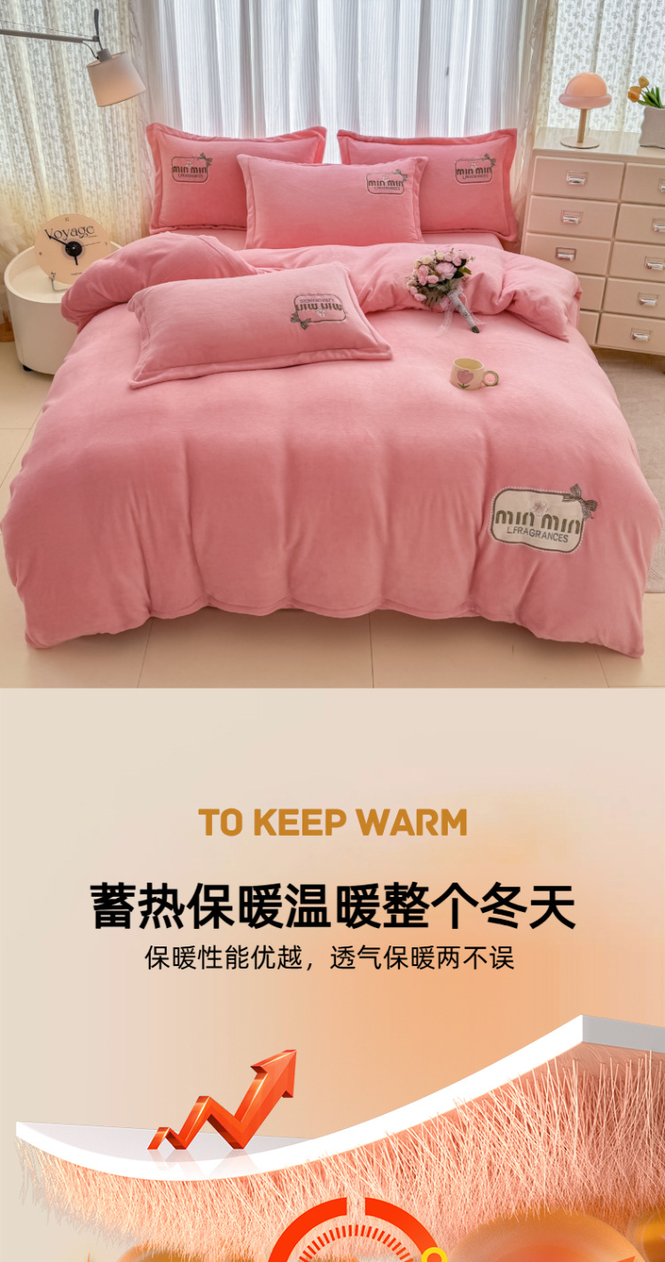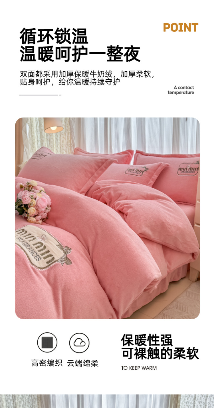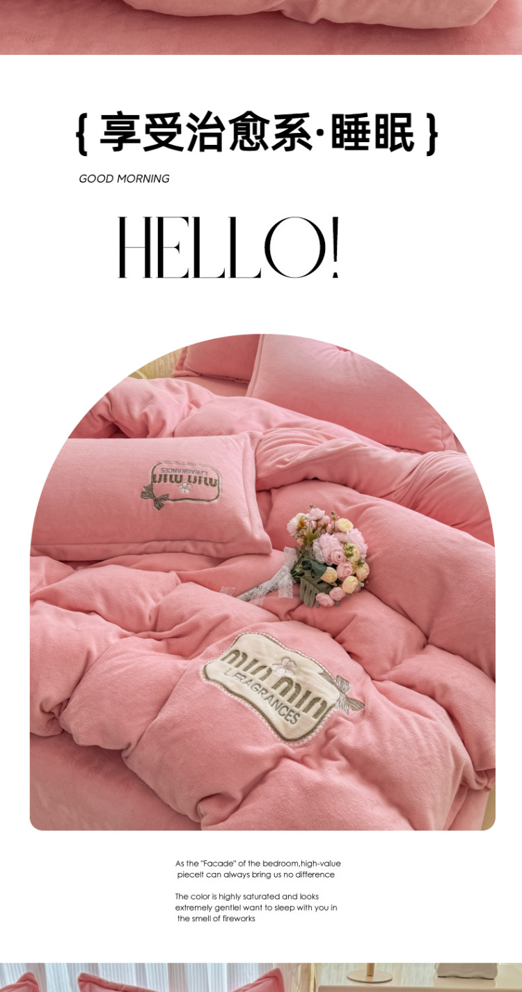 Tejido de bordado caliente grueso de lana de leche de cuatro piezas de sábanas cubiertas de edredón de bordado de tres piezas de cama al por mayor