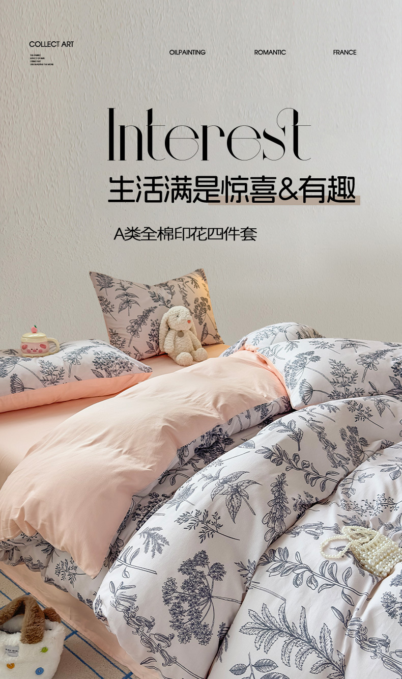 Juego de cuatro piezas de modelo de hoja de cama de 1,5 m [juego de edredón 200 * 230cm]