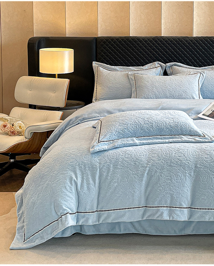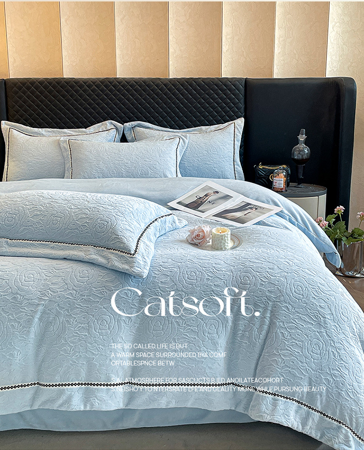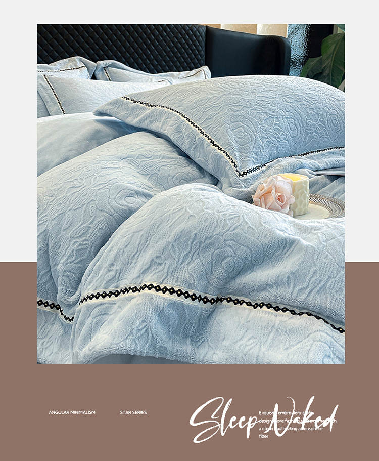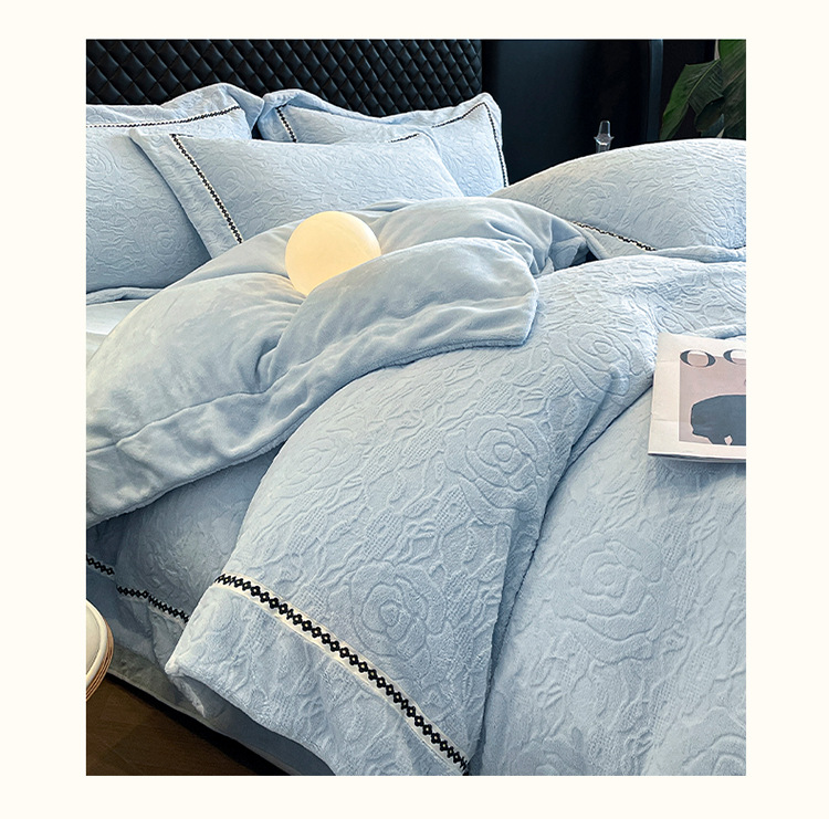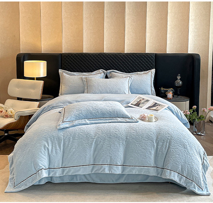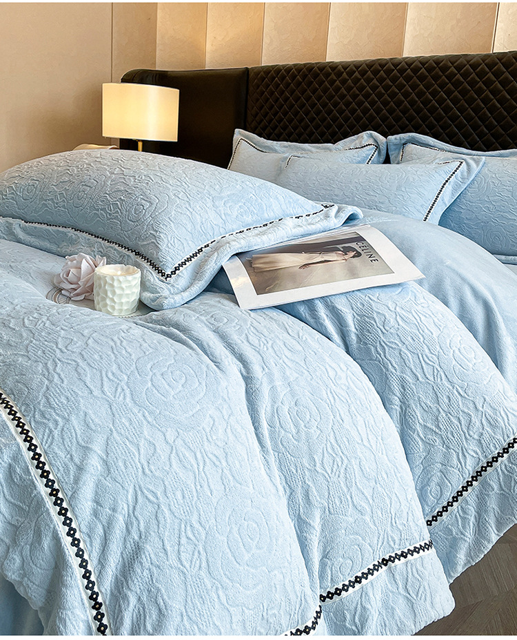 Cama de cama de clase A leche de lana de cuatro piezas de sábanas gruesas cubiertas de cama de cuatro piezas fabricantes de conjuntos de tallado