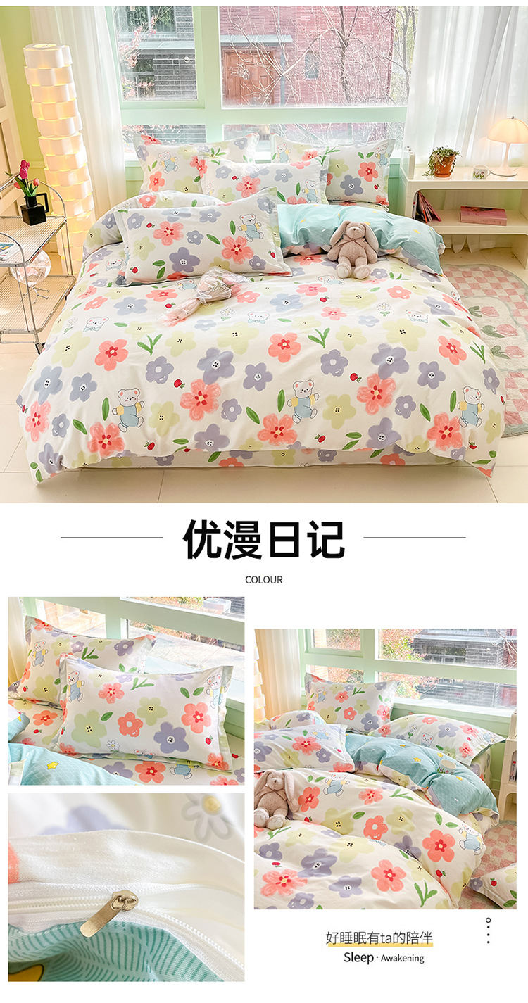 Juego de sábanas de cuatro piezas de 1,5 m [funda de edredón 180*220cm]
