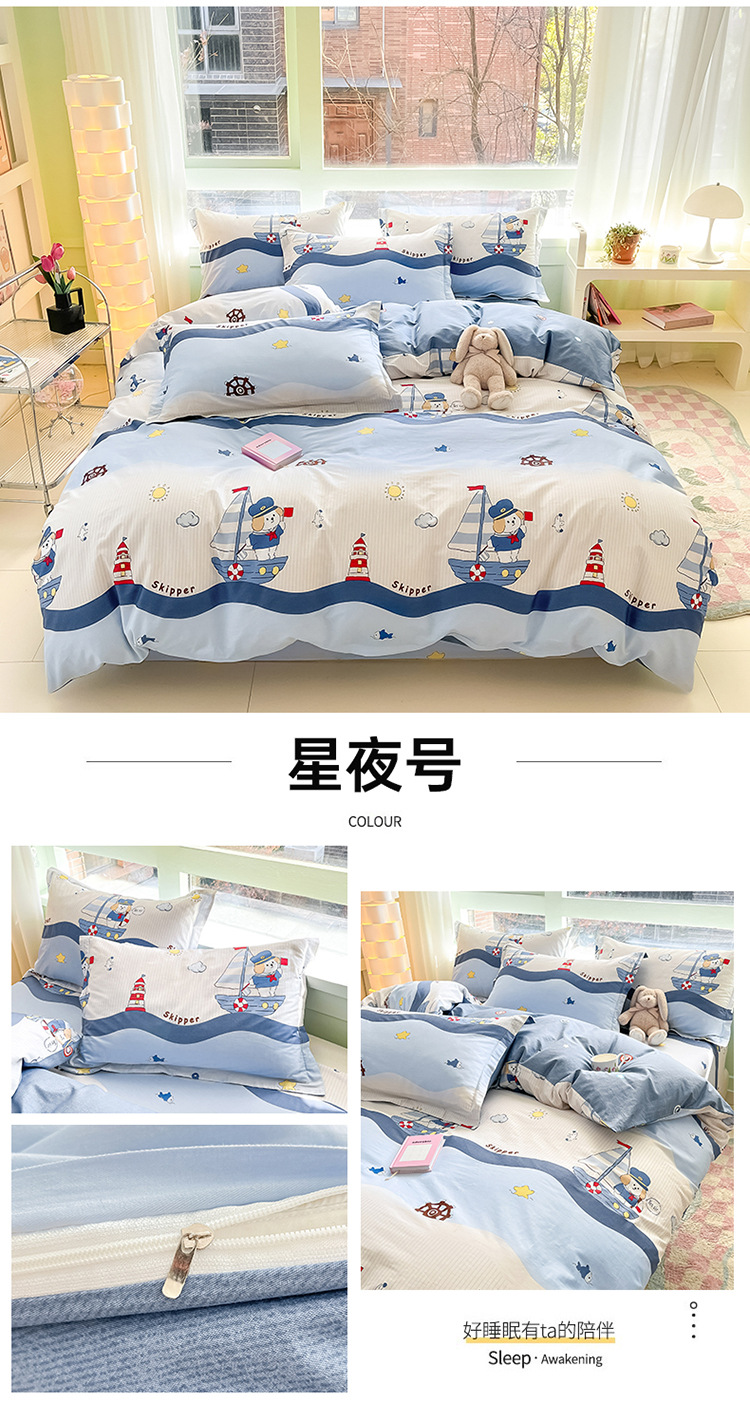 Juego de Sábanas Ajustables de Algodón, Juego de Sábanas Estampadas de Algodón Puro de 40 Hilos, Juego de Ropa de Cama para Estudiantes, Venta Directa de Fábrica