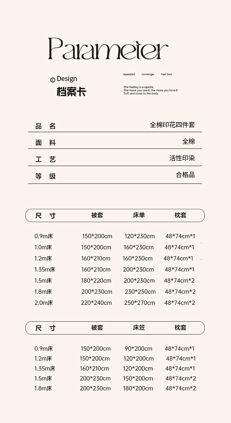 | Especificaciones de tamaño | Juego de sábanas de tres piezas de 0,9 m [funda de edredón 150*200cm],Juego de sábanas de tres piezas de 1.0m [funda de edredón 150*200cm],Juego de sábanas de 1,2 m de tres piezas [funda de edredón 160x210cm],Juego de sábanas de tres piezas de 1,35 m [funda de edredón 160x210cm],Juego de sábanas de cuatro piezas de 1,5 m [funda de edredón 180*220cm],Juego de cuatro piezas de ropa de cama de 1,8 m [funda de edredón 200*230cm],Juego de cuatro piezas de sábanas de 2.0m [funda de edredón 220*240cm],Juego de tres piezas con sábana 0.9 [funda de edredón 150*200cm],Juego de tres piezas tipo sábana de 1,2 m [funda de edredón 150*200cm],Juego de tres piezas de cama de 1,2 m [funda de edredón 160x210cm],Silla de cama de cuatro piezas de 1,5 m [funda de edredón 200*230cm],Juego de cuatro piezas de cama de 1,8 m [funda de edredón 200*230cm],Funda de edredón individual 150*200cm,Funda de edredón individual 180*220cm,Funda de edredón individual 200*230cm,Funda de edredón 220*240cm,Sábana bajera individual de 90*200 cm.,Sábana bajera individual de 120*200 cm.,Sábana bajera individual de 150*200 cm.,Sábana bajera individual de 180*200 cm. |