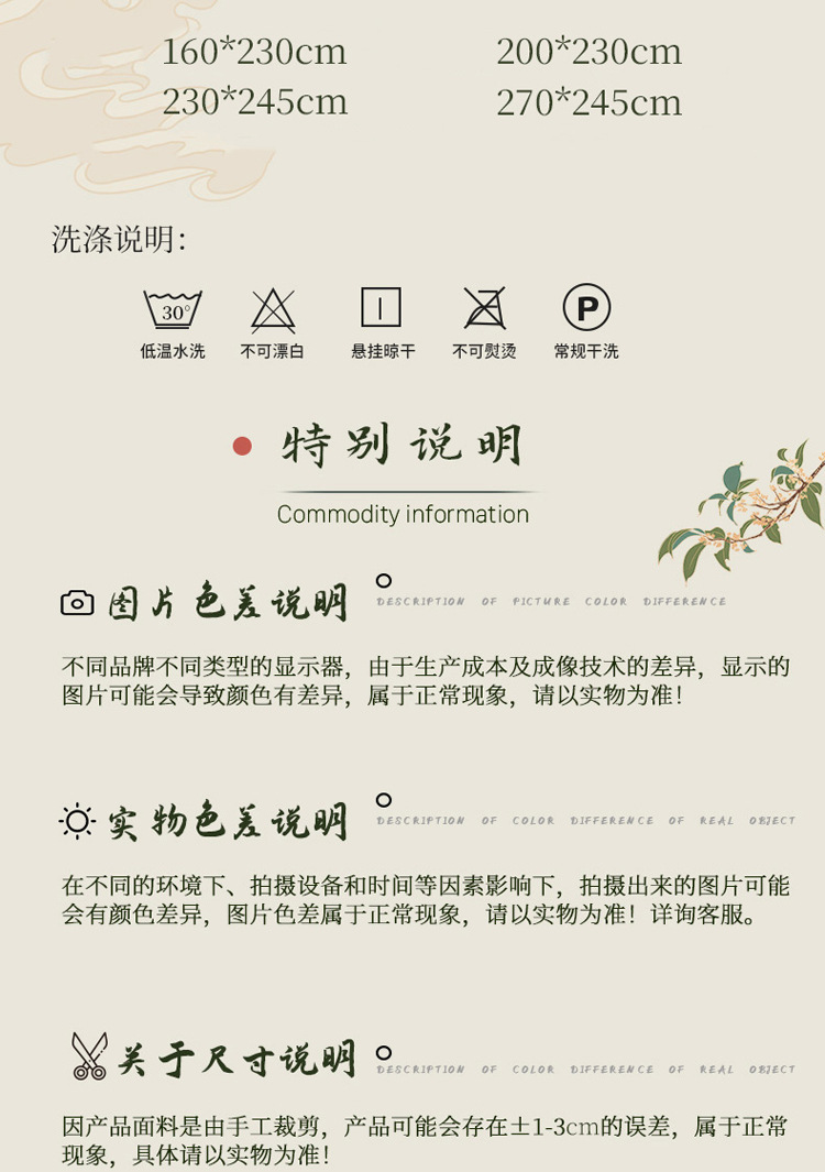 | Especificaciones de tamaño | Funda de almohada 48x74cm uno,Par de fundas de almohada 48x74cm,Sábanas 160x230cm,Sábanas 200x230cm,Sábanas 230x245cm,Sábanas 270x245cm |