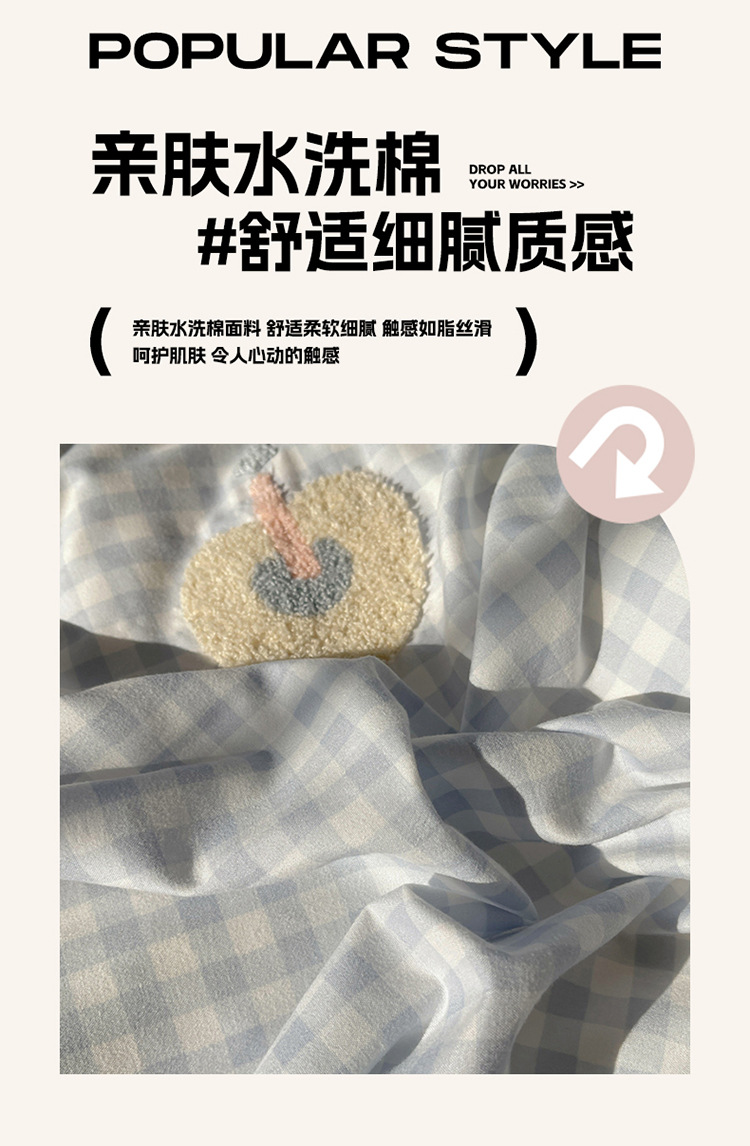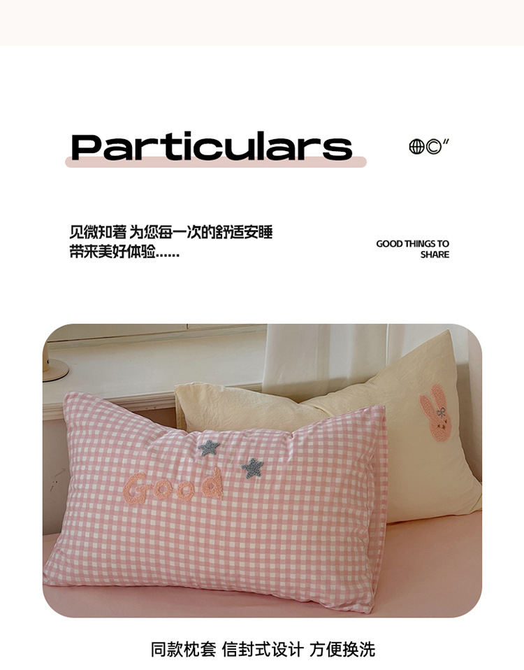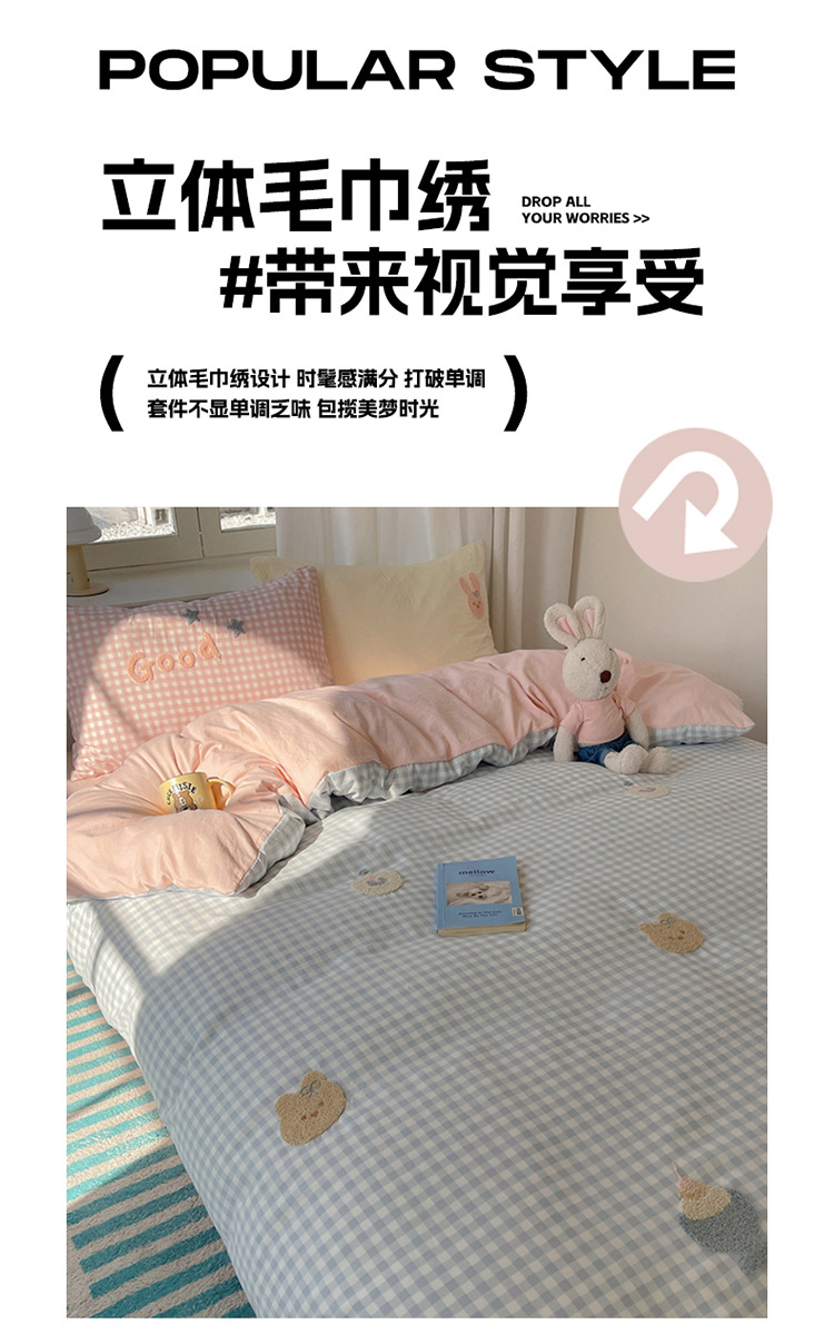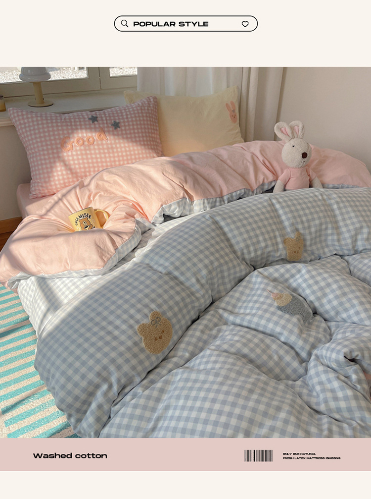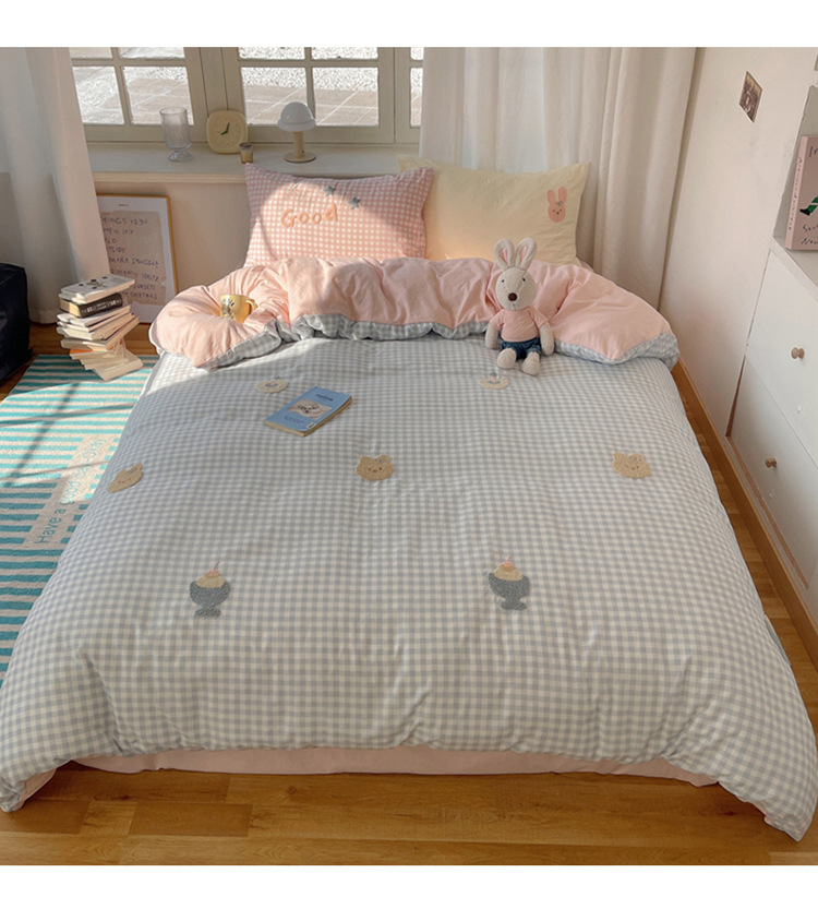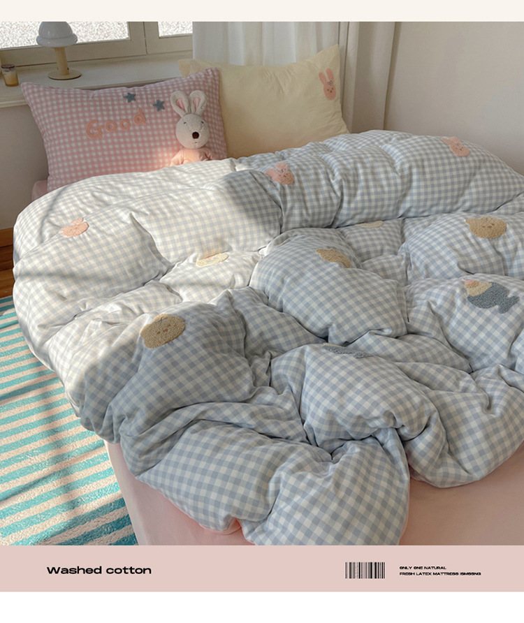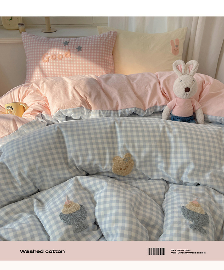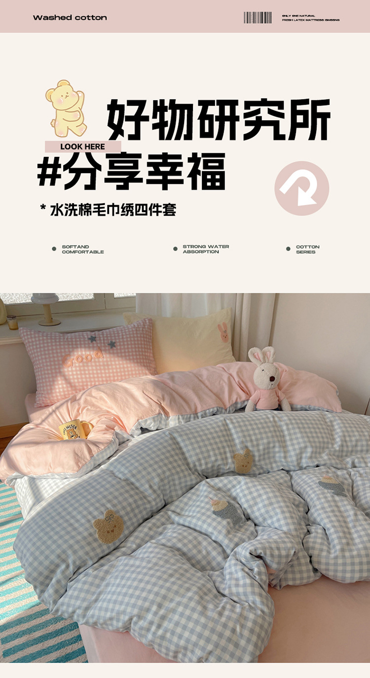2025 nueva linda toalla de algodón de lavado de niña bordada puede dormir desnudo algodón de lavado de color sólido cuadrícula doble juego de cuatro piezas