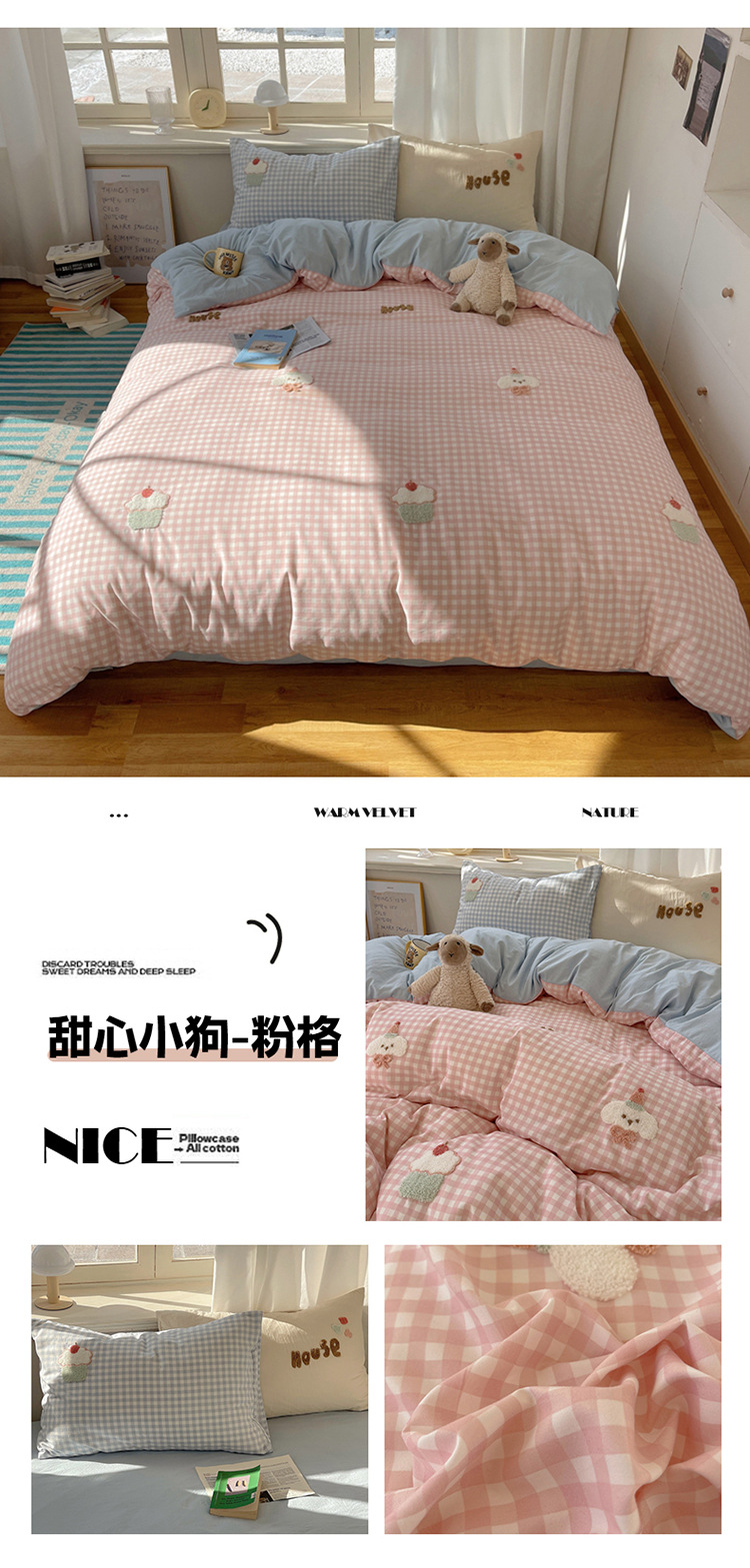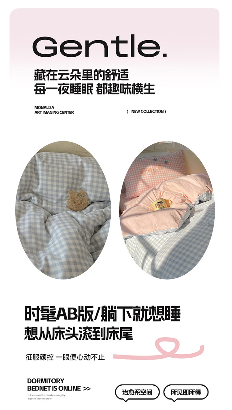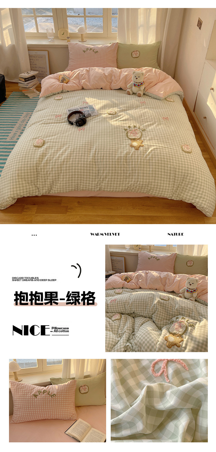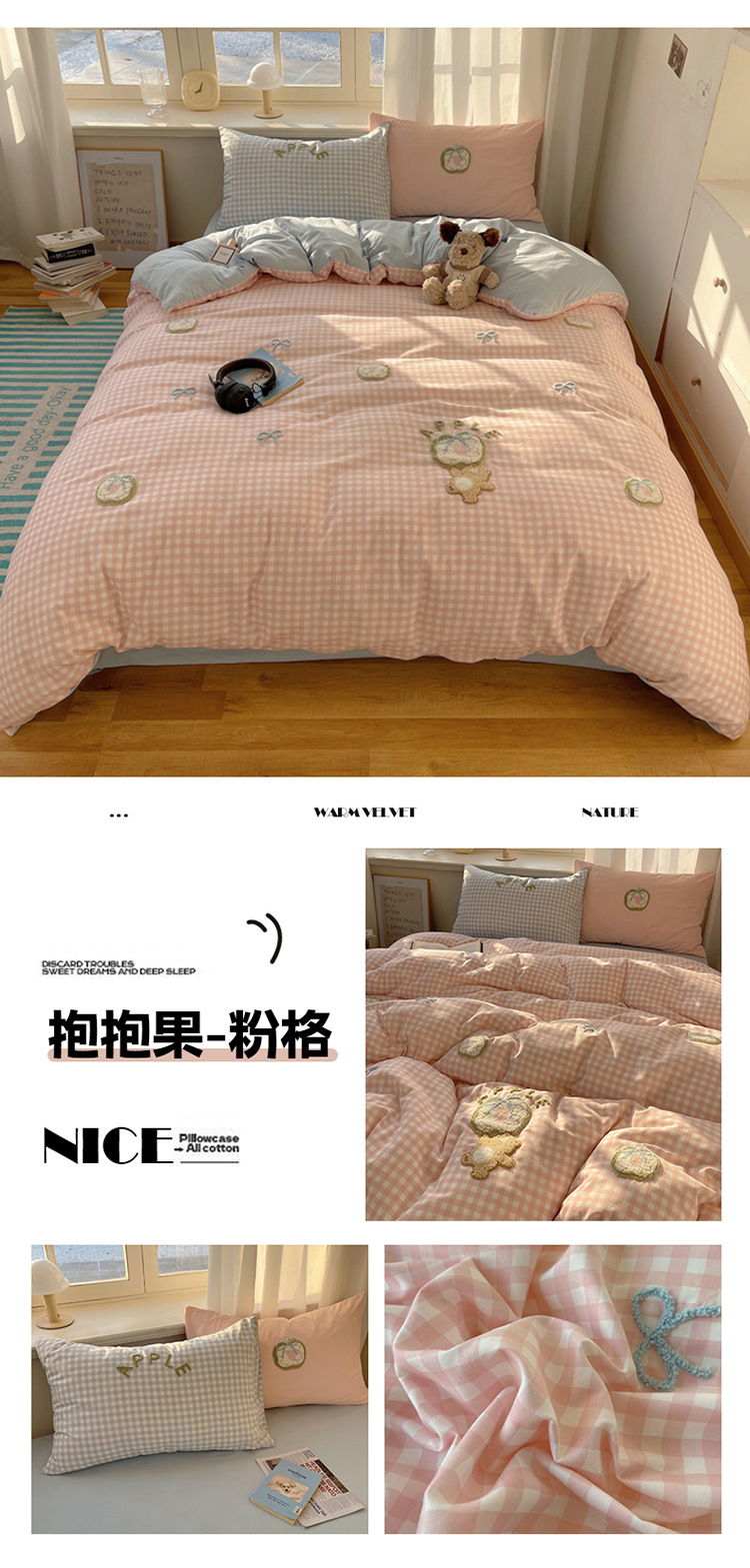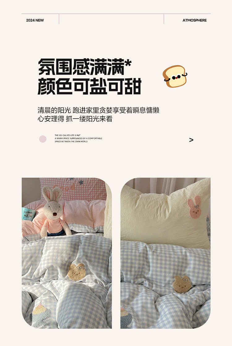 2025 nueva linda toalla de algodón de lavado de niña bordada puede dormir desnudo algodón de lavado de color sólido cuadrícula doble juego de cuatro piezas