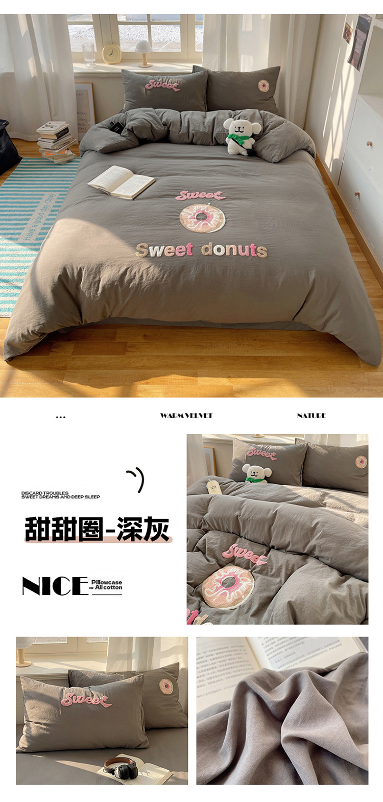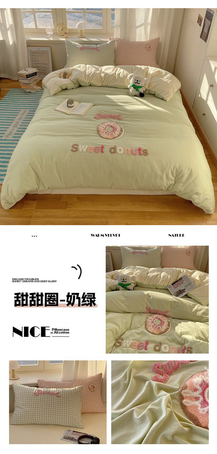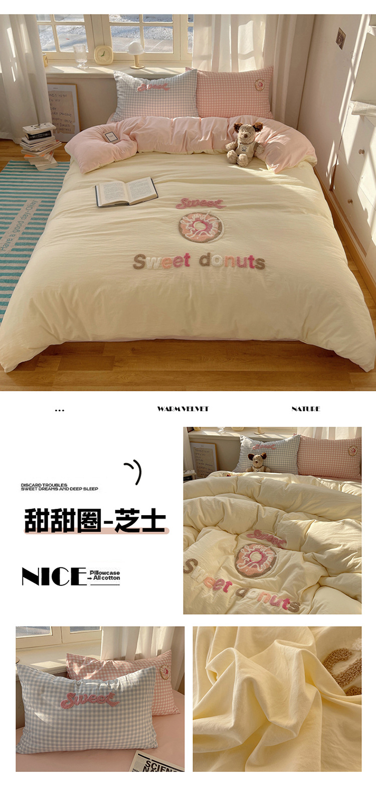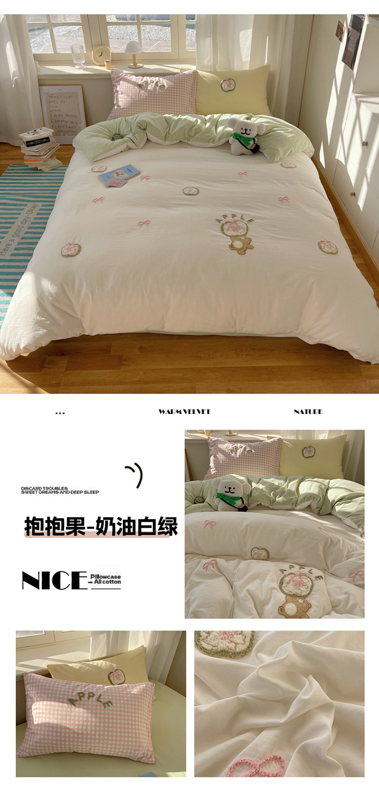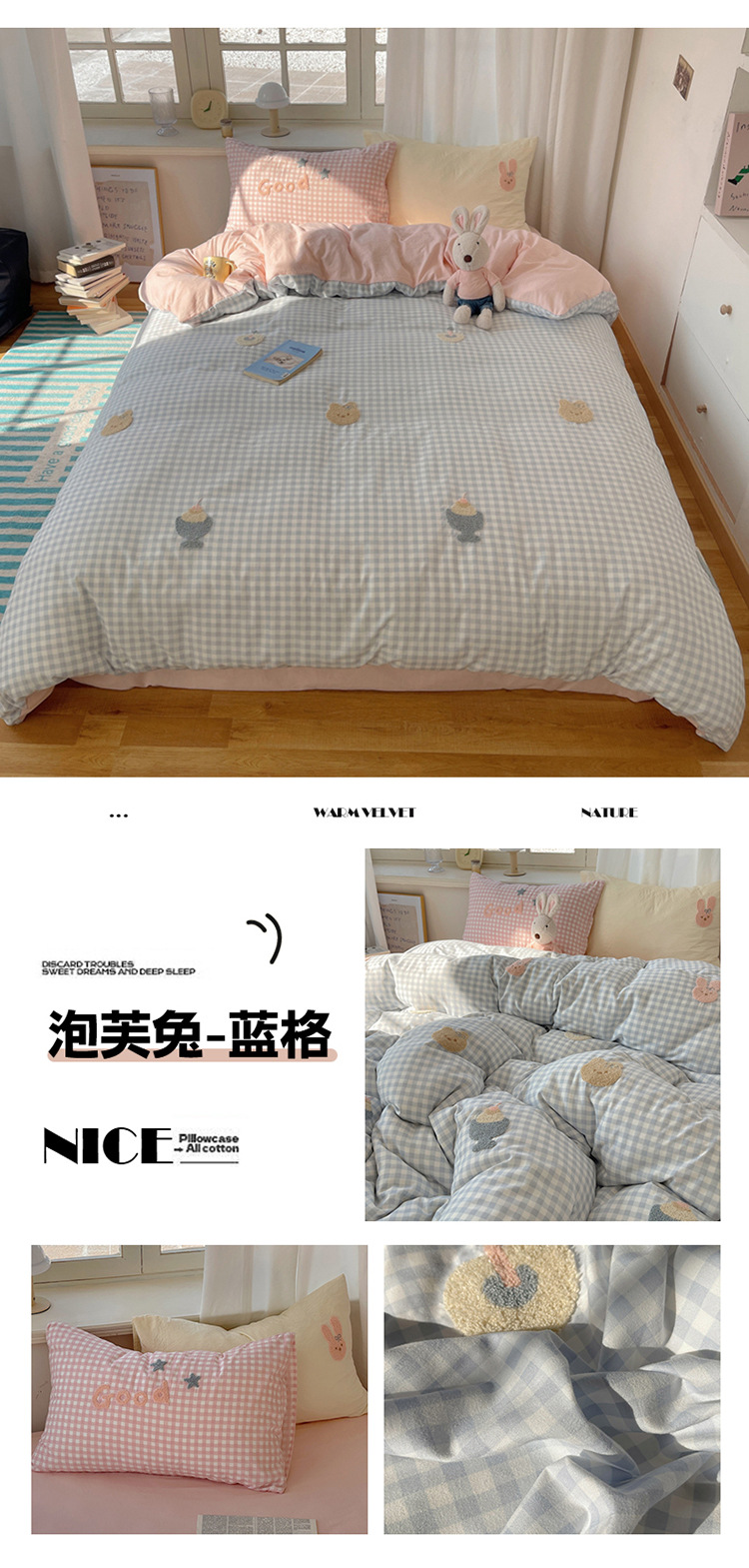 2025 nueva linda toalla de algodón de lavado de niña bordada puede dormir desnudo algodón de lavado de color sólido cuadrícula doble juego de cuatro piezas