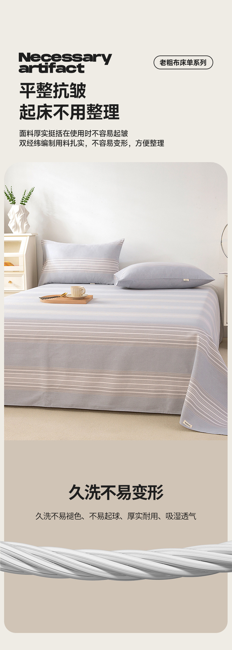 Sábana de tela gruesa vieja de algodón grueso pieza individual 100 lino de algodón, sábana de verano, sábana de dormitorio, juego de tres piezas, doble individual