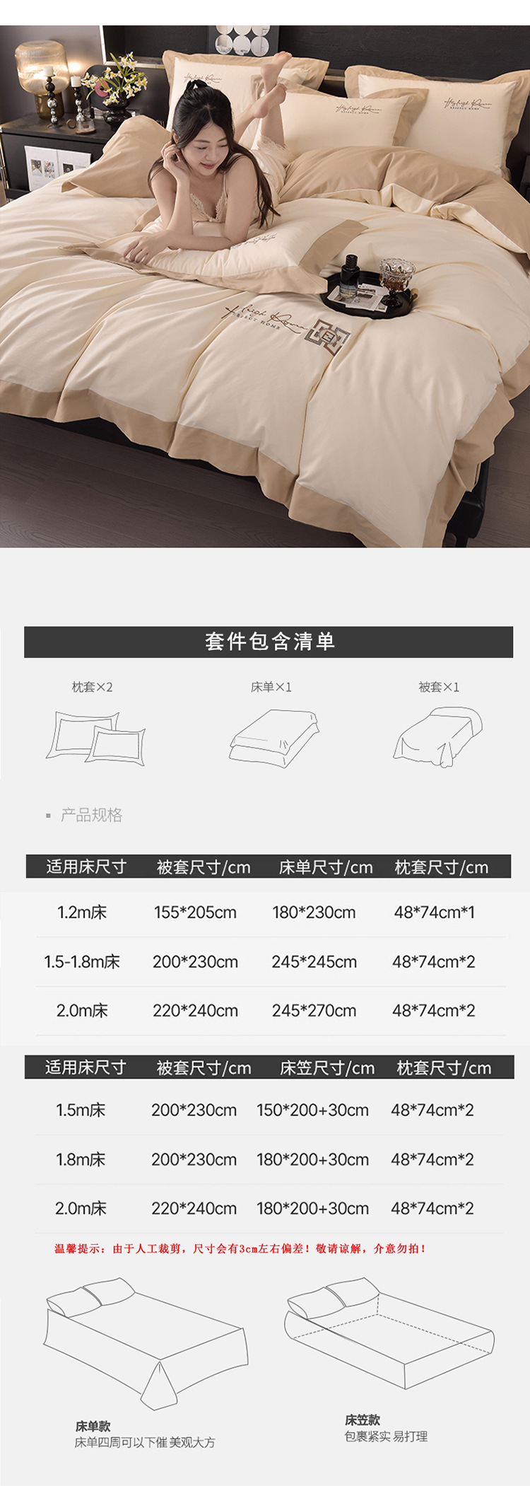 | Especificaciones de tamaño | Cuatro juegos de sábanas de 1,5 m [edredones 200 * 230], cuatro juegos de sábanas de 1,8 m [edredones 200 * 230], cuatro juegos de sábanas de 2,0 M [edredones 220 * 240], cuatro juegos de sábanas de 1,5 m [edredones 200 * 230], cuatro juegos de sábanas de 1,8 m [edredones 200 * 230], y cuatro juegos de edredones de 1,8 m [edredones 220 * 240] |