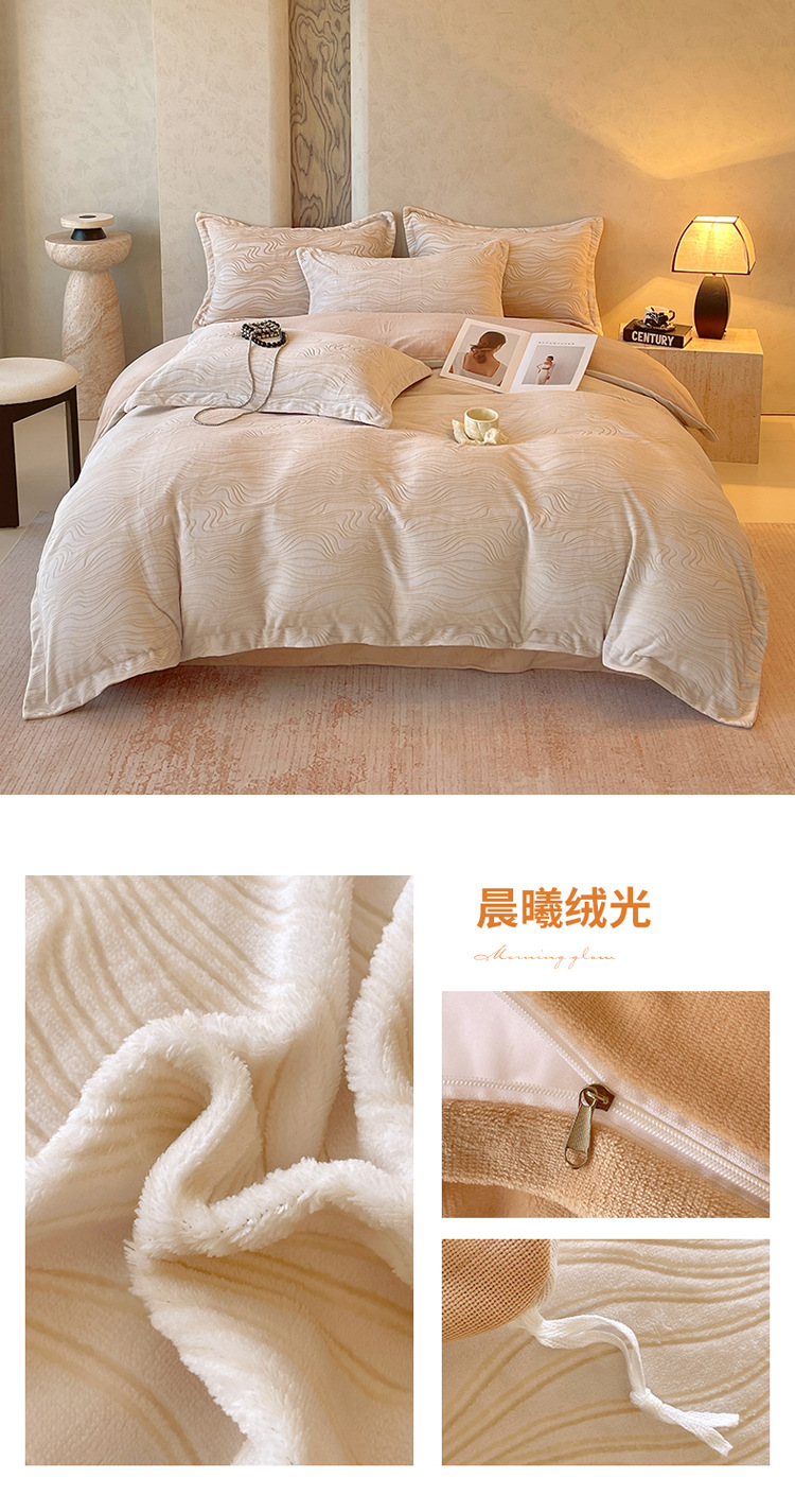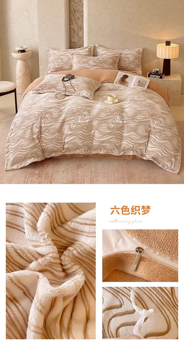 Cama de cama de clase A leche de lana de cuatro piezas de sábanas gruesas cubiertas de cama de cuatro piezas fabricantes de conjuntos de tallado