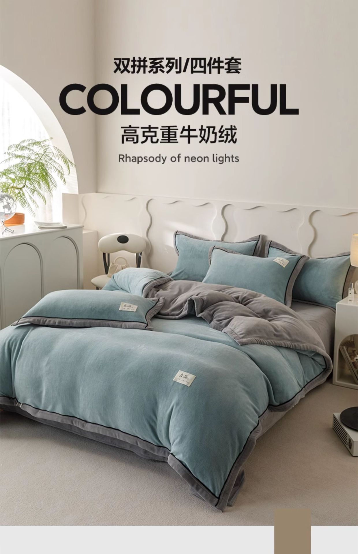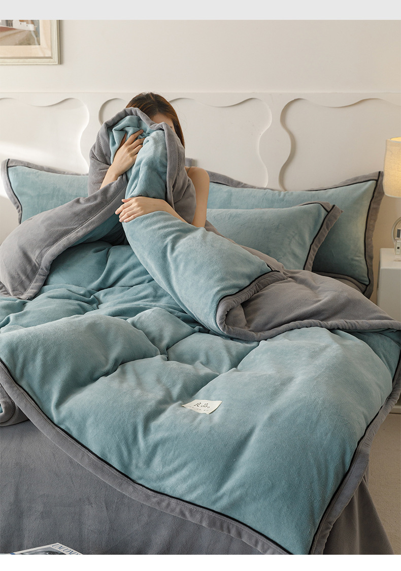2025 nuevo juego de cuatro piezas de lana de leche de invierno, funda de edredón de lana de coral de franela gruesa, sábana, colcha, juego de cama