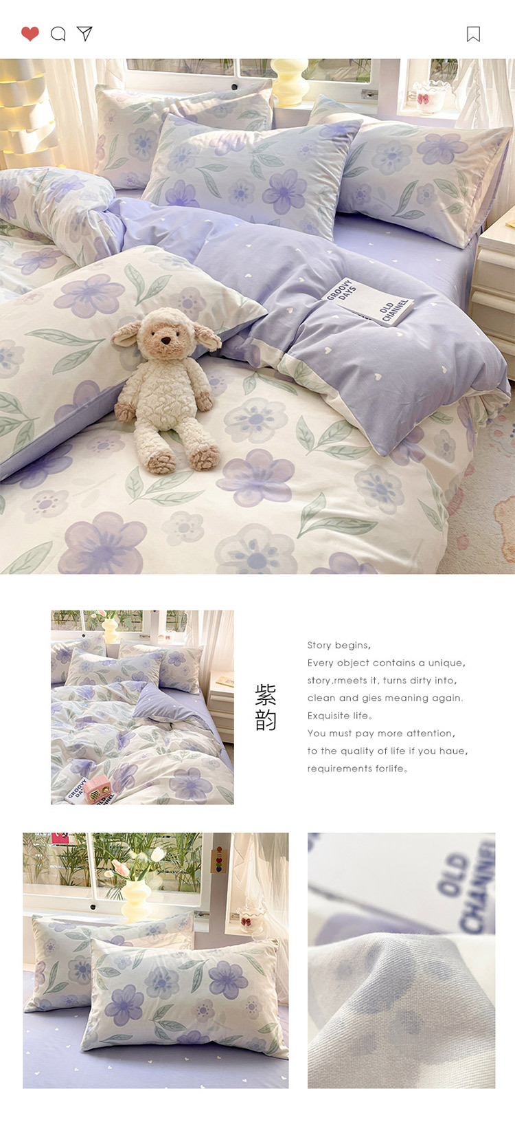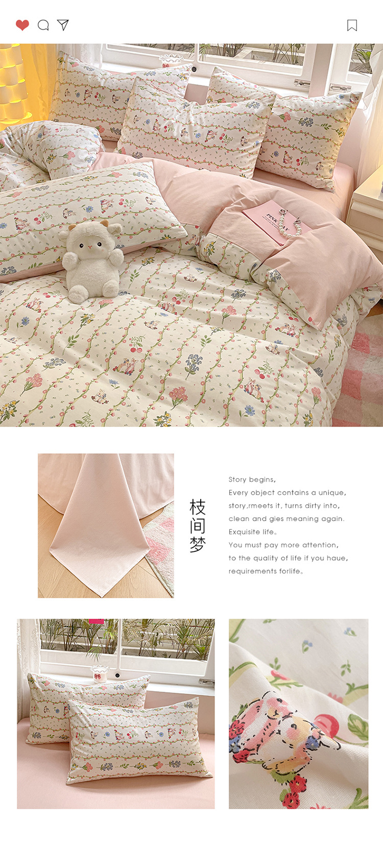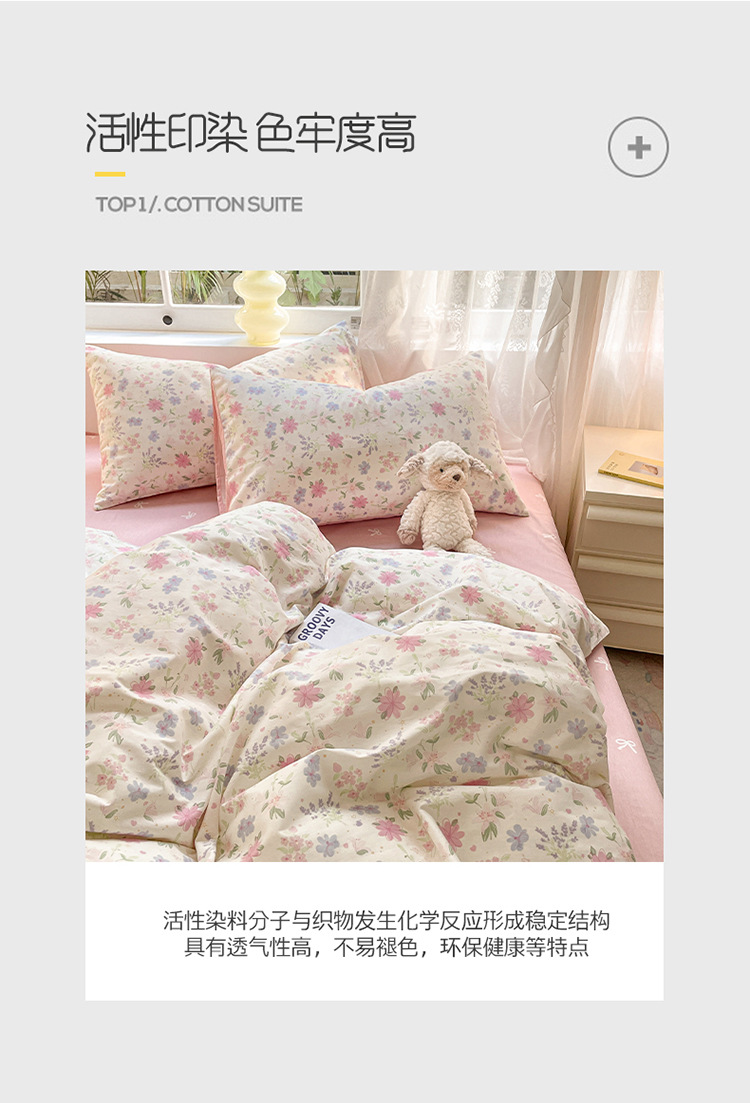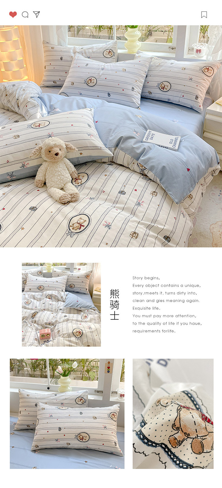 Youyixin algodón de cuatro piezas kit de algodón de 100 piezas funda de edredón de dibujos animados sábana estilo sábana dormitorio de estudiantes de tres piezas