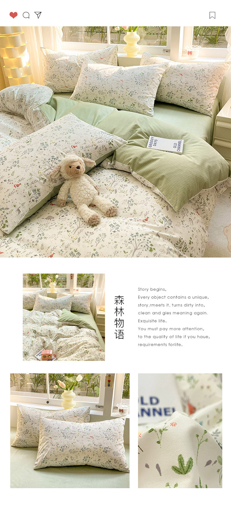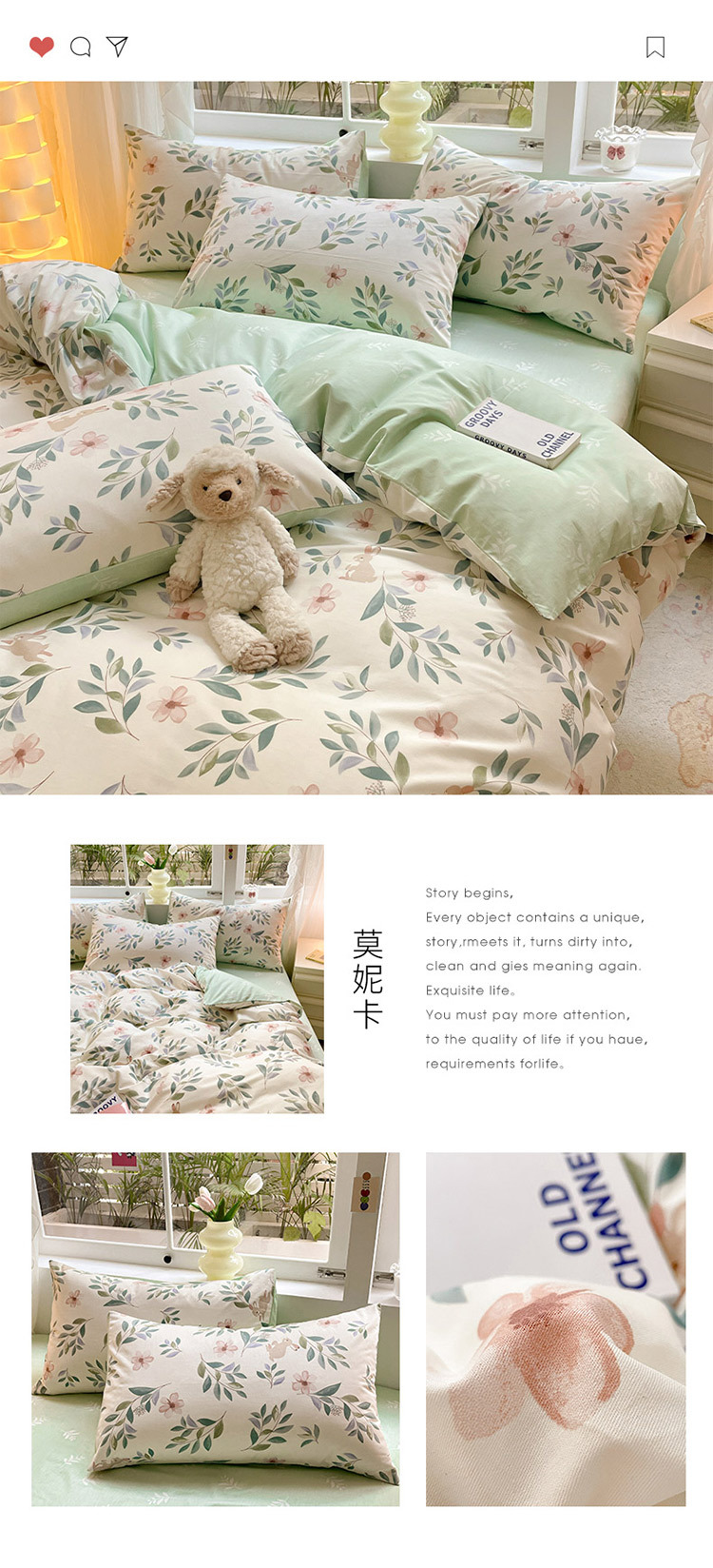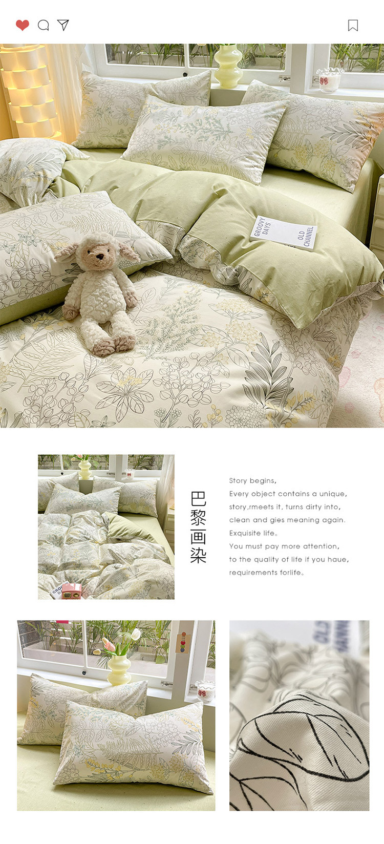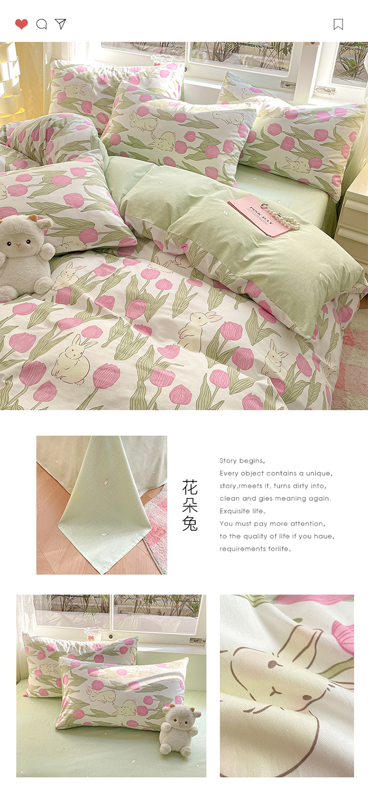 Youyixin algodón de cuatro piezas kit de algodón de 100 piezas funda de edredón de dibujos animados sábana estilo sábana dormitorio de estudiantes de tres piezas