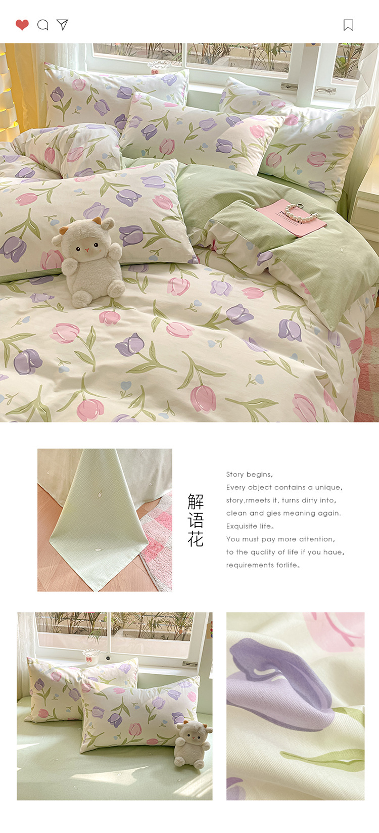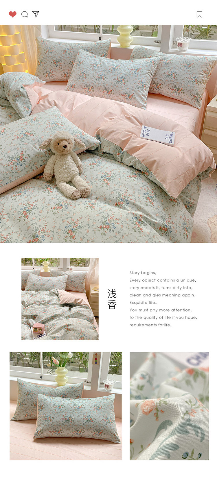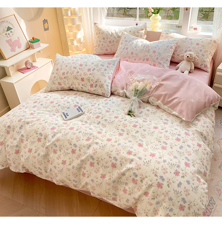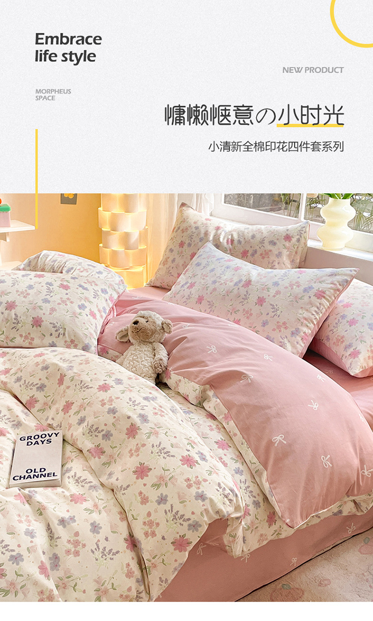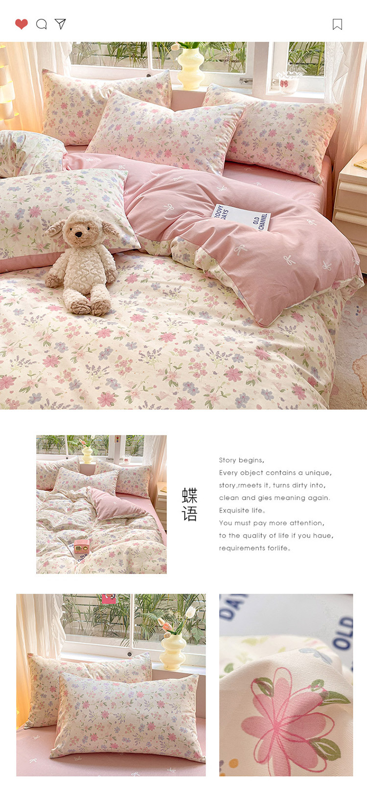 Youyixin algodón de cuatro piezas kit de algodón de 100 piezas funda de edredón de dibujos animados sábana estilo sábana dormitorio de estudiantes de tres piezas