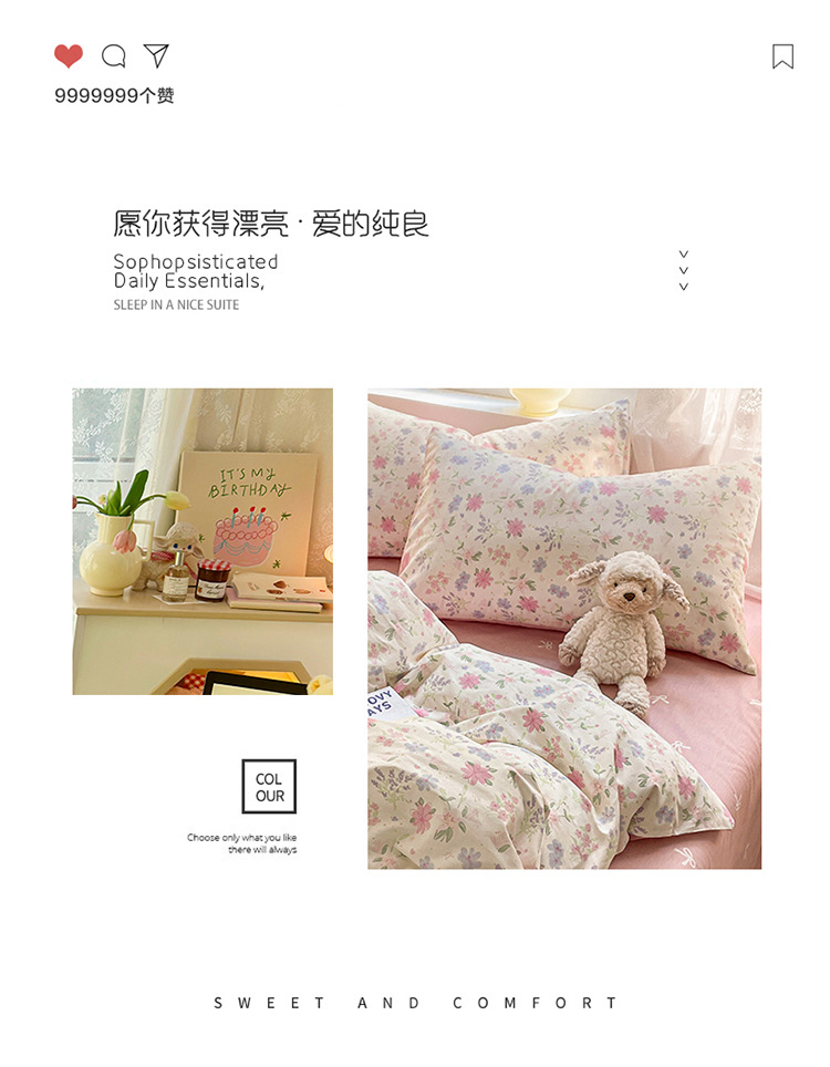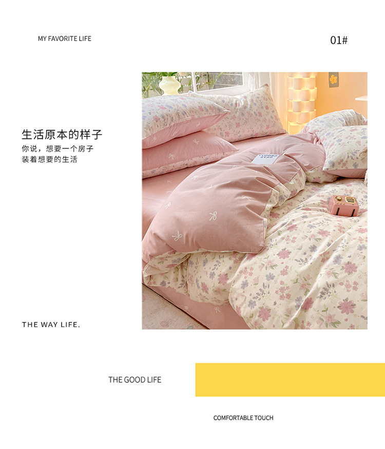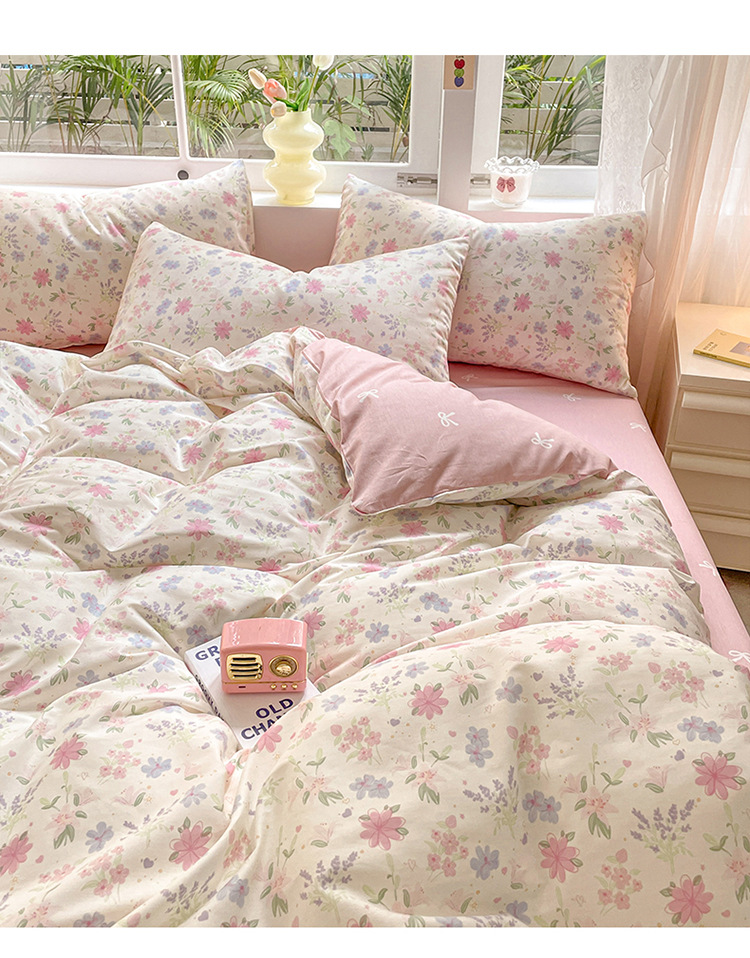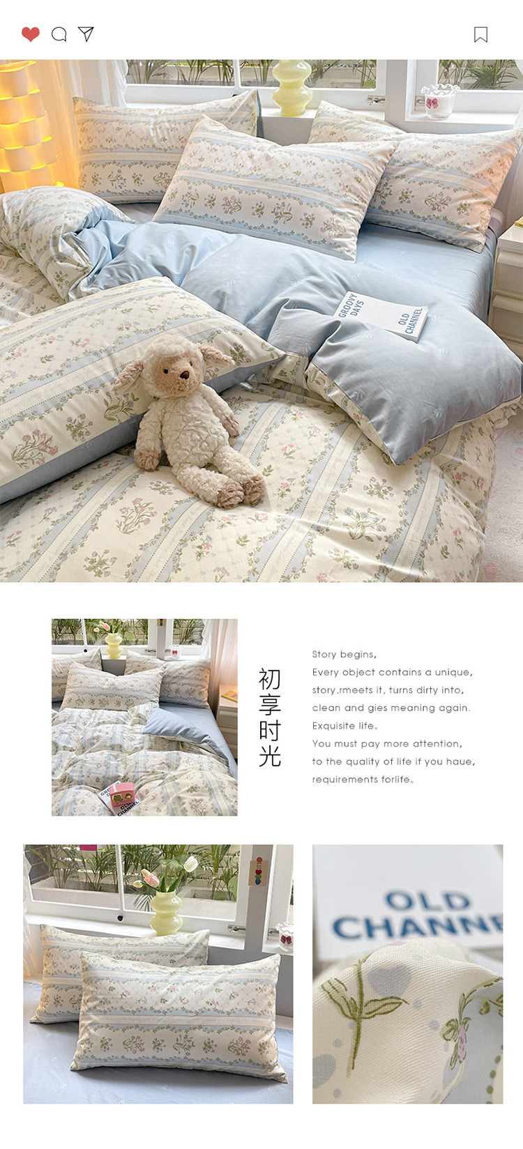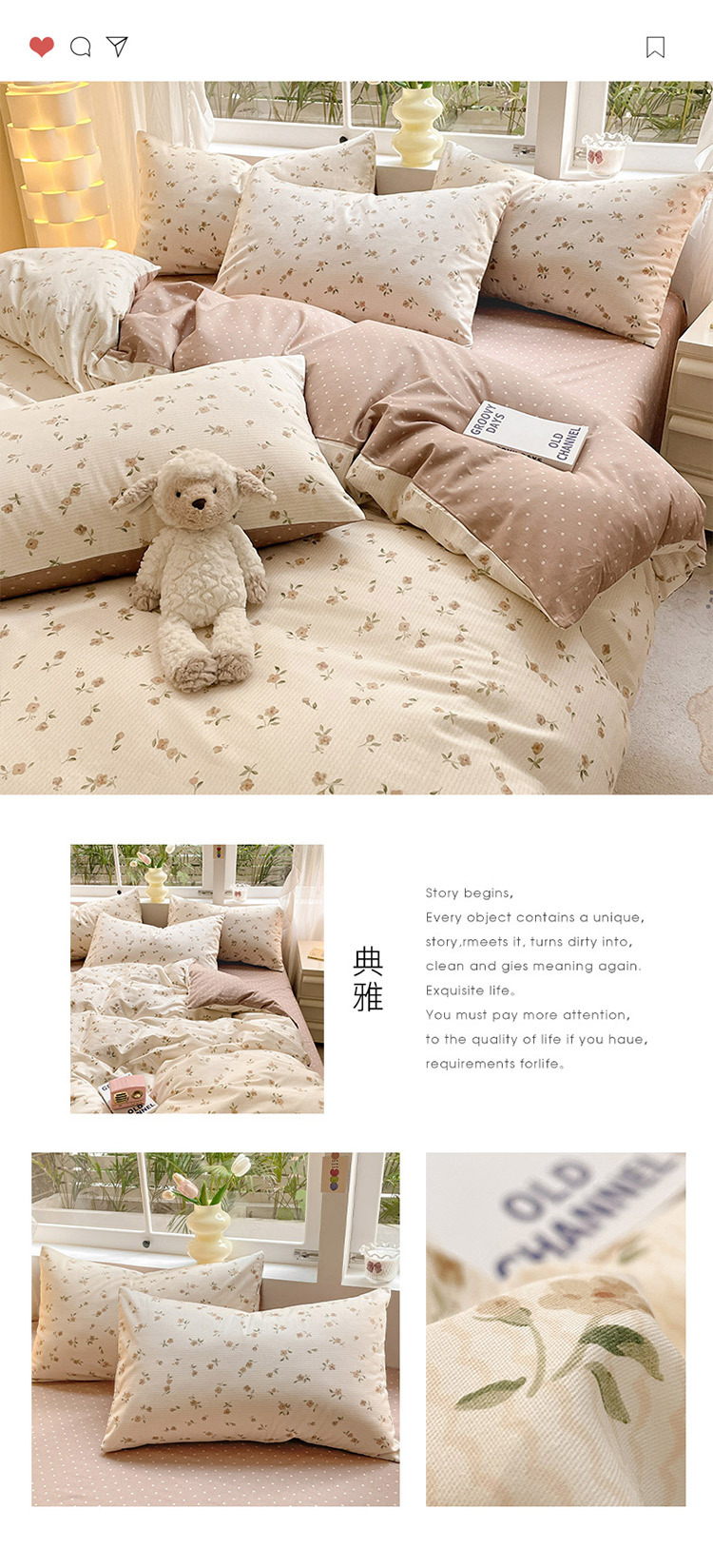 Youyixin algodón de cuatro piezas kit de algodón de 100 piezas funda de edredón de dibujos animados sábana estilo sábana dormitorio de estudiantes de tres piezas