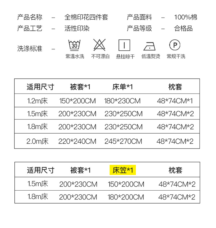 | Especificaciones de tamaño | Juego de tres piezas de ropa de cama de 1,2 m | para edredón 150x200,Juego de cuatro piezas de ropa de cama de 1,5 m | para edredones de 200x230,Juego de cuatro piezas de ropa de cama de 1,8 m | para edredones de 200x230,Juego de cuatro piezas de cama de 1,5 m | para edredón de 200x230,Juego de cuatro piezas de cama de 1,8 m | para edredón de 200x230 |