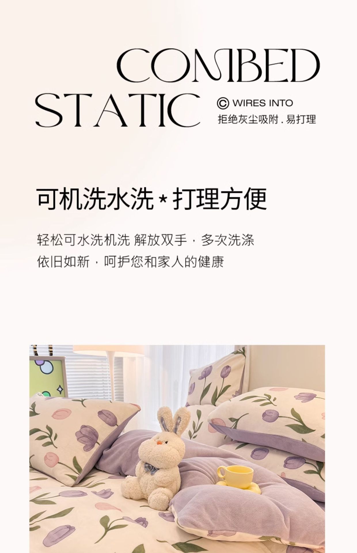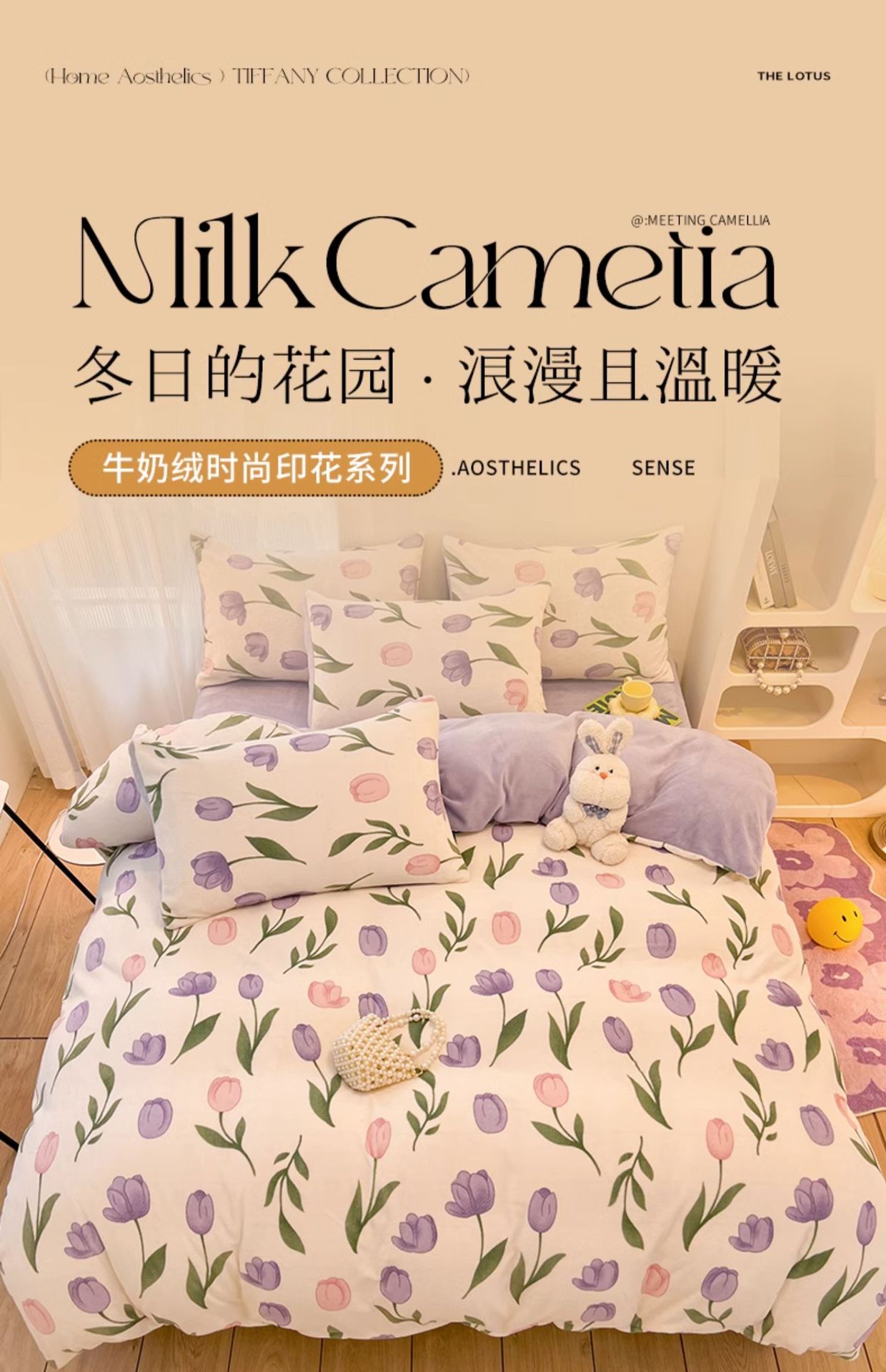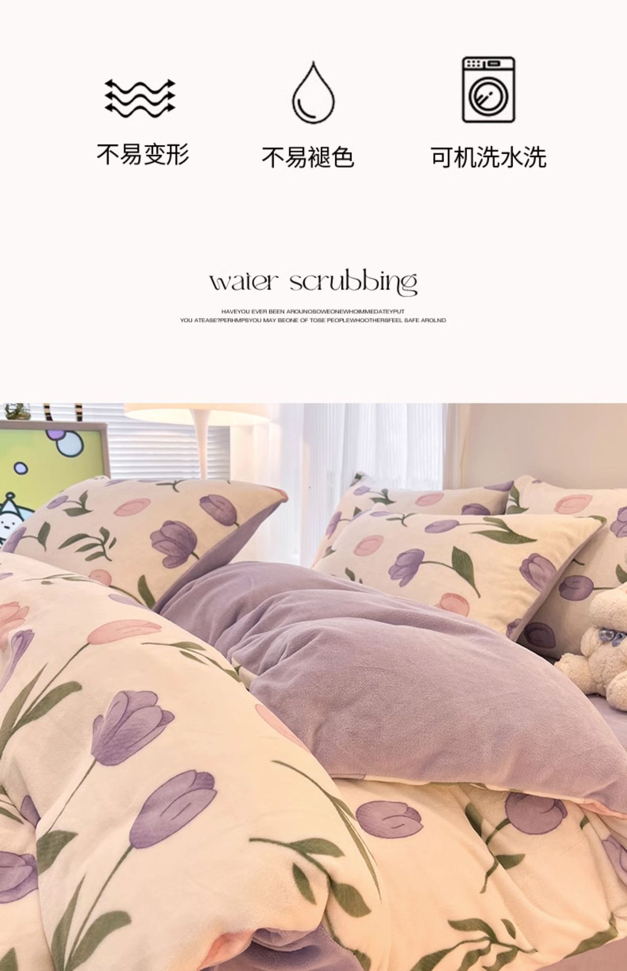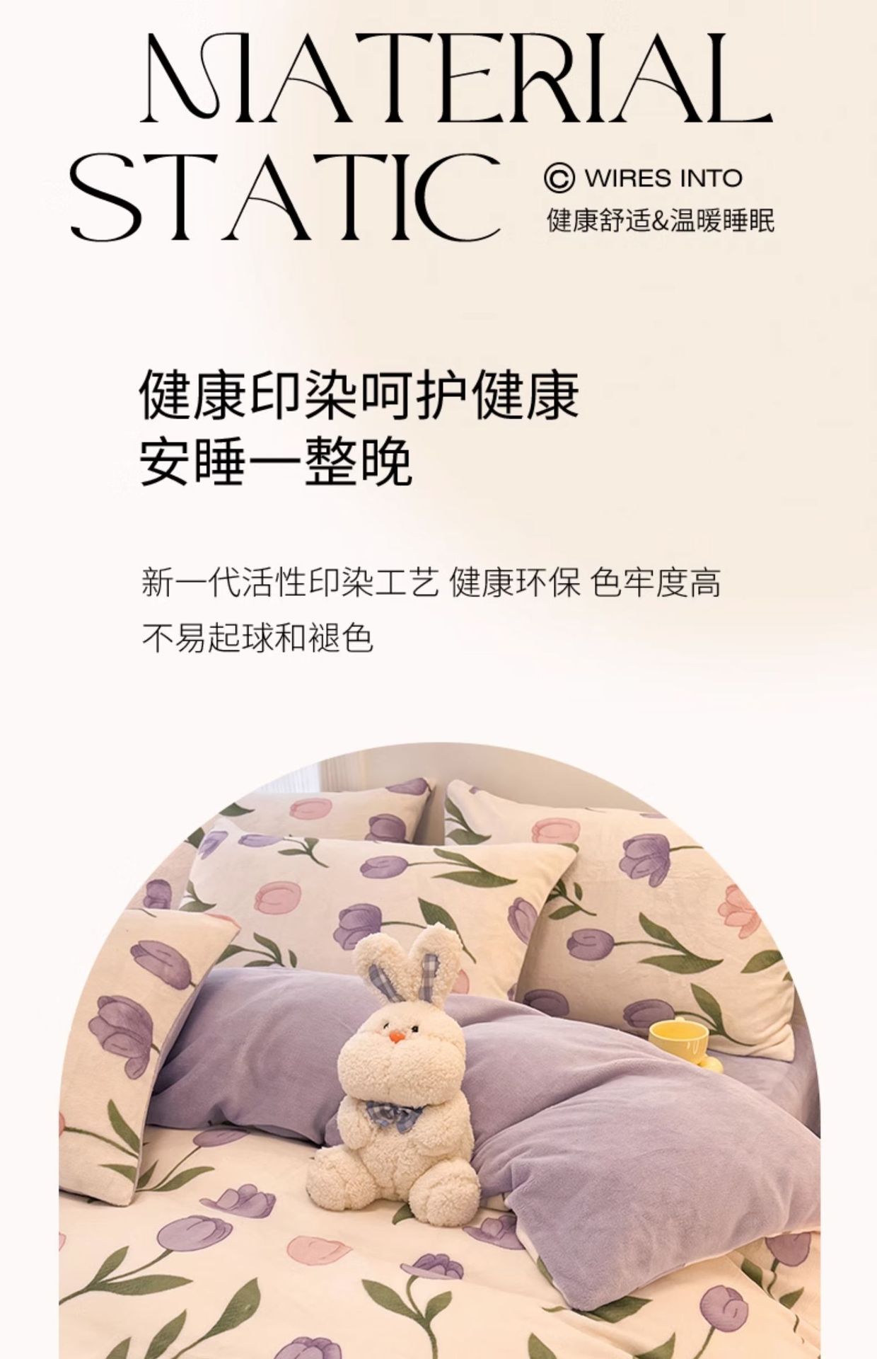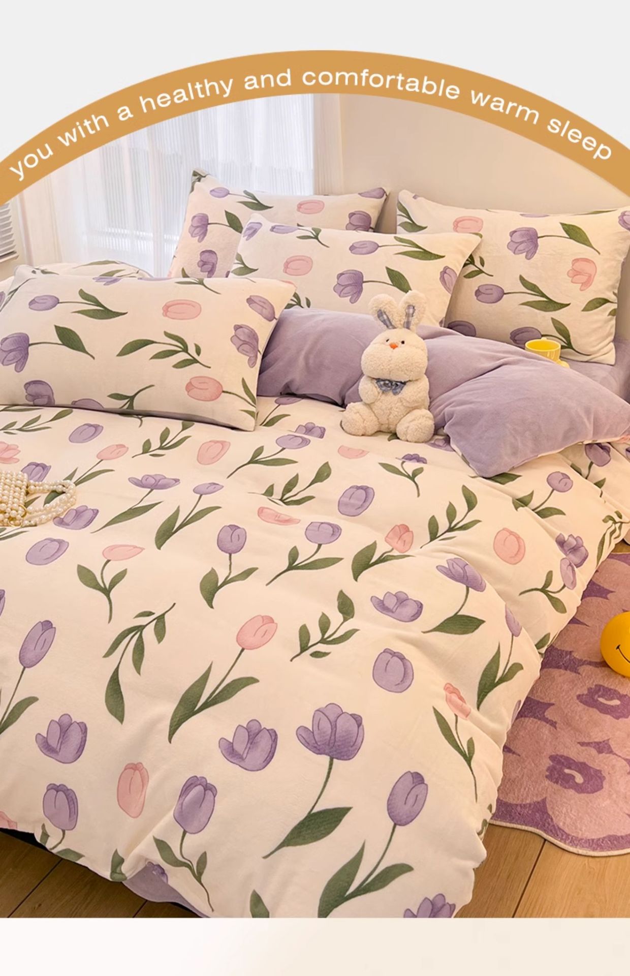 Juego de cuatro piezas de lana de leche de invierno, cama gruesa, sábana de otoño e invierno más funda de edredón de terciopelo, sábana de dormitorio de terciopelo de coral, juego de tres piezas