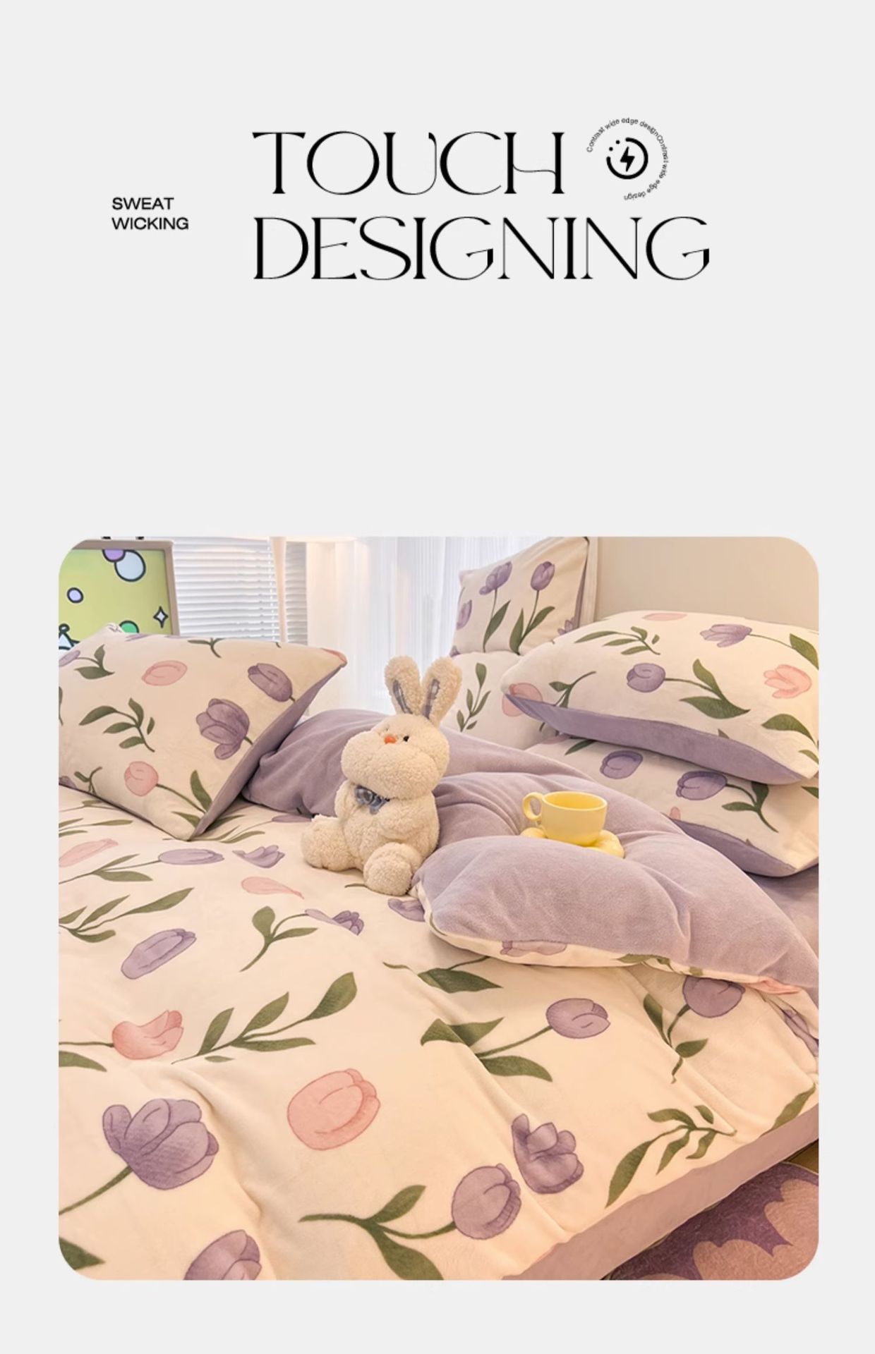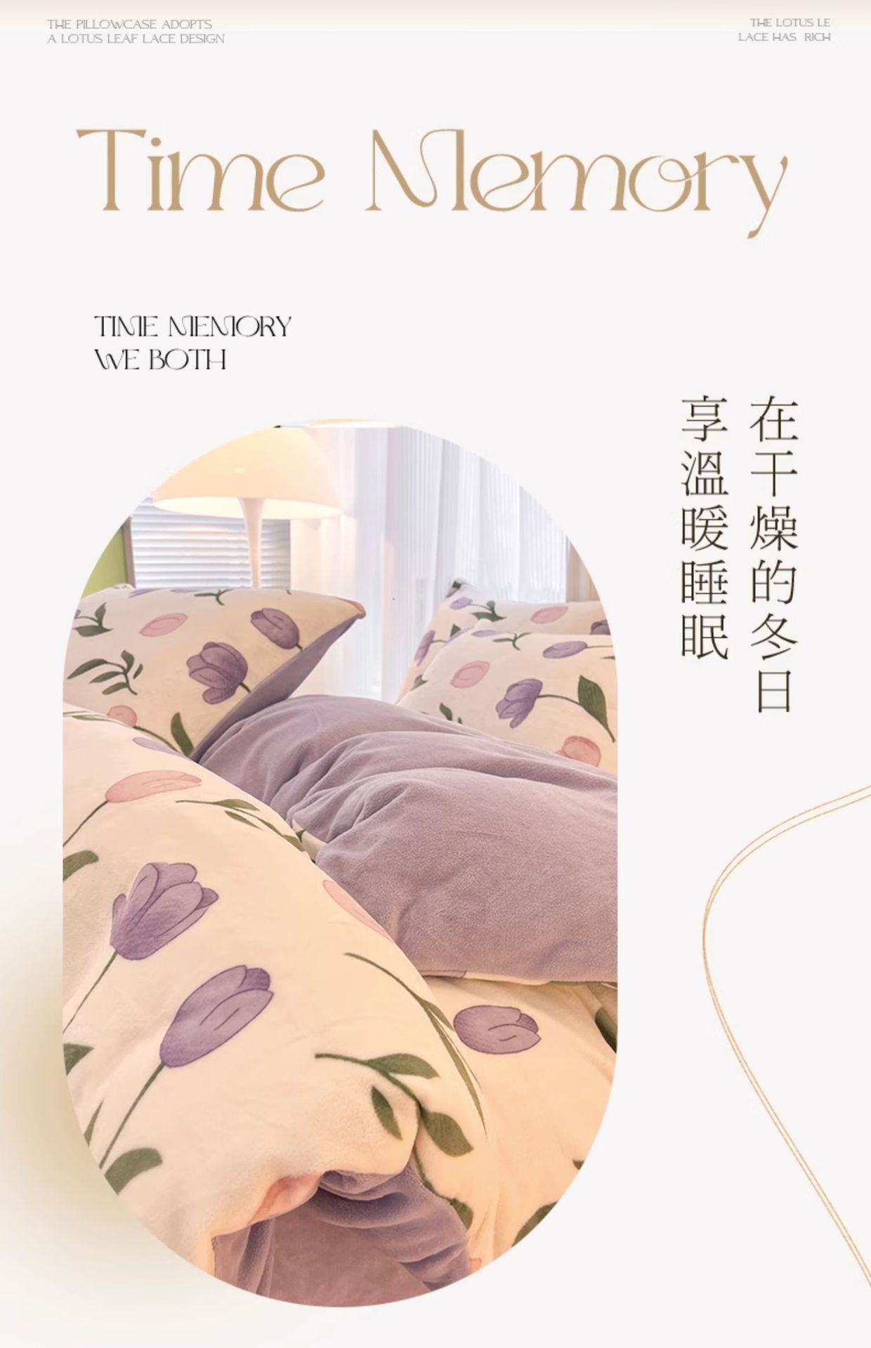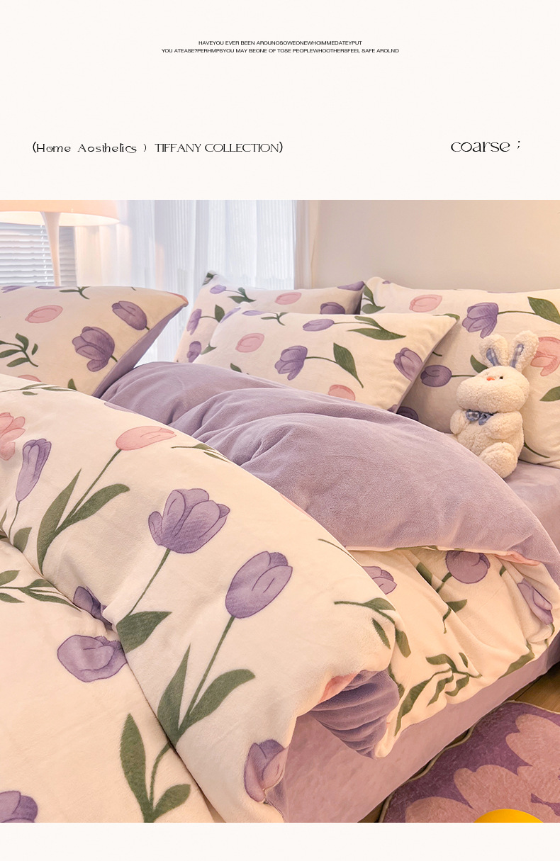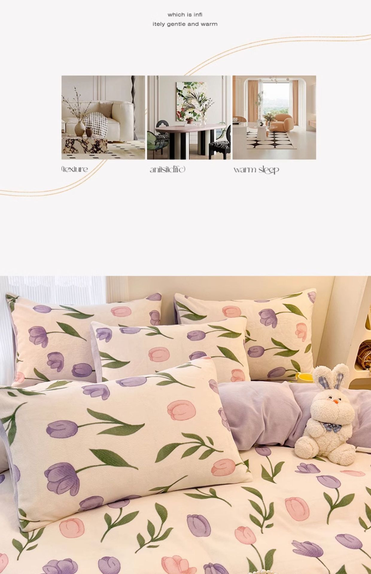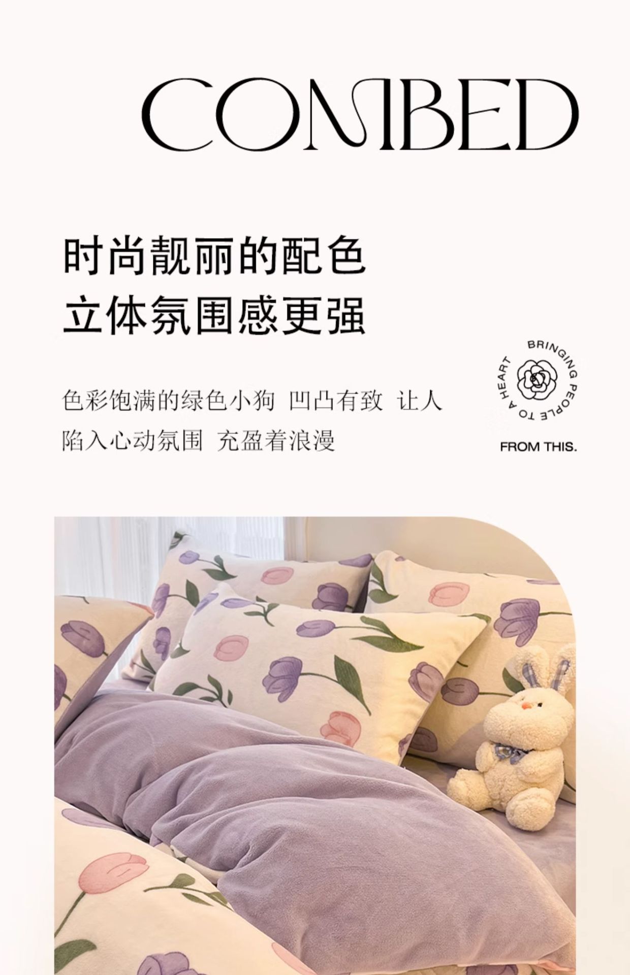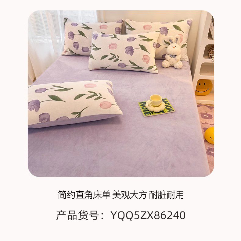 Juego de cuatro piezas de lana de leche de invierno, cama gruesa, sábana de otoño e invierno más funda de edredón de terciopelo, sábana de dormitorio de terciopelo de coral, juego de tres piezas