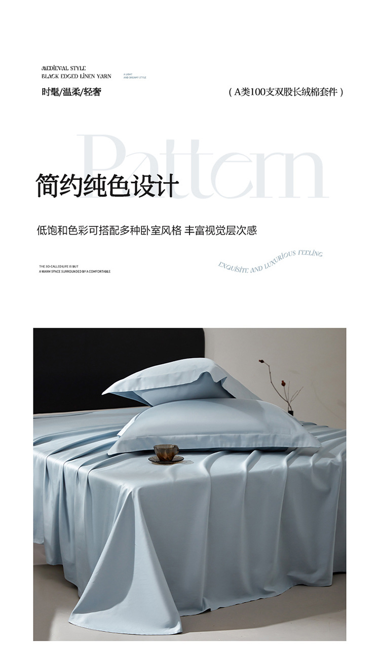 2024 lujo ligero 100 sábanas de algodón largo de algodón satin hotel hogar puede dormir desnudo sábanas de color sólido sábanas de Monet
