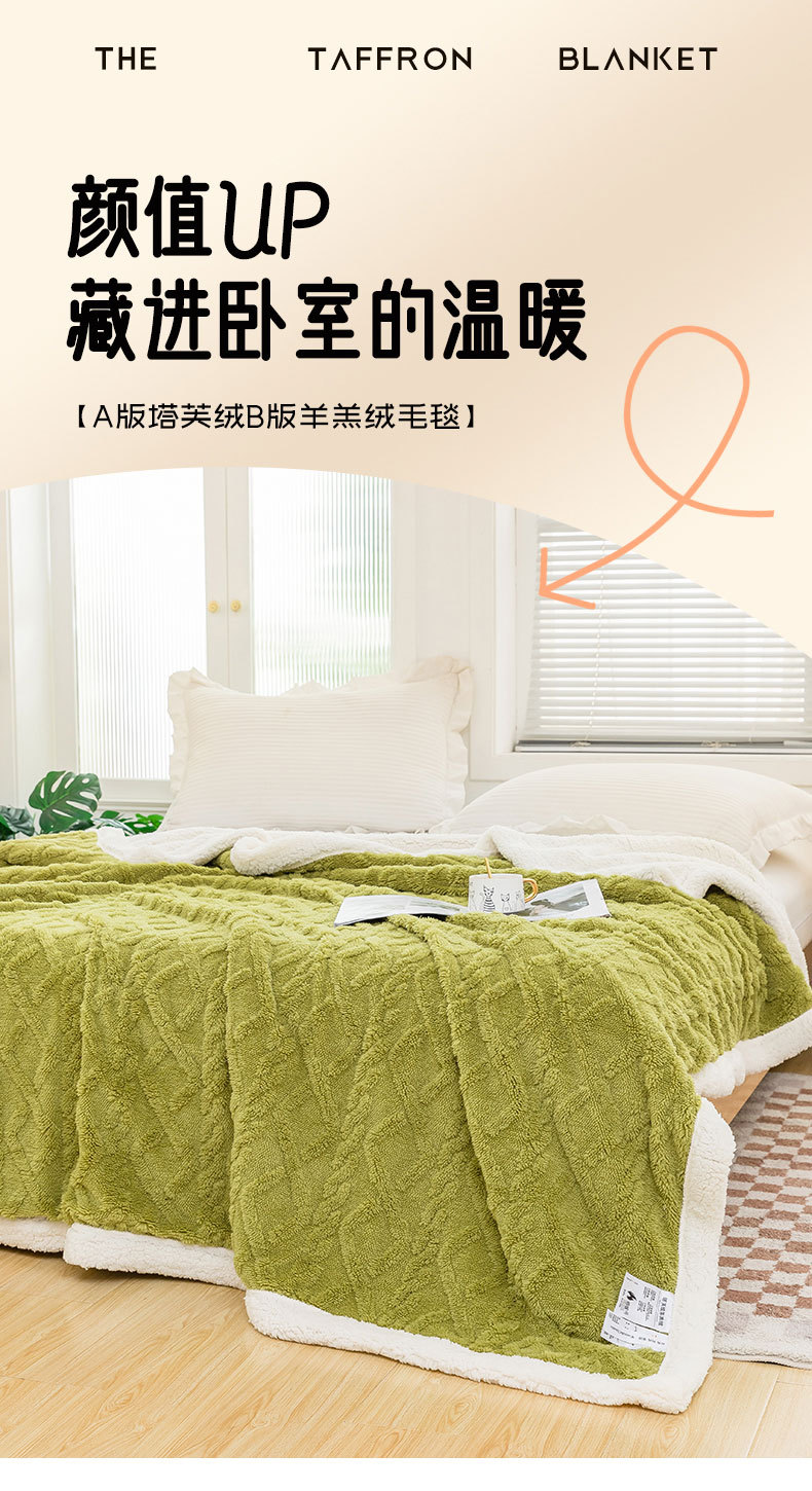 Manta de doble capa de cachemira y tafetán exclusiva transfronteriza, manta individual y doble cálida para otoño e invierno, manta de lana gruesa