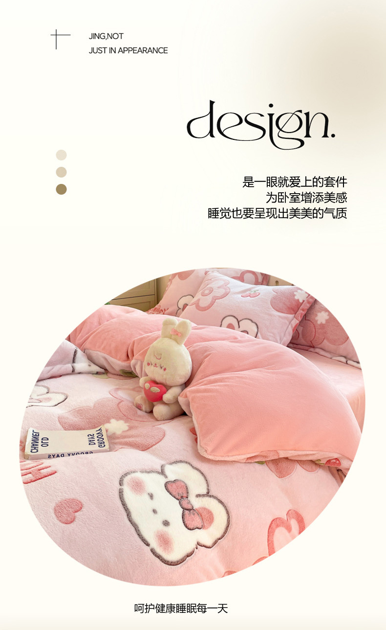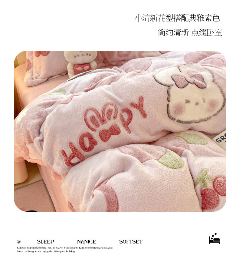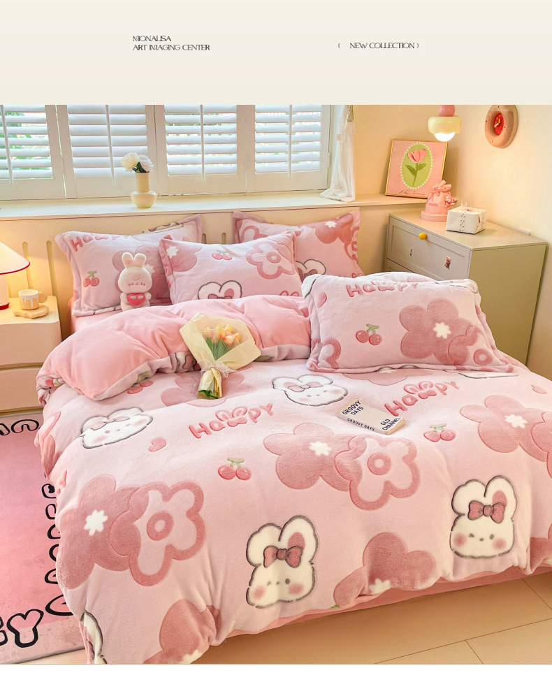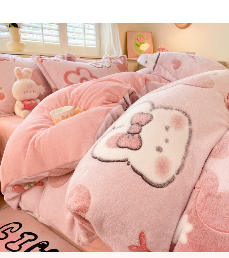 Cama de dibujos animados de lana de leche de invierno engrosado de lana de coral sábanas cálidas cubierta de colcha de cama de tres piezas
