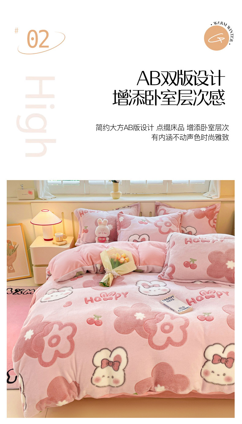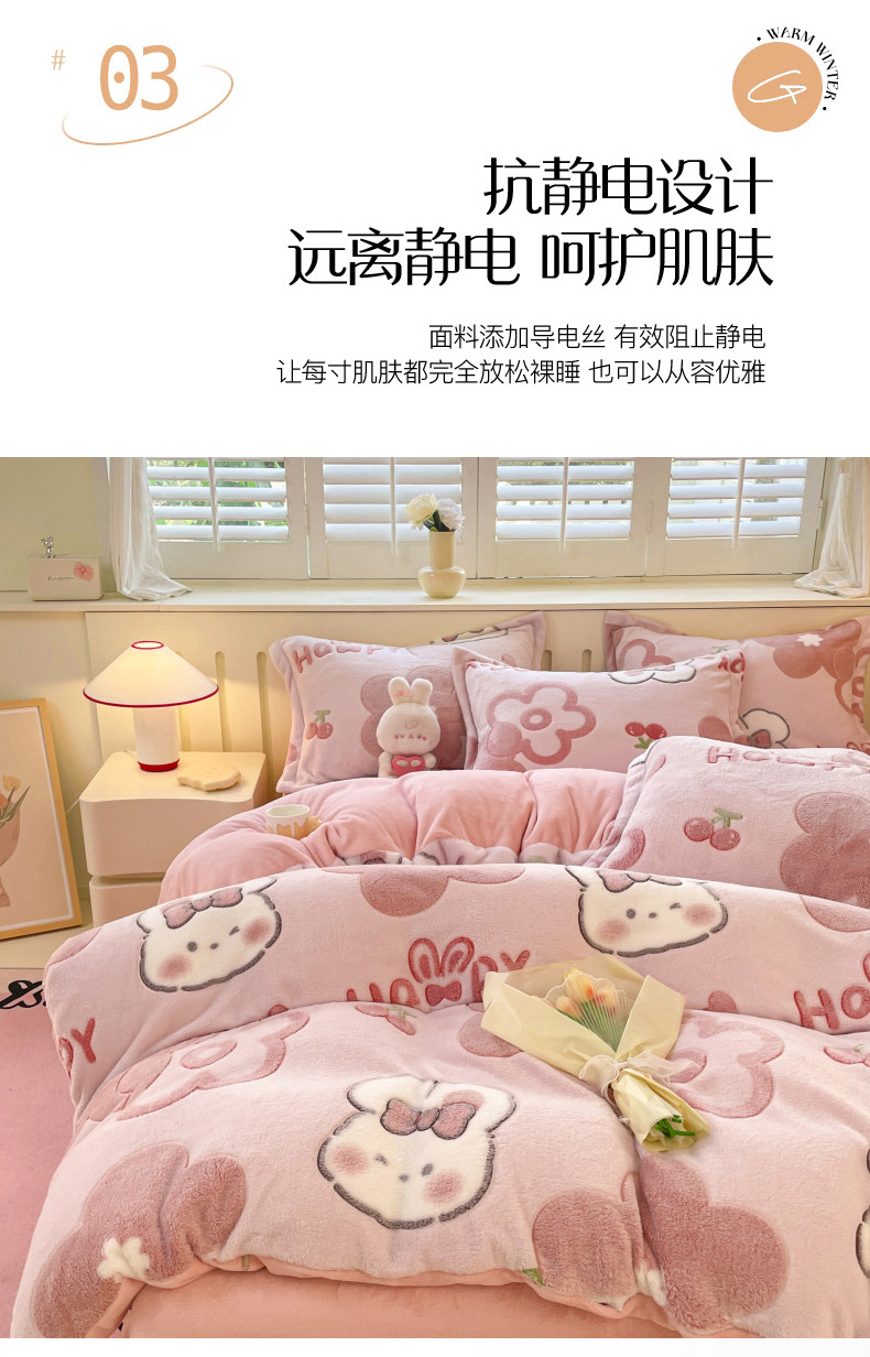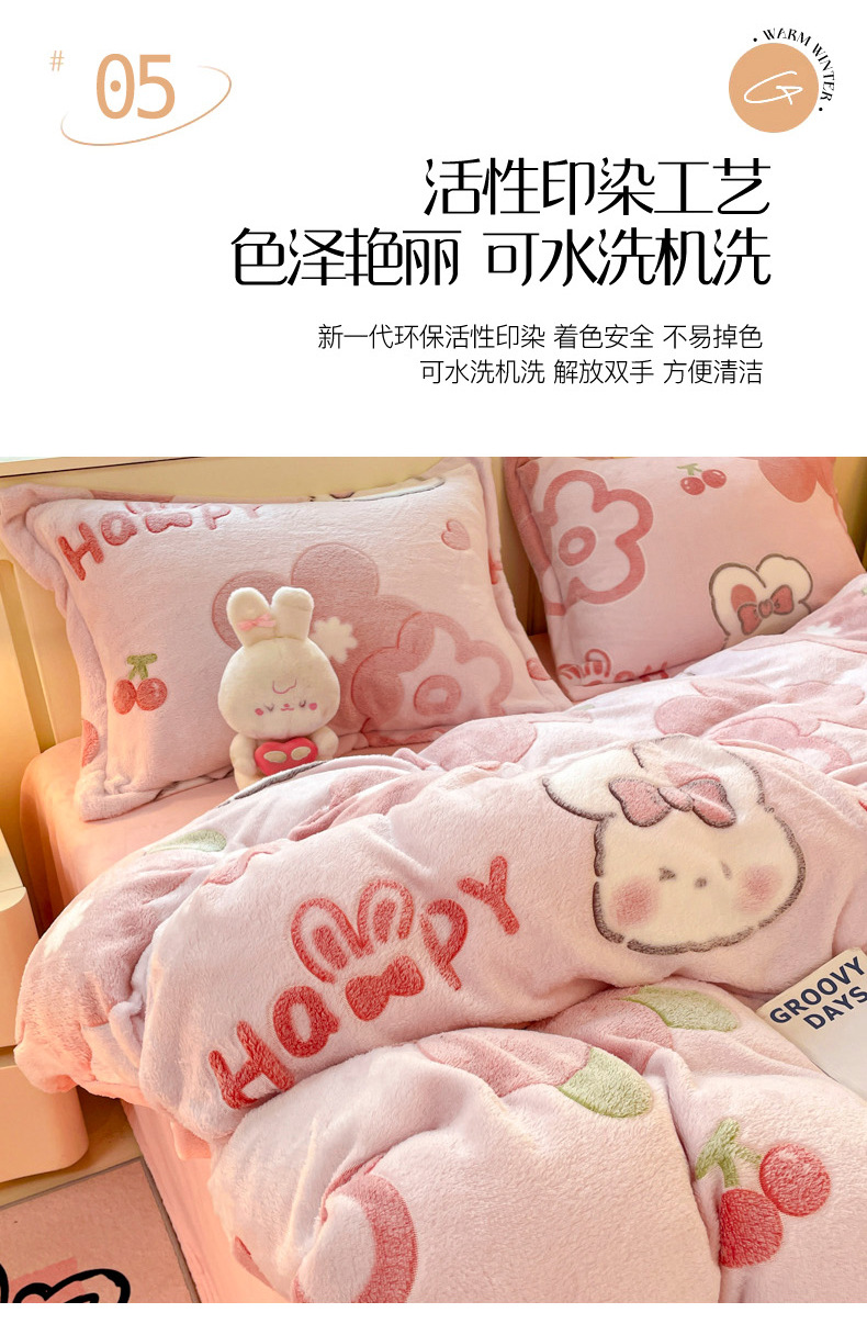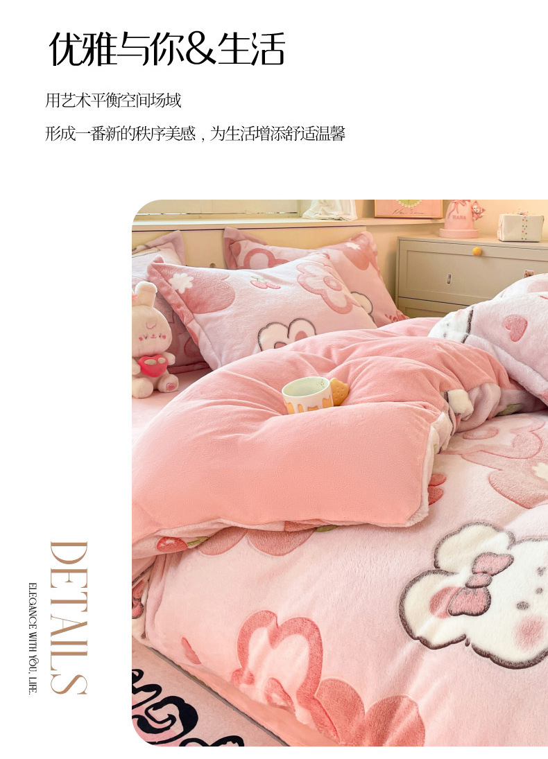 Cama de dibujos animados de lana de leche de invierno engrosado de lana de coral sábanas cálidas cubierta de colcha de cama de tres piezas