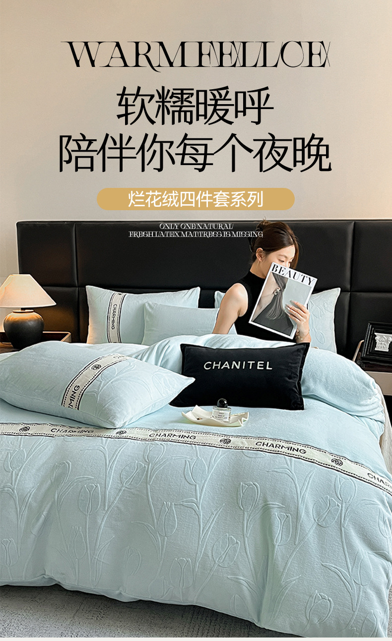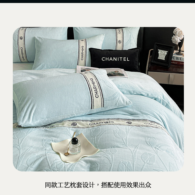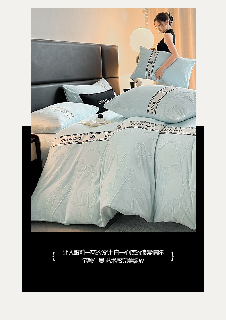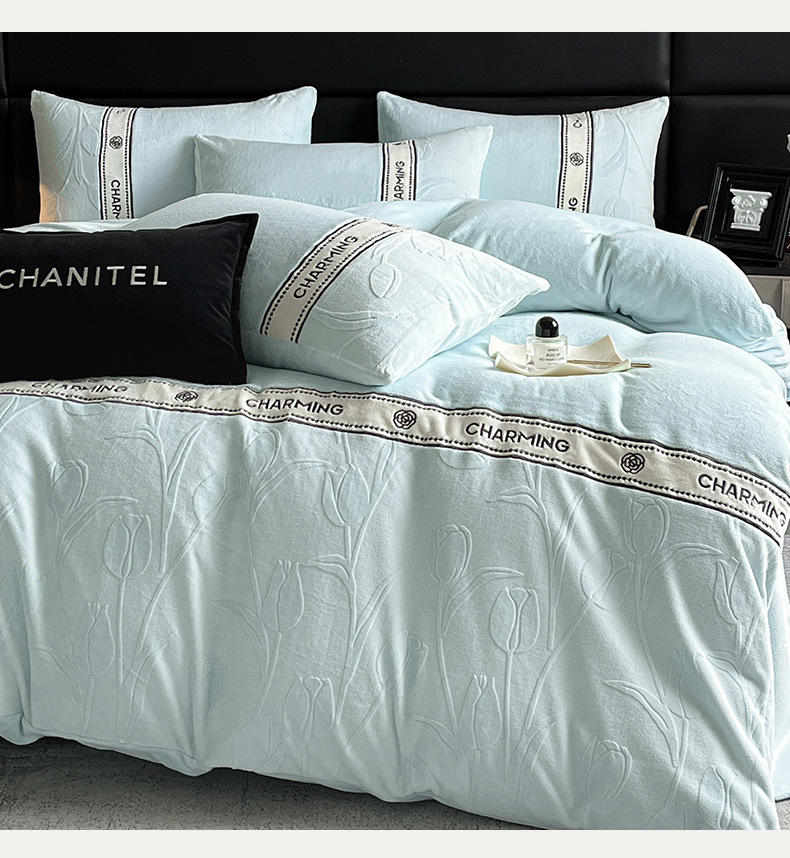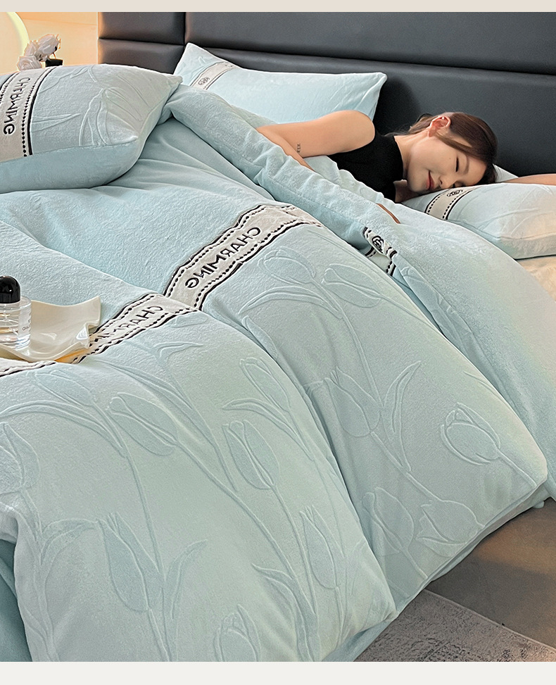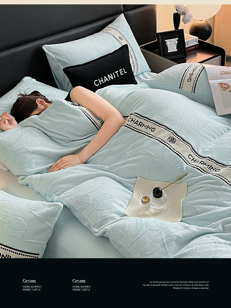 Invierno tallado leche de terciopelo en la cama de cuatro piezas conjunto 2025 nuevo engrosado sábanas cálidas cama