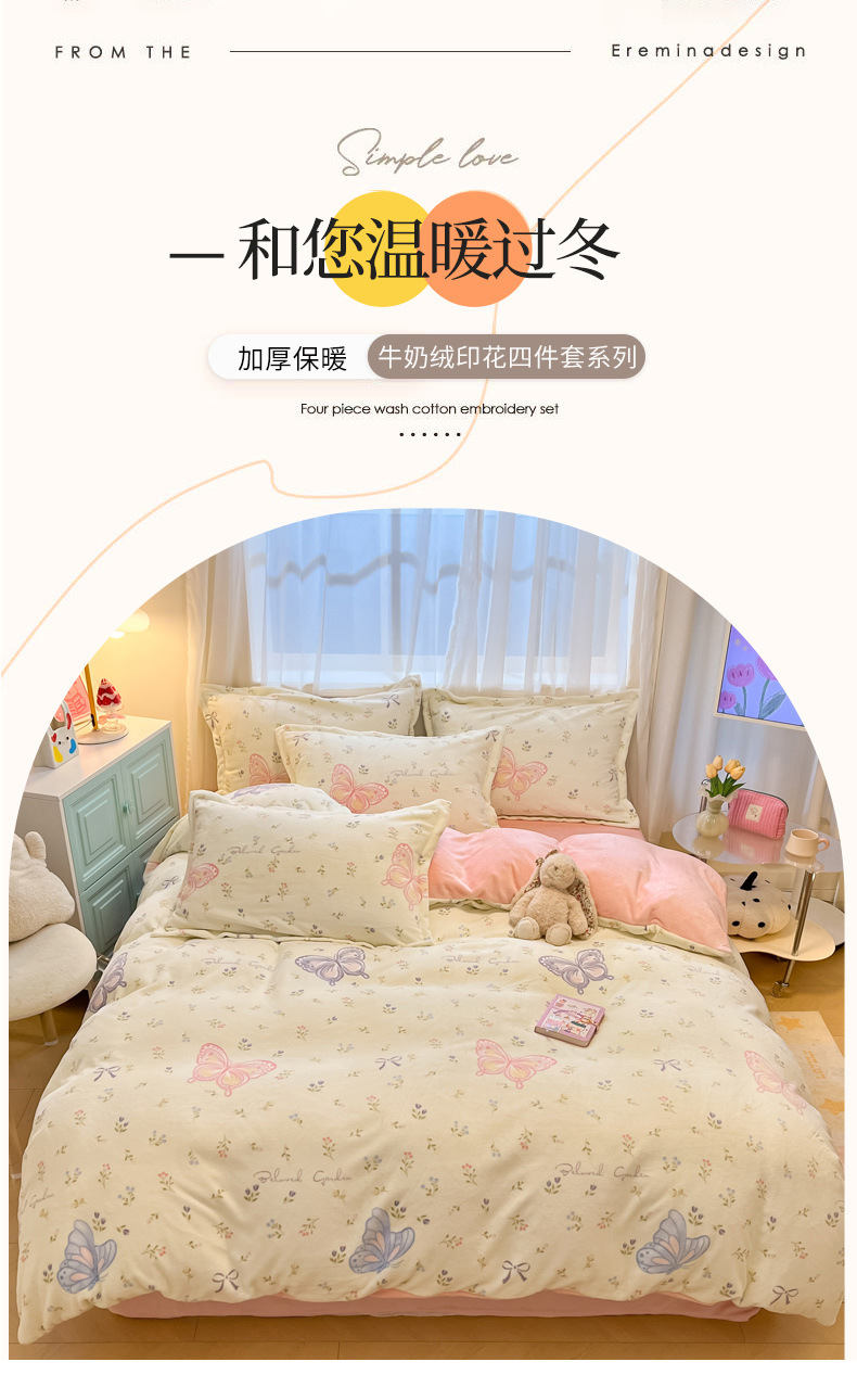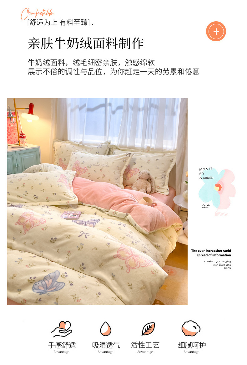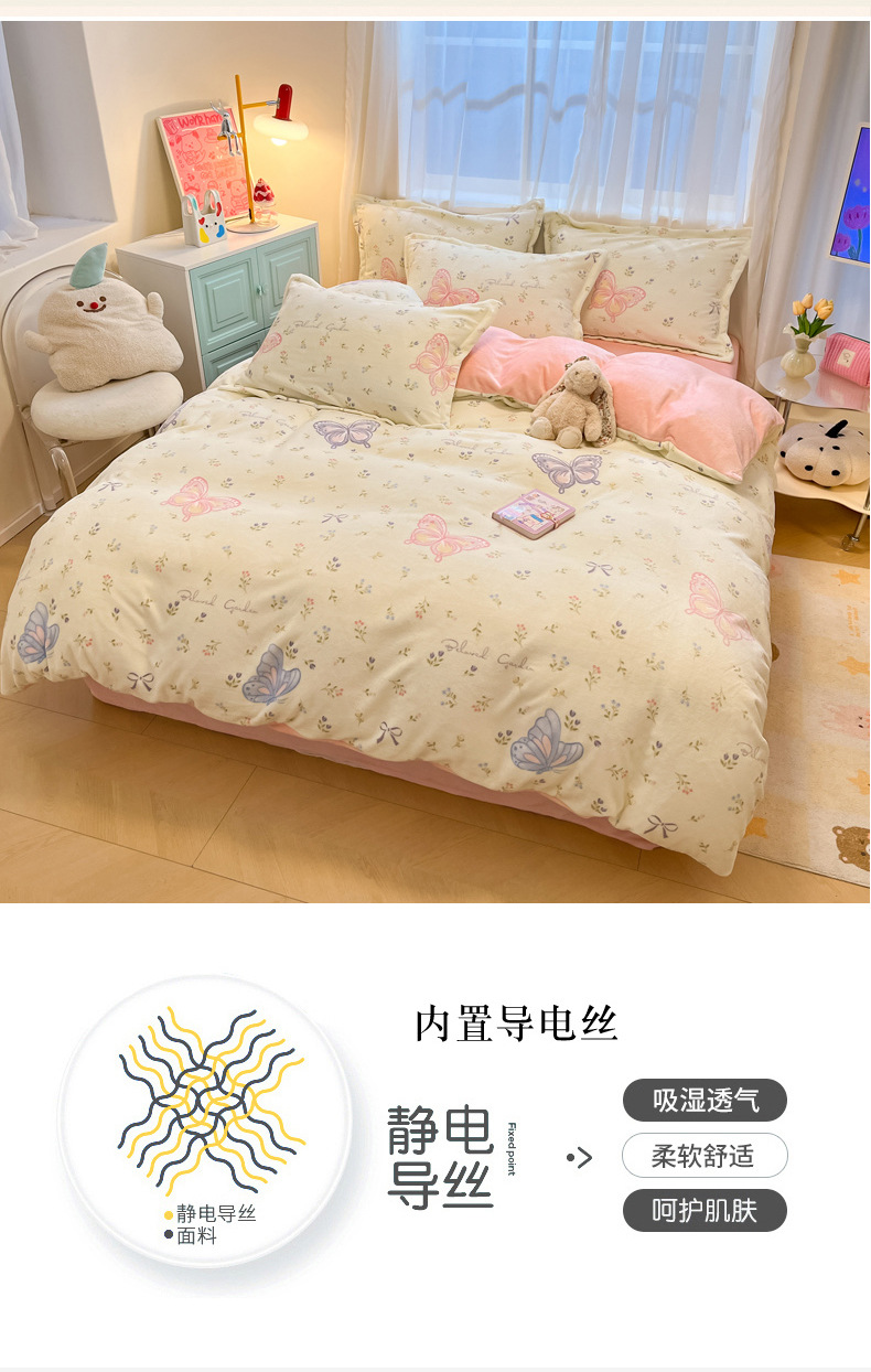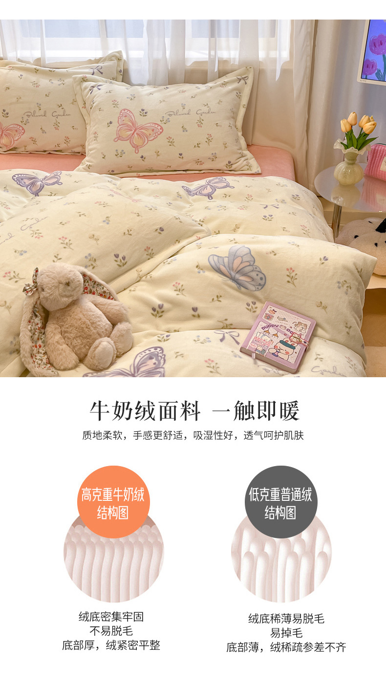 Cama de terciopelo de leche gruesa de cuatro piezas 2025, nuevo invierno cálido sábanas de terciopelo de coral cubierta de cama de tres piezas