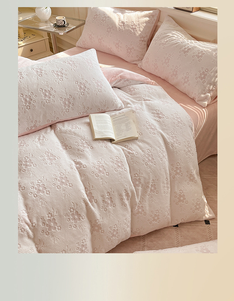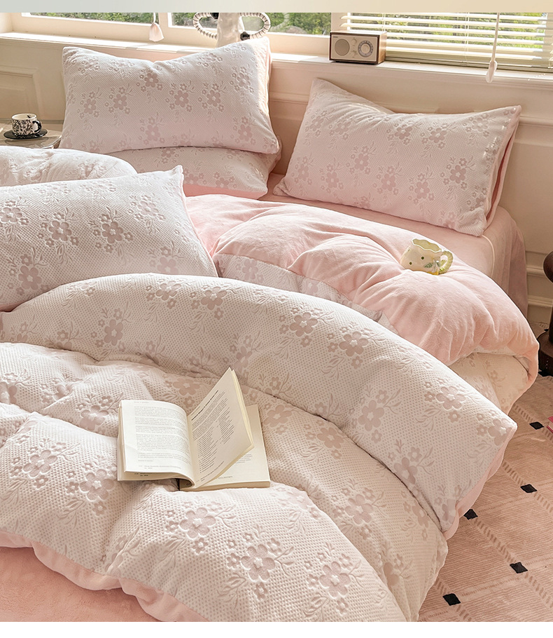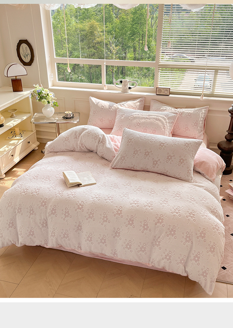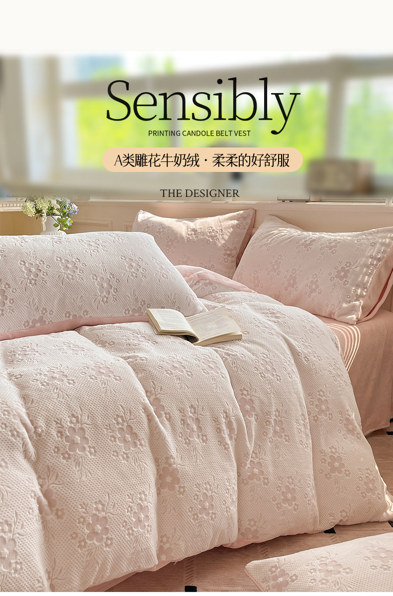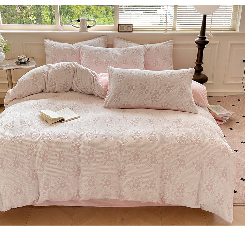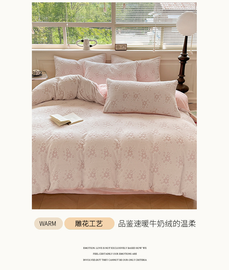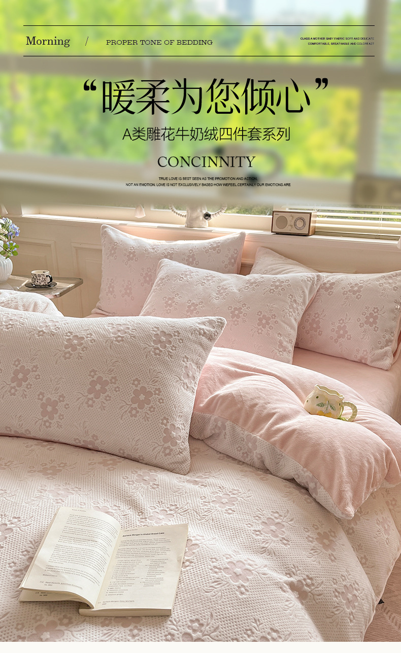 La cama de terciopelo de leche tallada de cuatro piezas en invierno grueso 2025 nueva sábanas de terciopelo de coral cubierta de cama de tres piezas