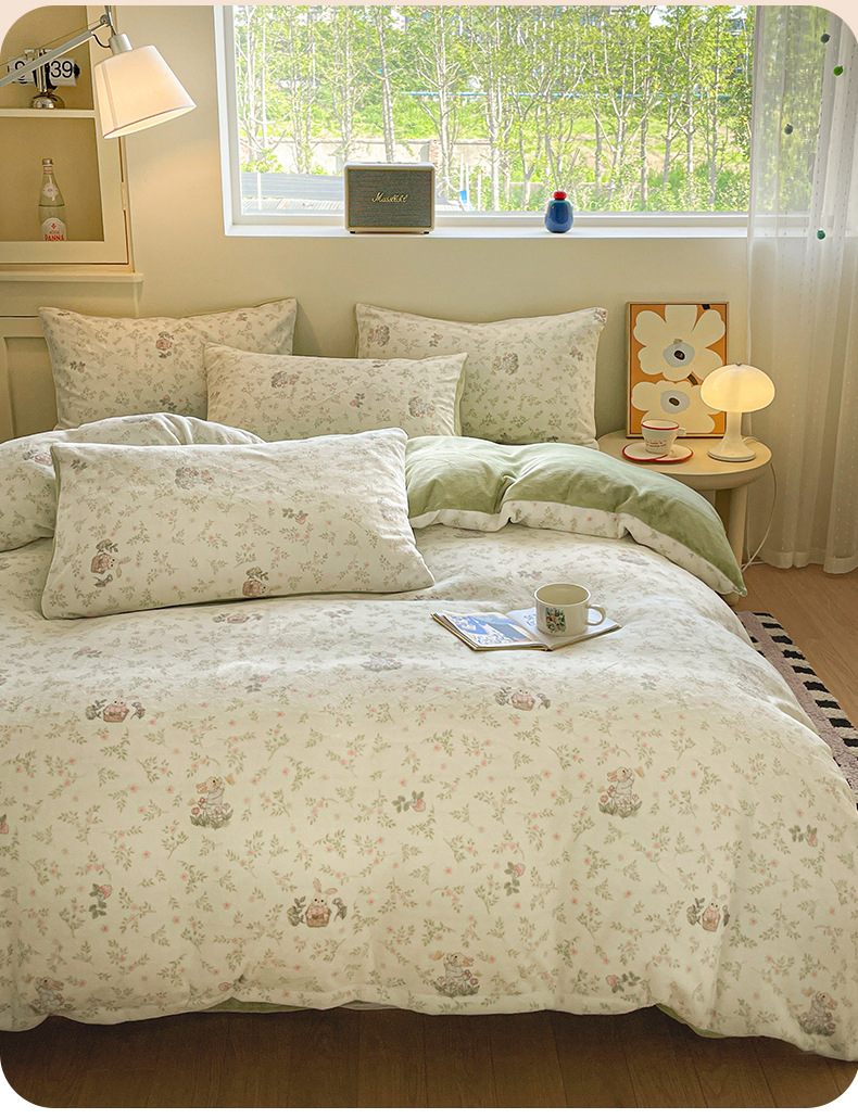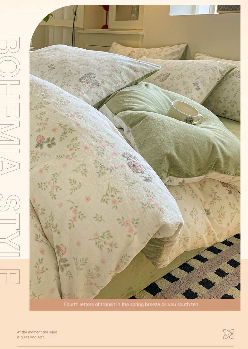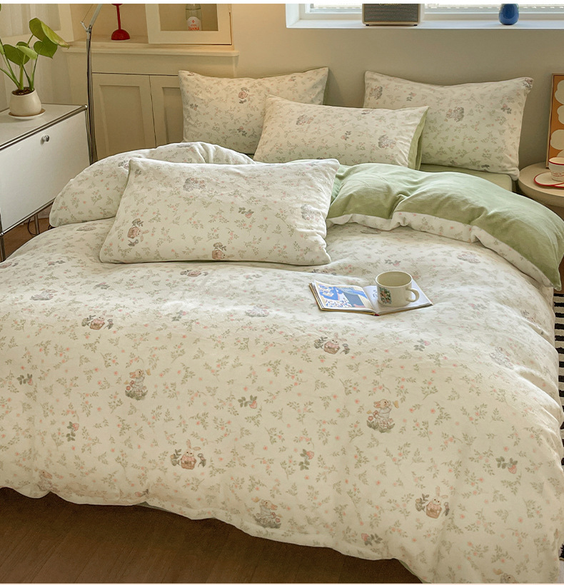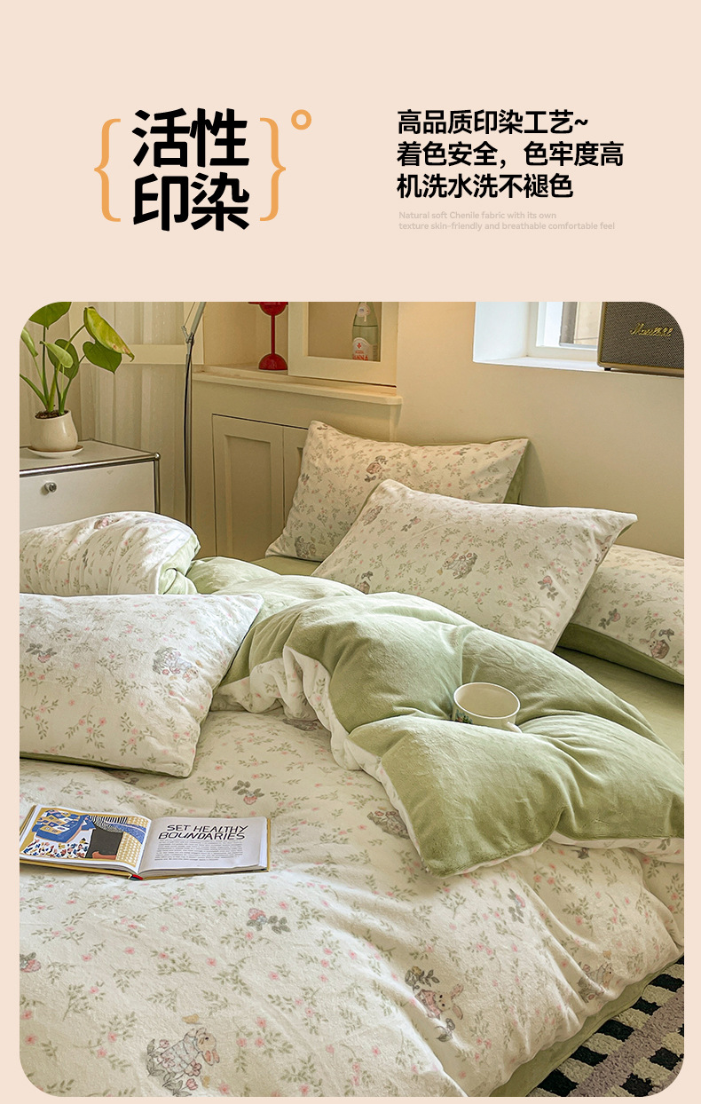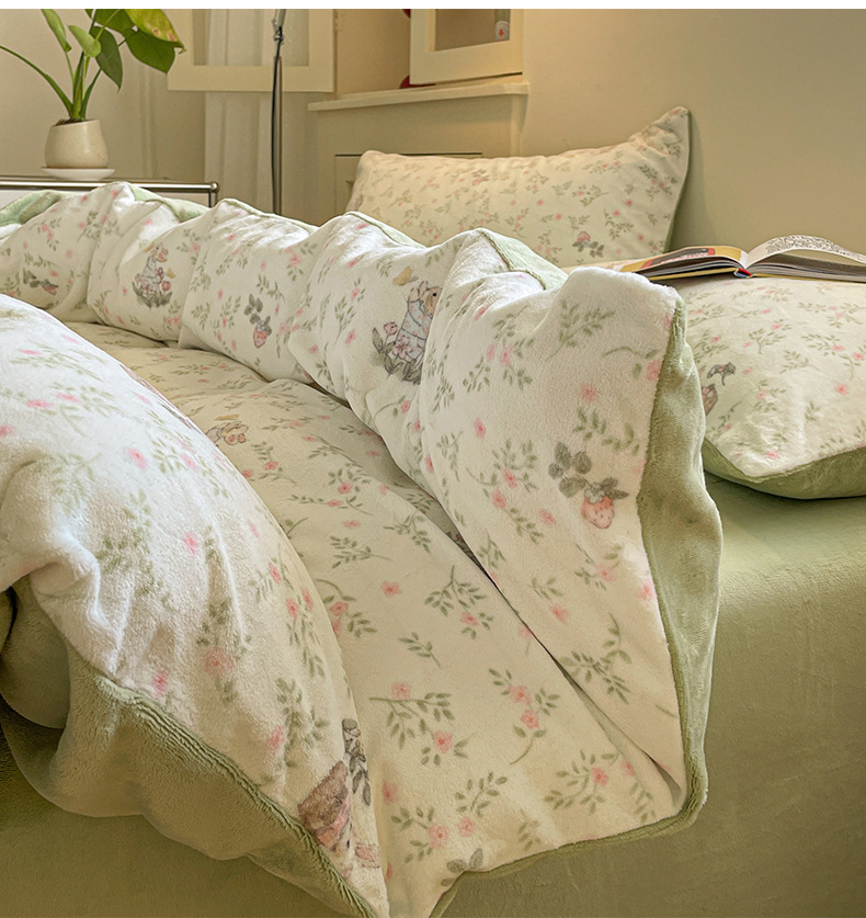 Invierno leche de seda gruesa cama de cuatro piezas pequeña seda de coral fresca gruesa sábanas cálidas cubierta de colcha de tres piezas 3