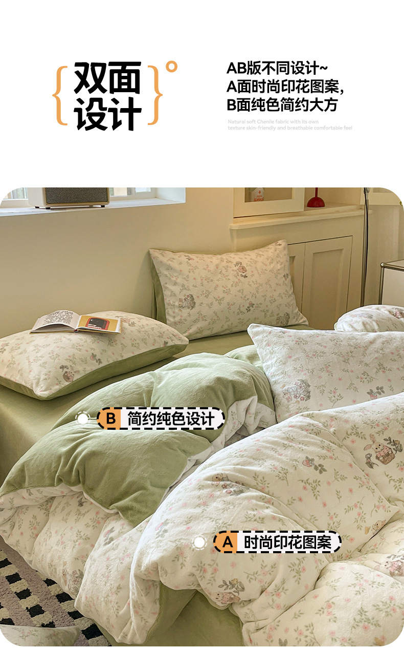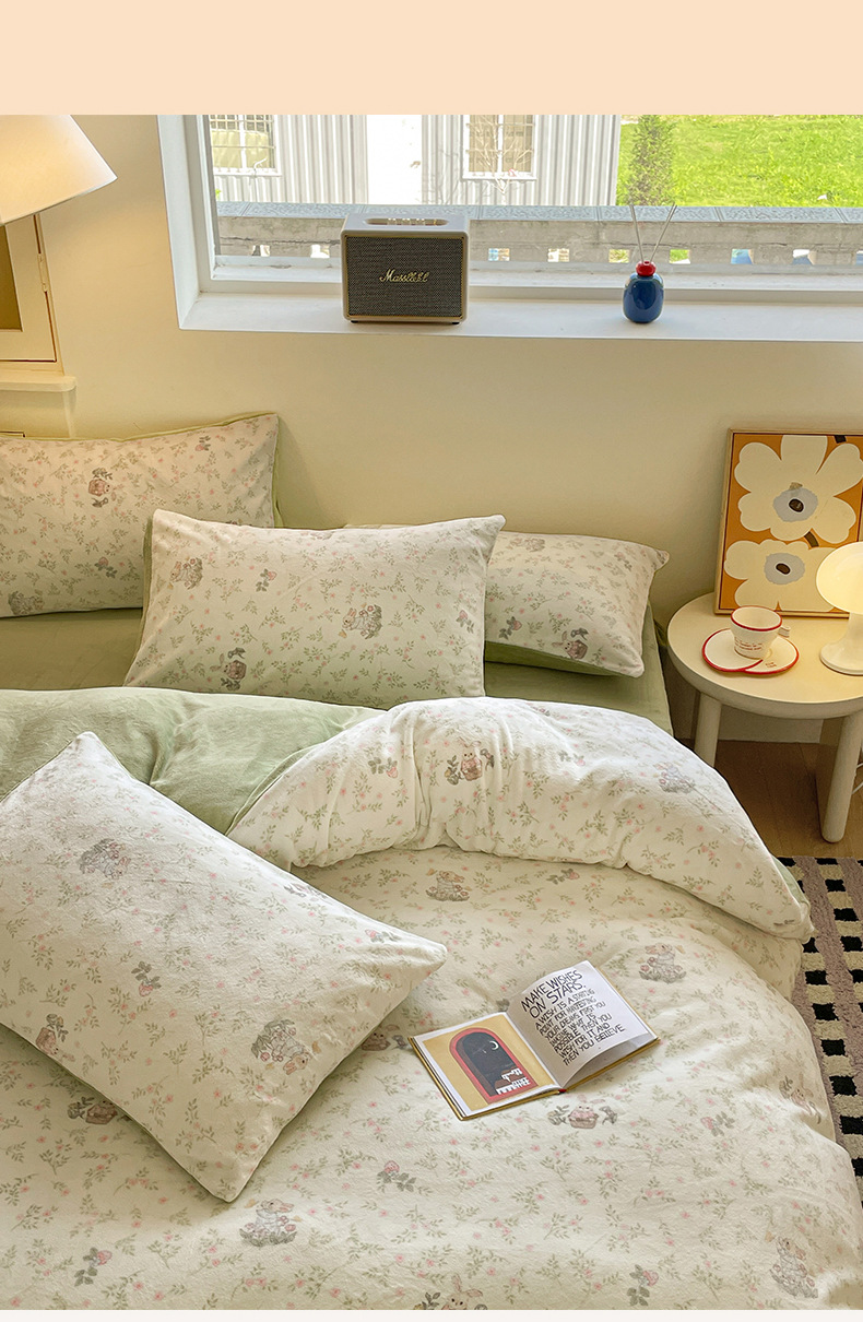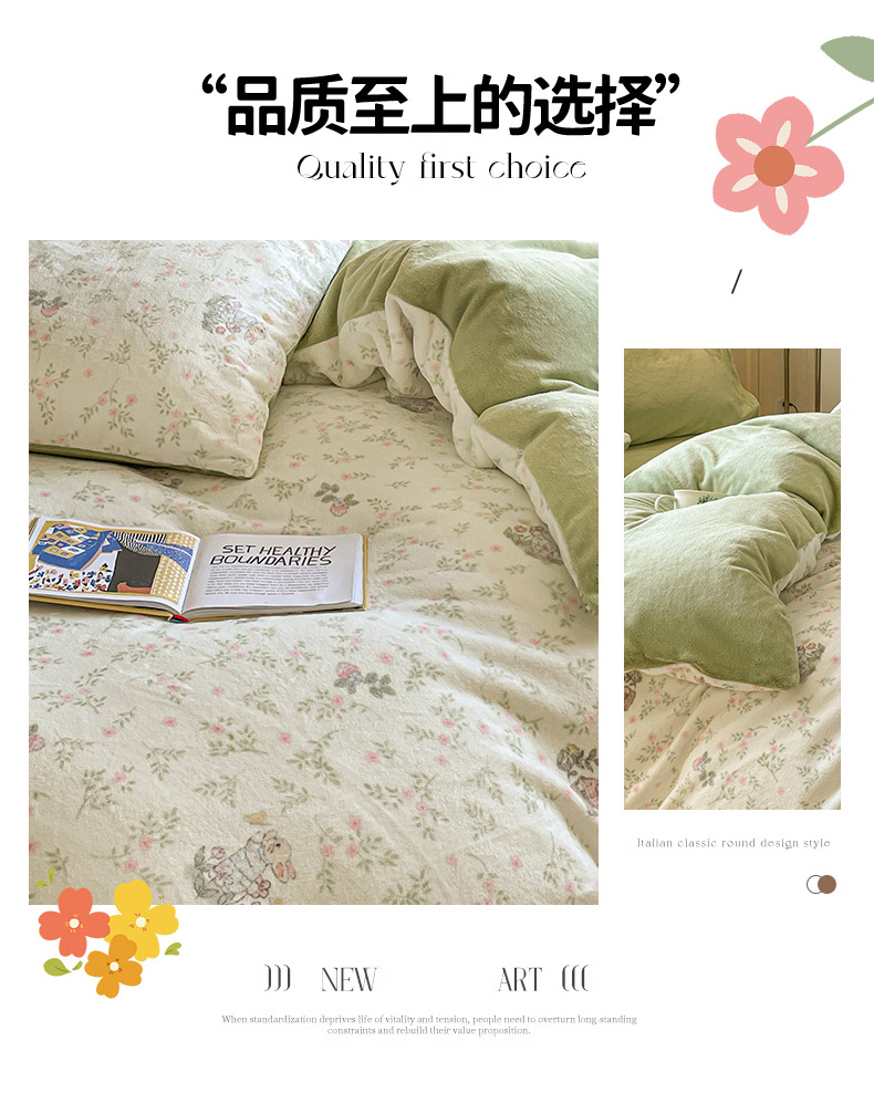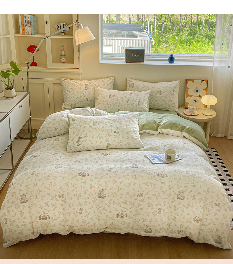 Invierno leche de seda gruesa cama de cuatro piezas pequeña seda de coral fresca gruesa sábanas cálidas cubierta de colcha de tres piezas 3