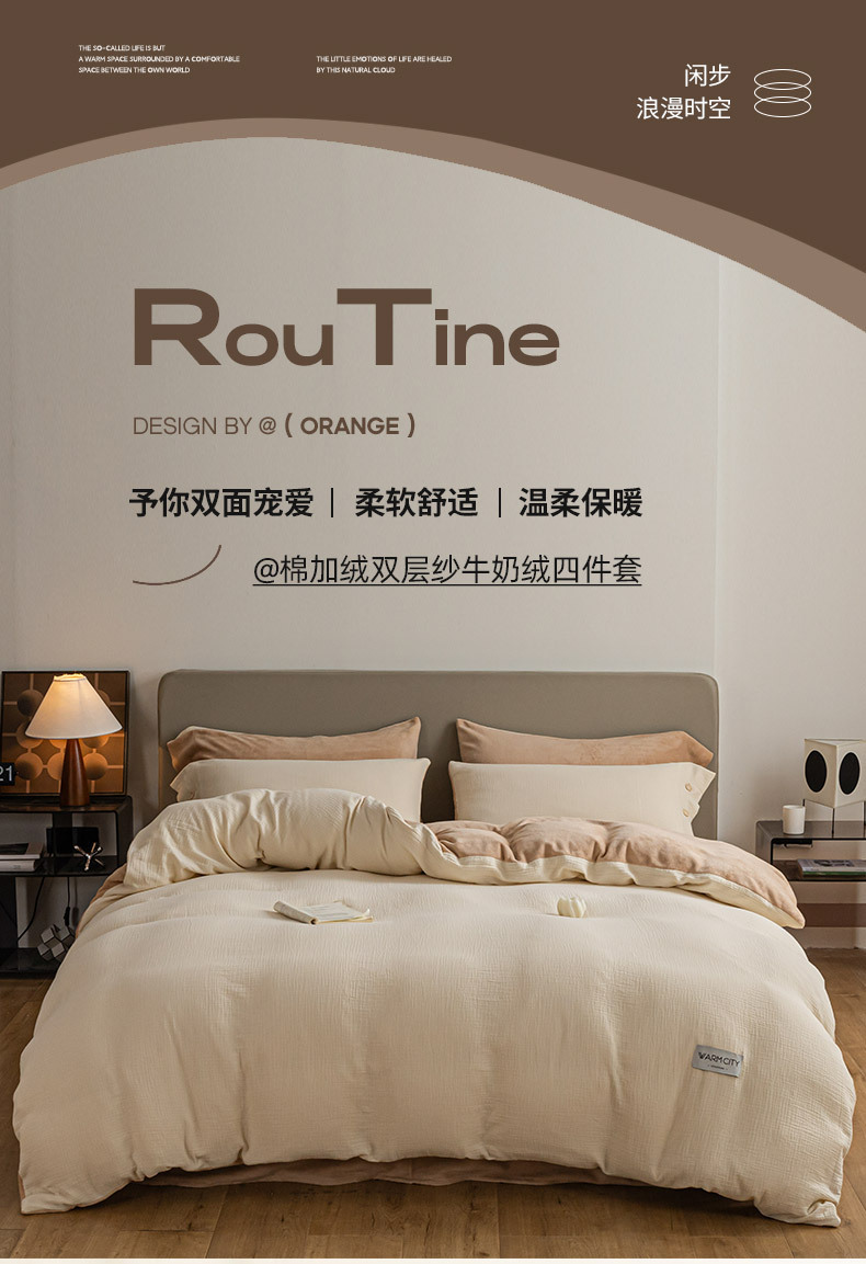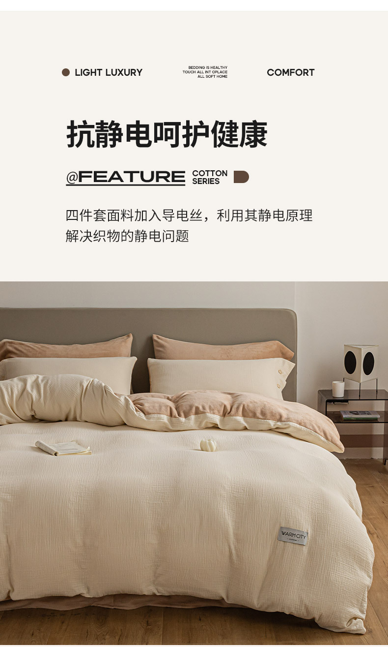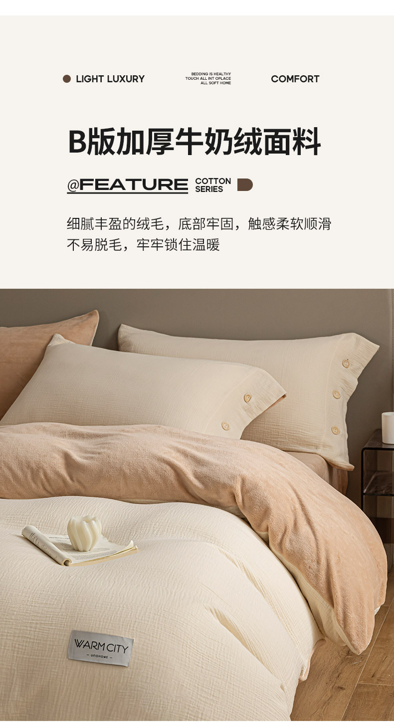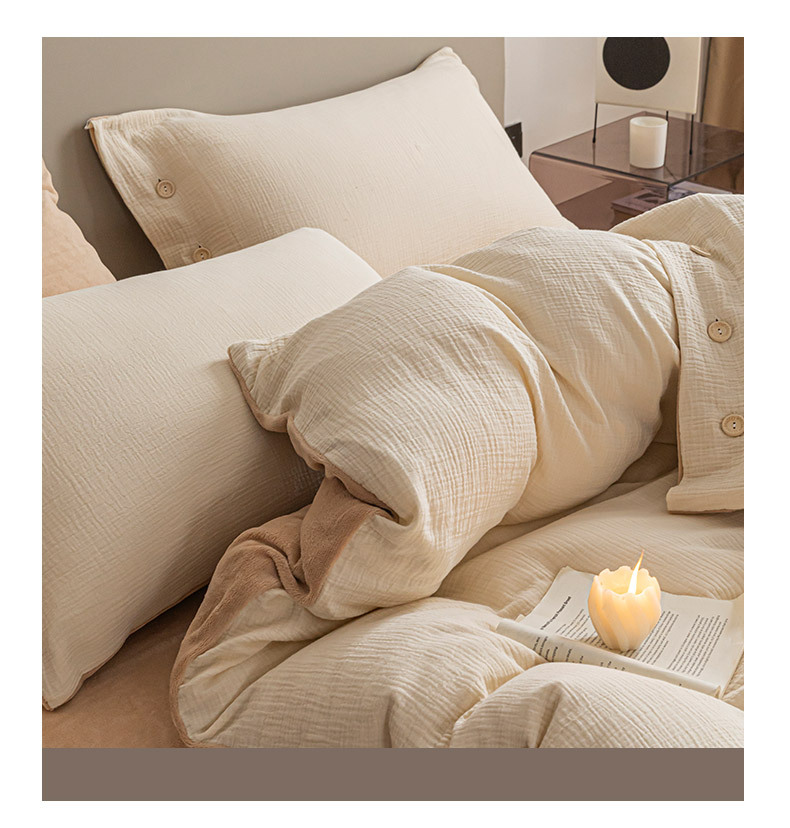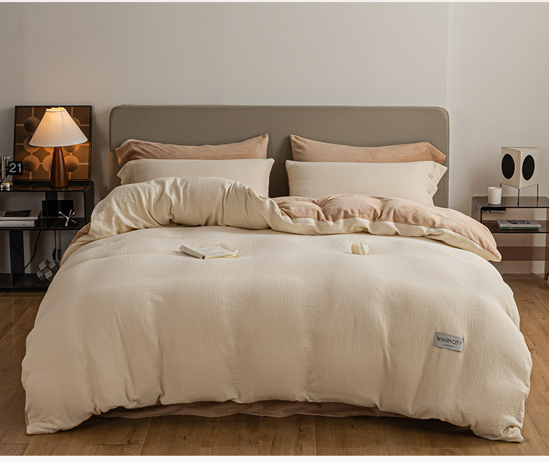 Doble hilo de leche de lana de cuatro piezas de otoño y invierno engrosado cálido edredón de coral cubierta sábanas de cama de algodón de lana de cama