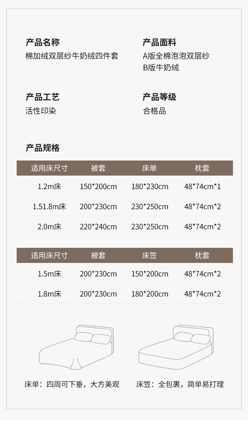 | Especificaciones de tamaño | 1.5m sábanas de cuatro piezas [coveta de colcha 200 * 230cm + sábanas de 245 * 250cm + funda de almohada * 2], 1.8m sábanas de cuatro piezas [coveta de colcha 200 * 230cm + sábanas de 245 * 250cm + funda de almohada * 2], 2.0m sábanas de cuatro piezas [coveta de colcha 220 * 240cm + sábanas de 245 * 250cm + funda de almohada * 2], 1.5m sábanas de cuatro piezas [coveta de colcha 200 * 230cm + sábanas de 150 * 200cm + funda de almohada * 2, 1.8m cama de cuatro piezas [cubierta de edredón 200 * 230cm + cama de cama de 180 * 200cm + funda de almohada * 2] |