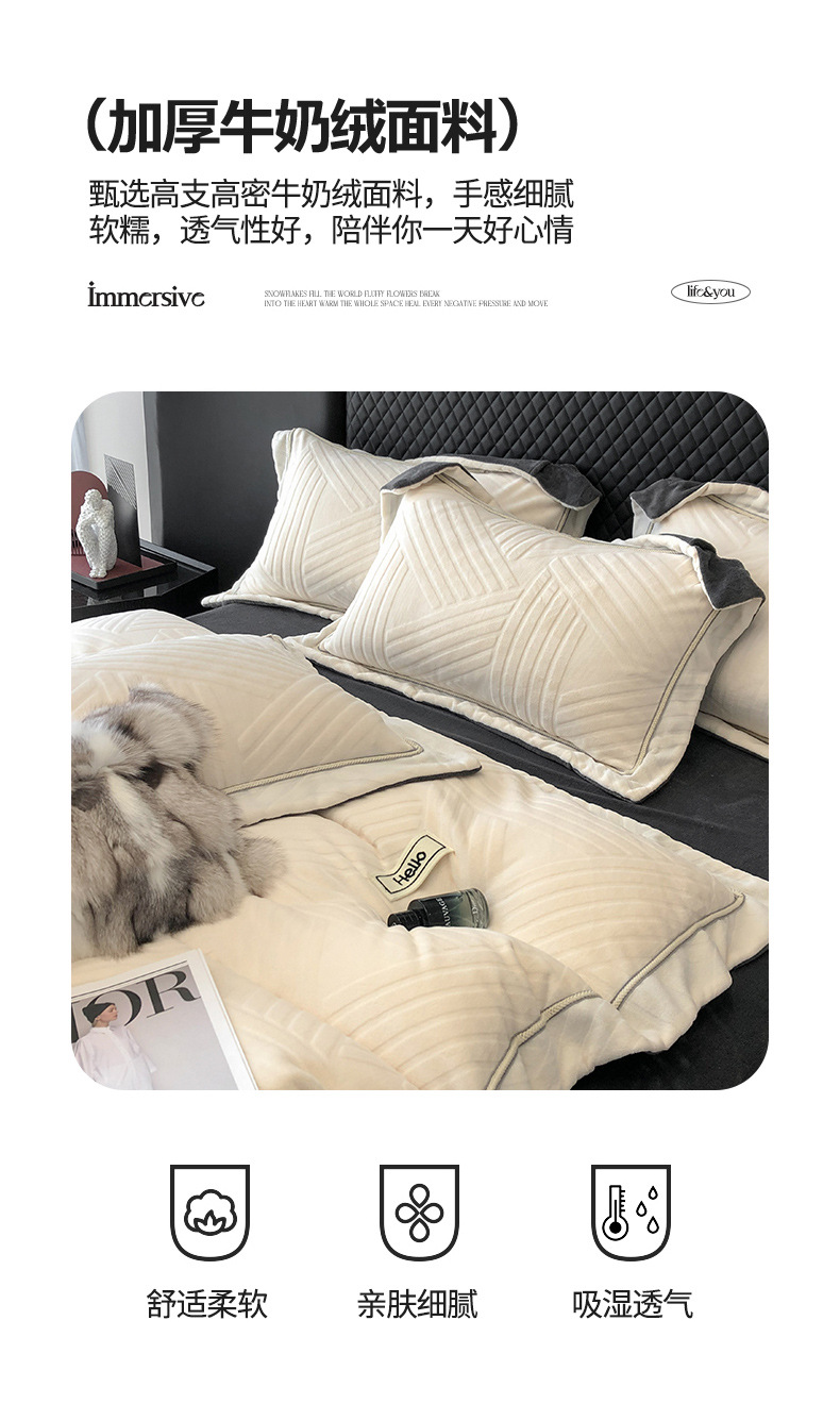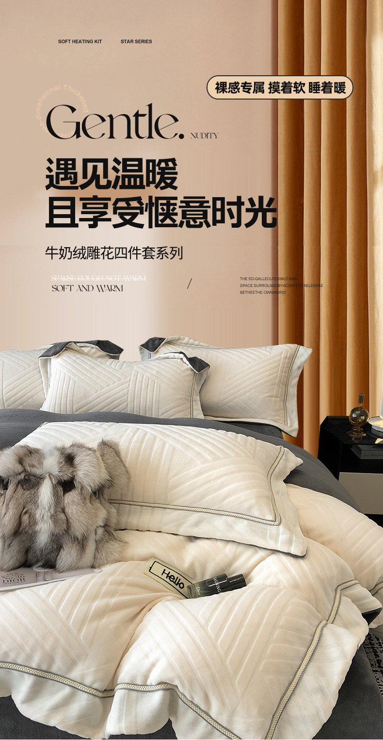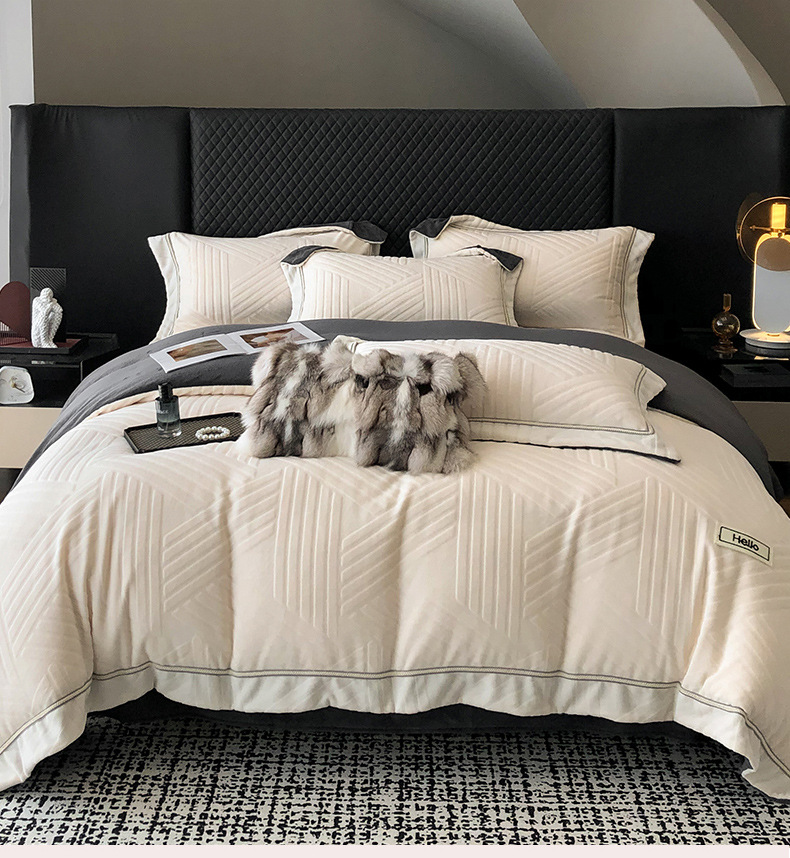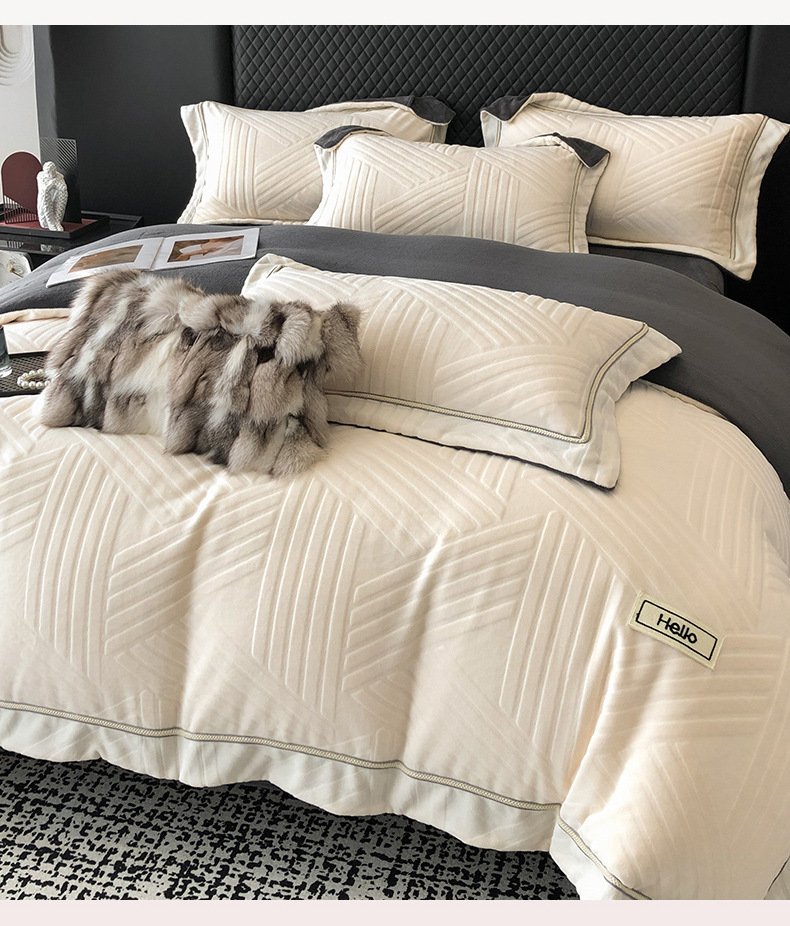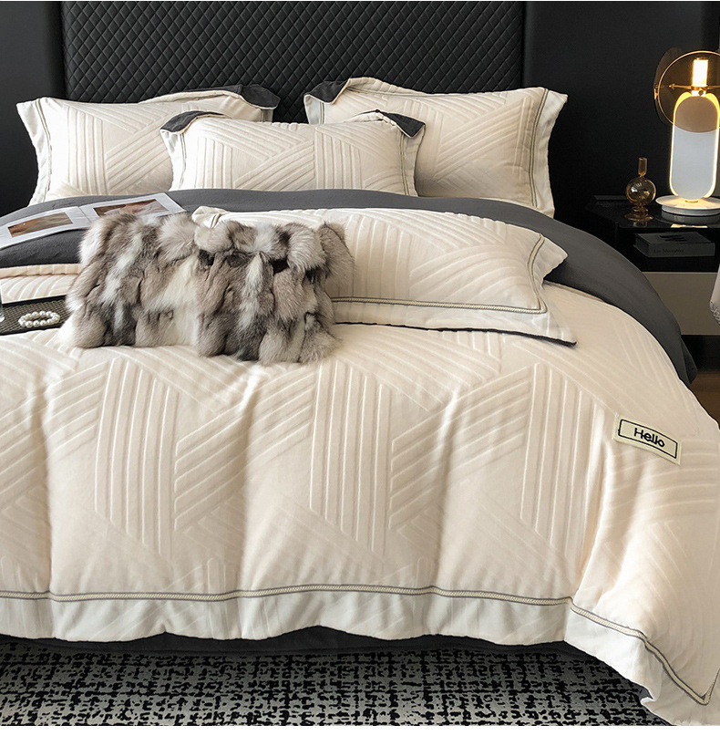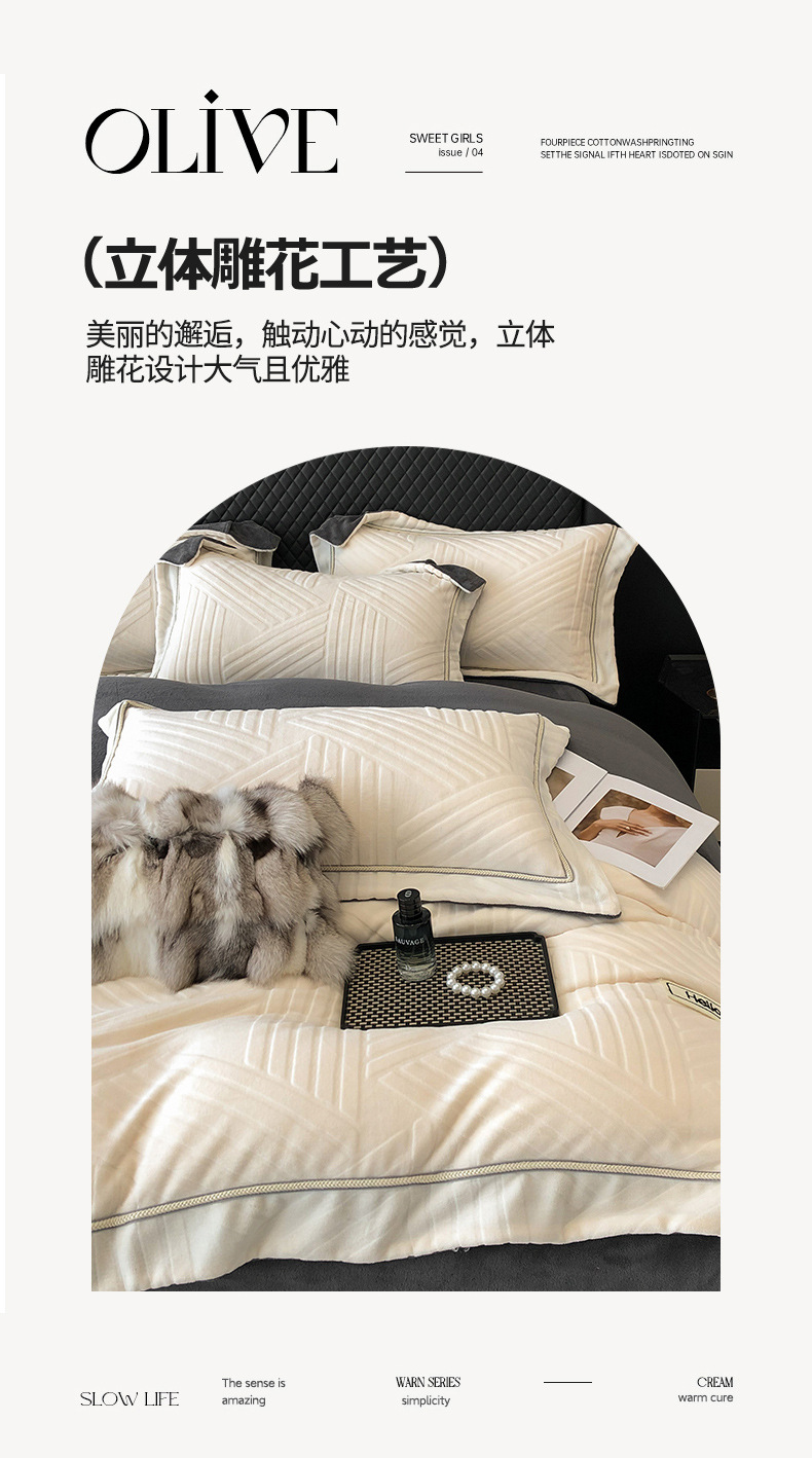 Luz de lujo espeso de leche de cuatro piezas de seda de coral esculpida de alto nivel sábanas de cama cálidas de invierno set