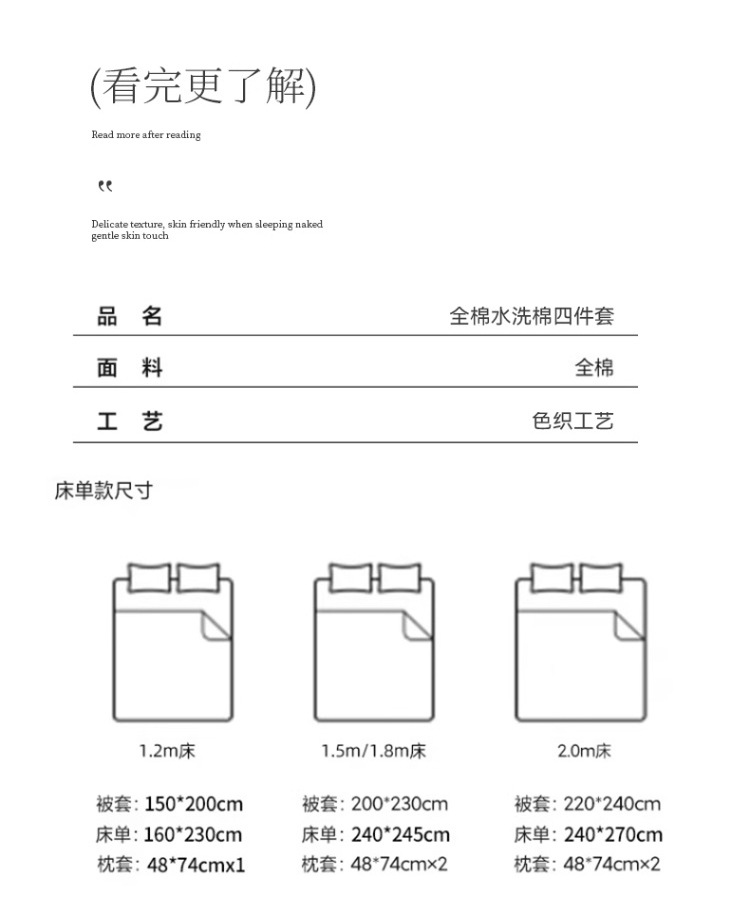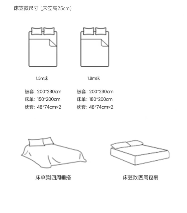 | Especificaciones de tamaño | 0.9m [conjunto de tres piezas adecuado para núcleo de edredón de 150x200cm], 1.2m [conjunto de tres piezas adecuado para núcleo de edredón de 150x200cm], 1.5m [conjunto de cuatro piezas de sábanas adecuado para núcleo de edredón de 200x230cm], 1.8m [conjunto de cuatro piezas de sábanas adecuado para núcleo de edredón de 200x230cm], 2.0m [conjunto de cuatro piezas de sábanas adecuado para núcleo de edredón de 220x240cm], 1.5m [conjunto de cuatro piezas de cama de tipo gaaso adecuado para núcleo de edredón de 200x230cm], 1.8m [conjunto de cuatro piezas de cama de tipo gaaso adecuado para núcleo de edredón de 200x230cm] |