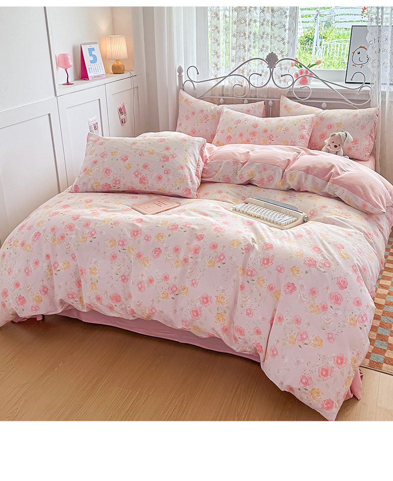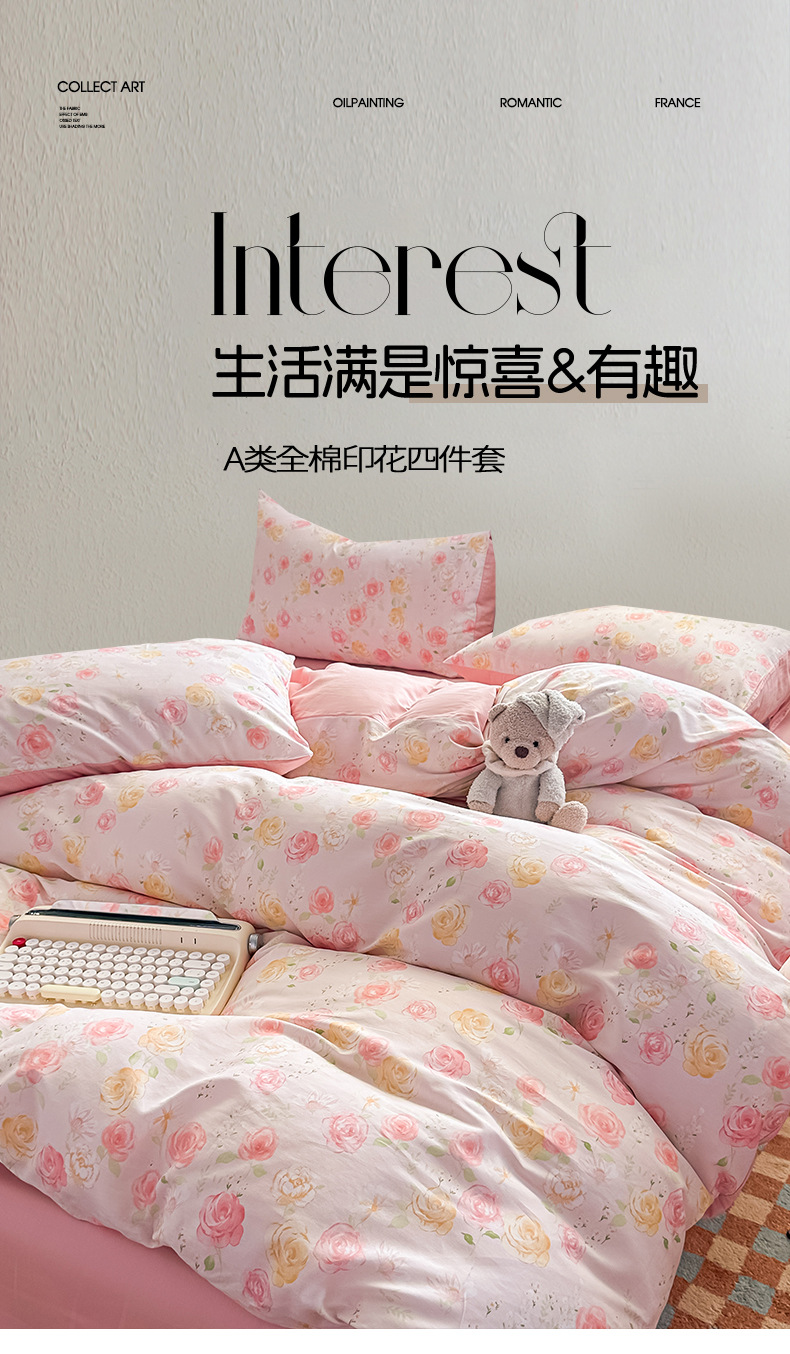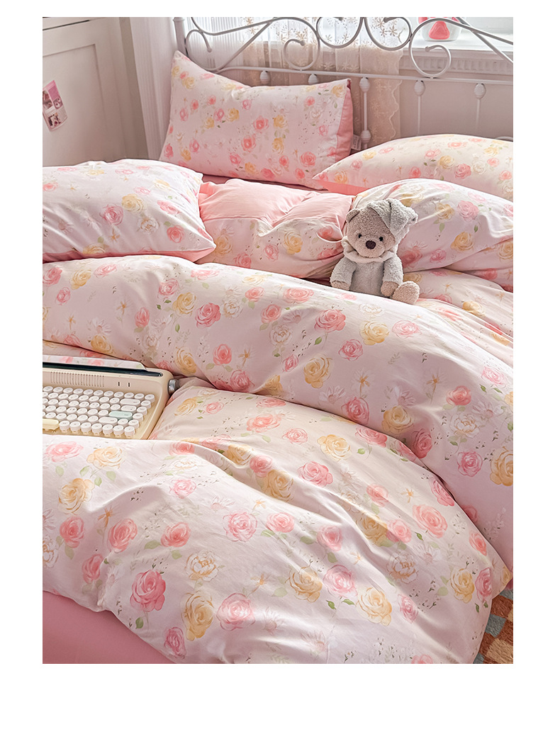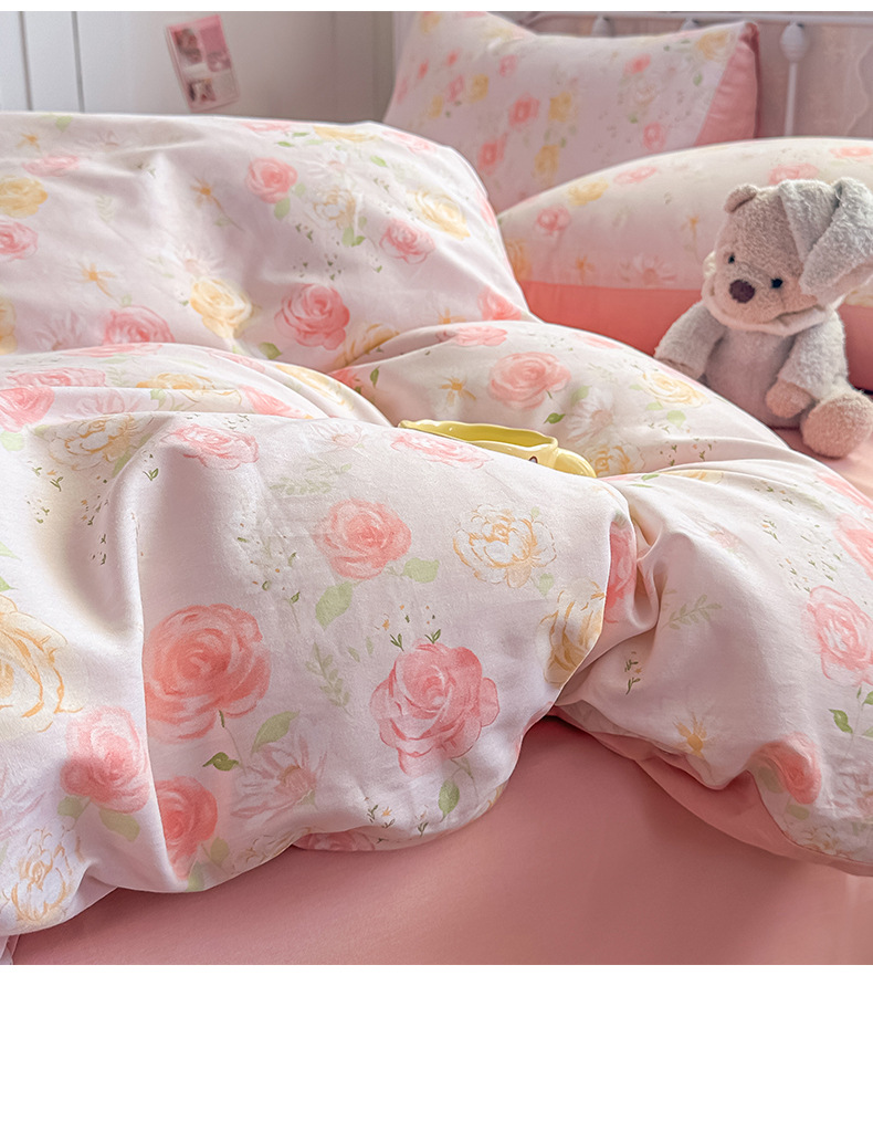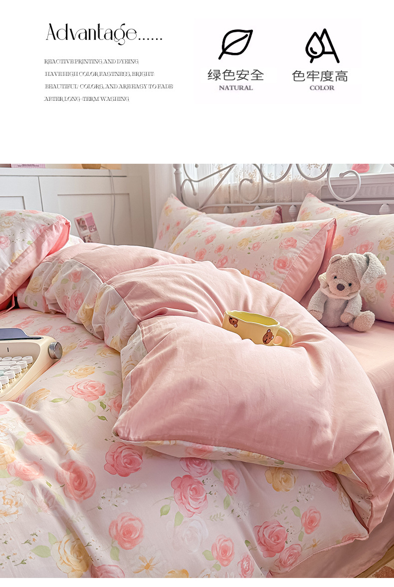 100% algodón cama de cuatro piezas, cubierta de sábanas de algodón, doble impresión de dormitorio de estudiantes, tres piezas