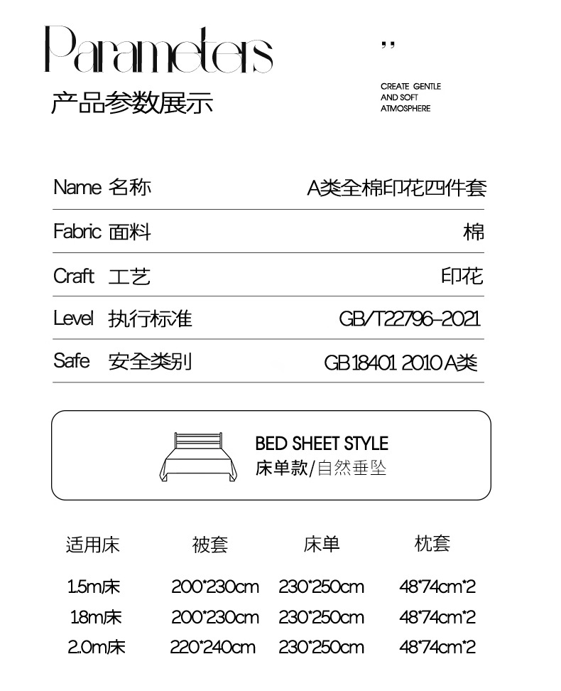 | Especificaciones de tamaño | Tres juegos de dormitorios de sábanas de 0,9 - 1,2 m [ropa de cama 150 * 200 cm], cuatro juegos de sábanas de 1,5 m [ropa de cama 200 * 230cm], cuatro juegos de sábanas de 1,8 m [ropa de cama 200 * 230cm], cuatro juegos de sábanas de 2,0 M [ropa de cama 220 * 240cm], cuatro juegos de sábanas de 1,5 m [ropa de cama 200 * 230cm], cuatro juegos de sábanas de 1,8 m [ropa de cama 200 * 230cm] |