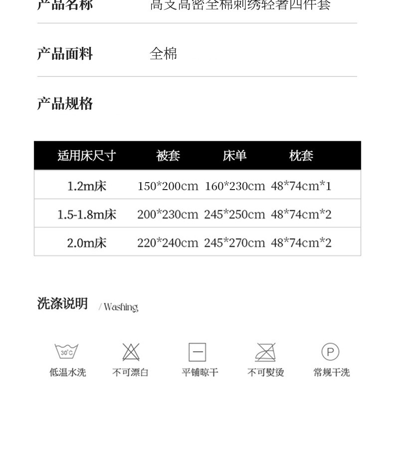 | Especificaciones de tamaño | 1.5m cama [conjunto de cuatro piezas] - adecuado para núcleo de edredón 200x230cm, 1.8m cama [conjunto de cuatro piezas] - adecuado para núcleo de edredón 200x230cm, 2.0m cama [conjunto de cuatro piezas] - adecuado para núcleo de edredón 220x240cm, 1.5m cama [conjunto de cuatro piezas] - adecuado para núcleo de edredón 200x230cm, 1.8m cama [conjunto de cuatro piezas] - adecuado para núcleo de edredón 200x230cm, 1.2m cama [conjunto de tres piezas] - adecuado para núcleo de edredón 150x200cm |