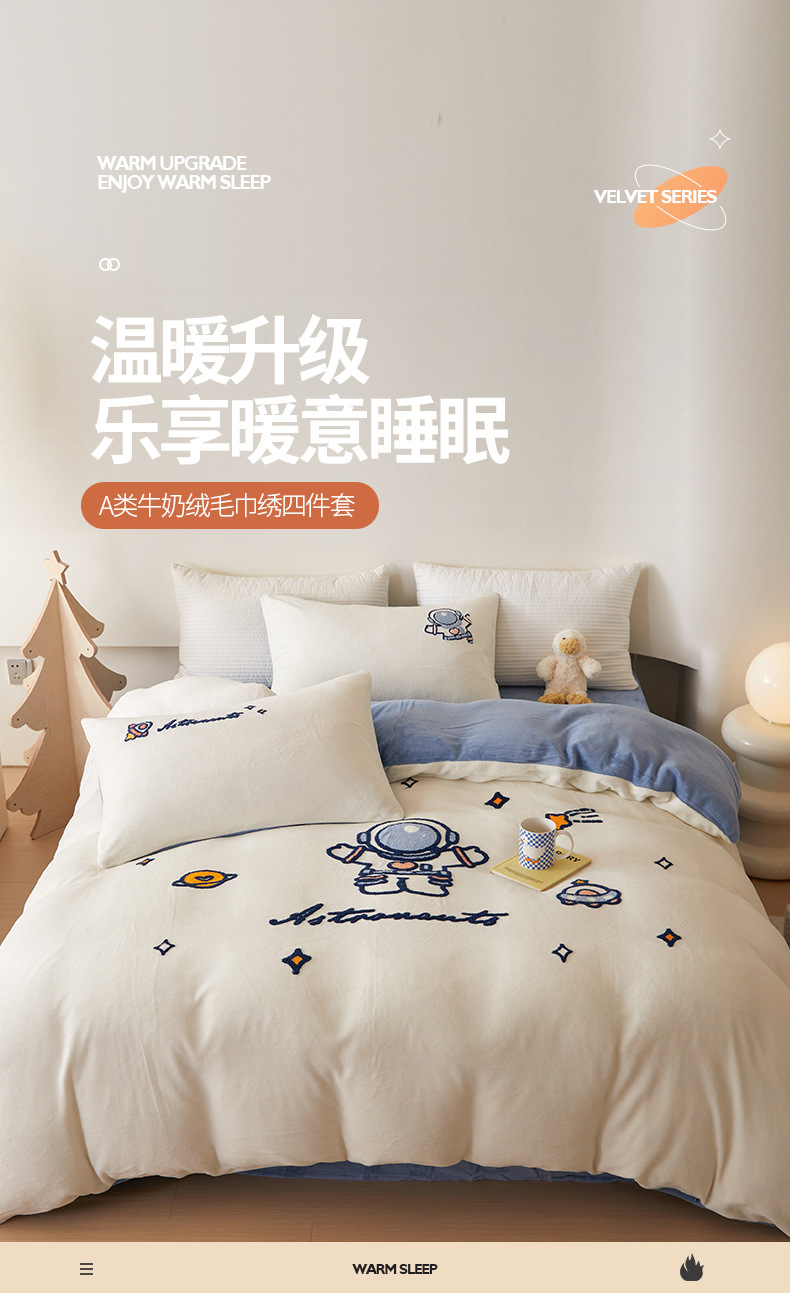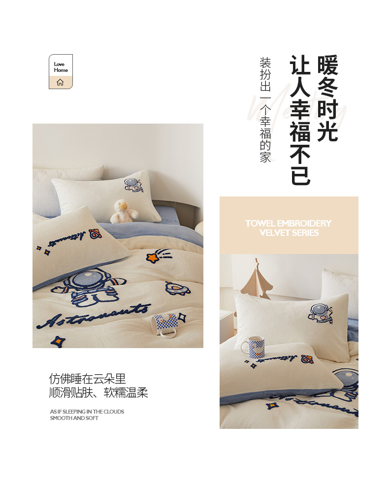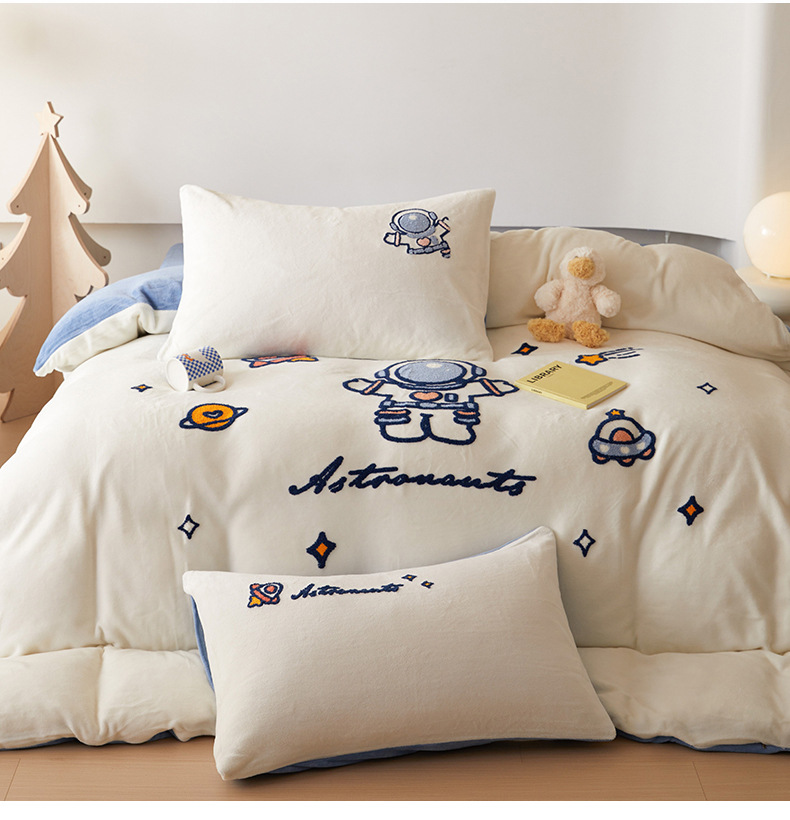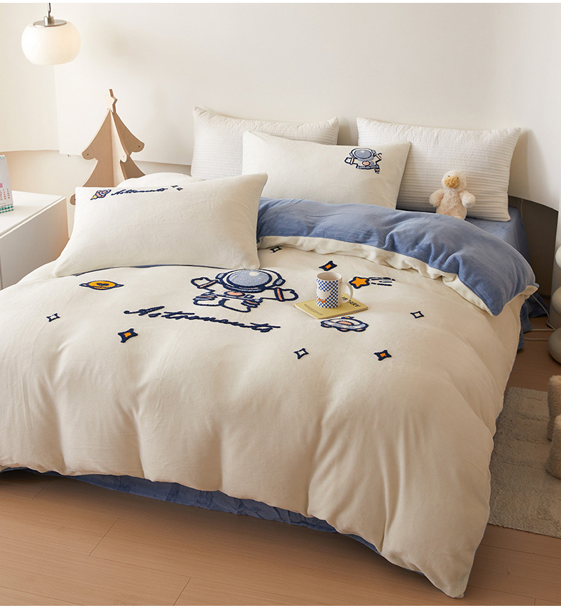 Leche de seda cama de cuatro piezas set2024 nuevo invierno sábanas de seda de tres piezas set ropa de cama de coral veludo