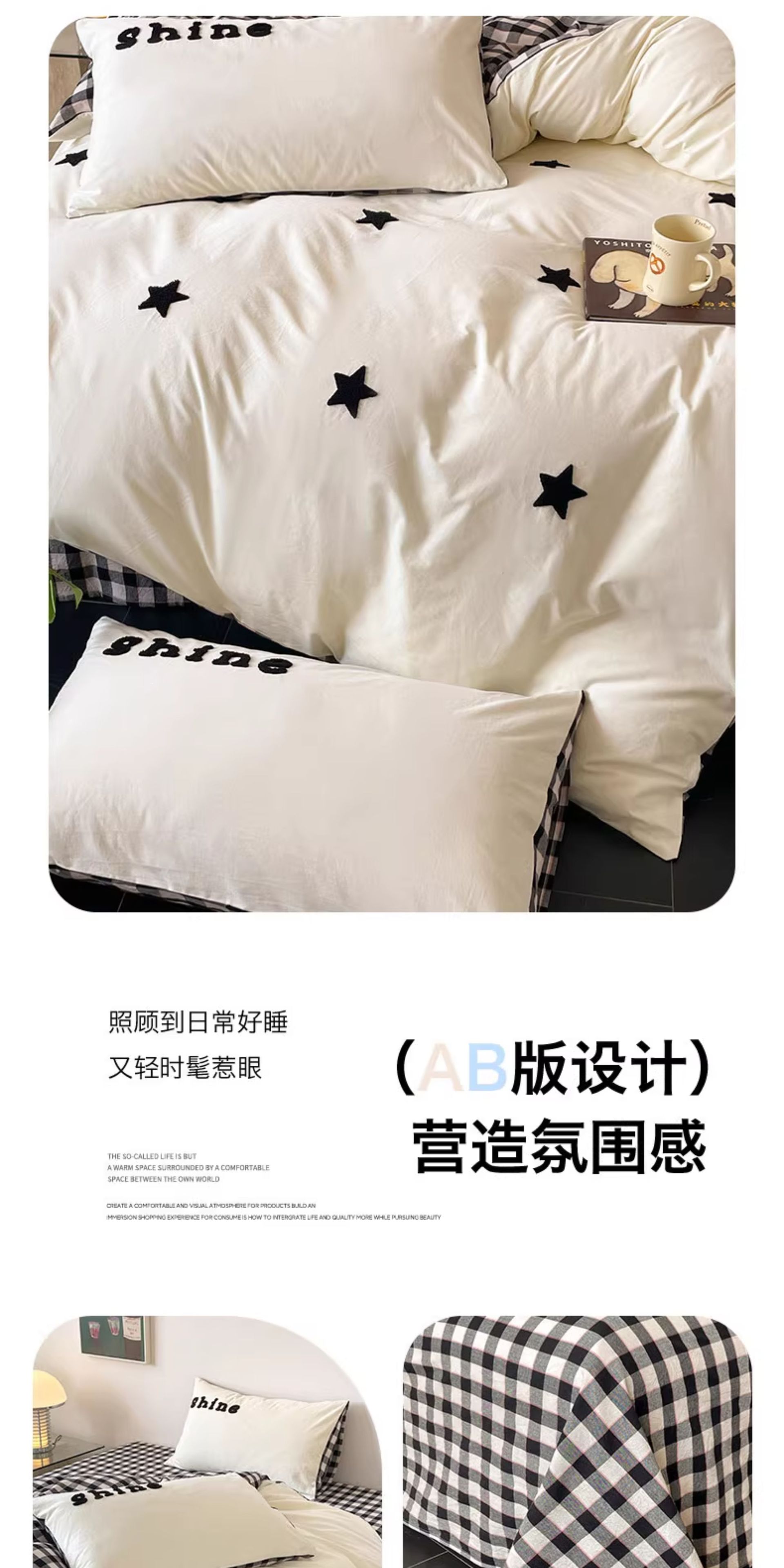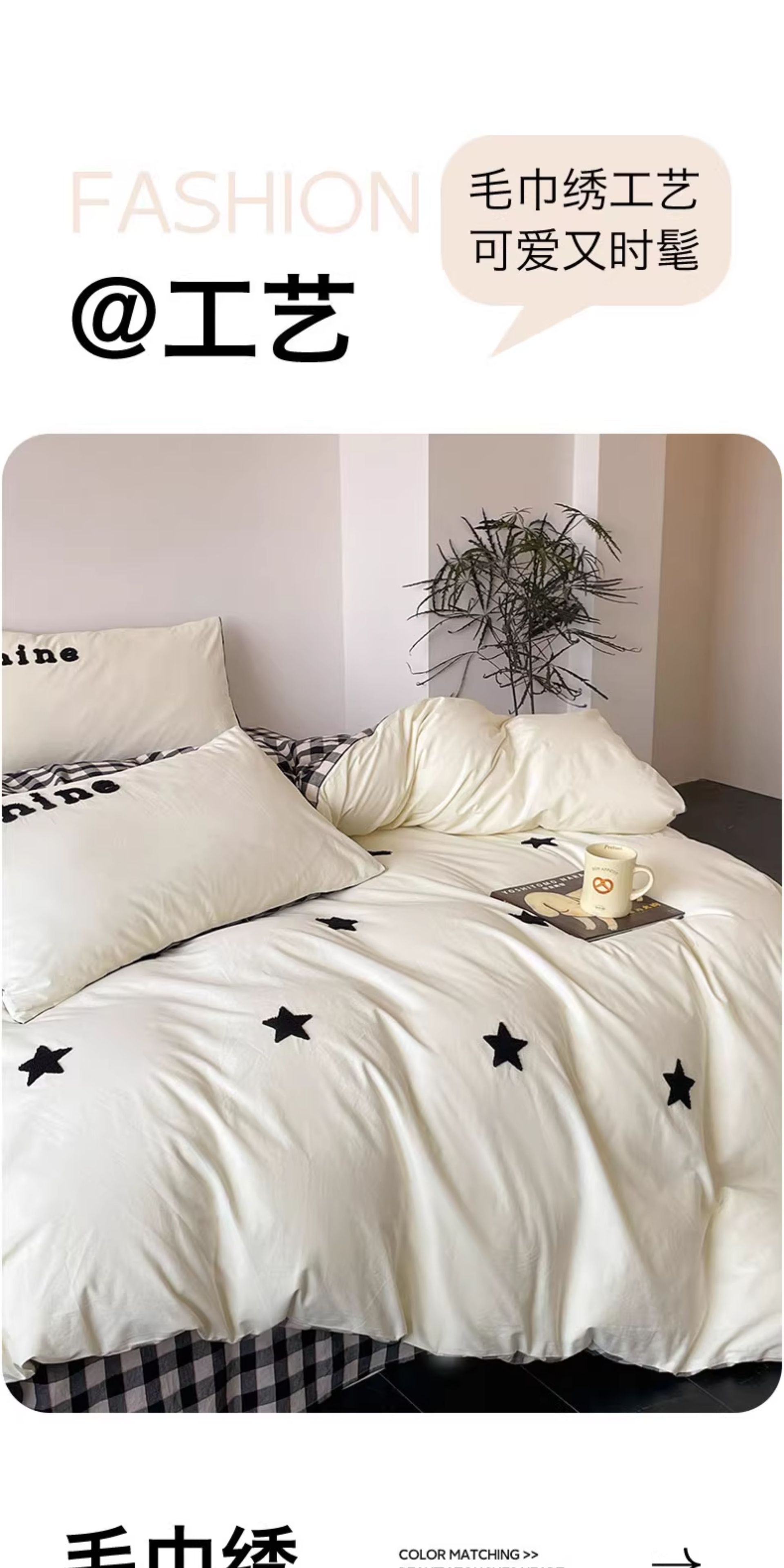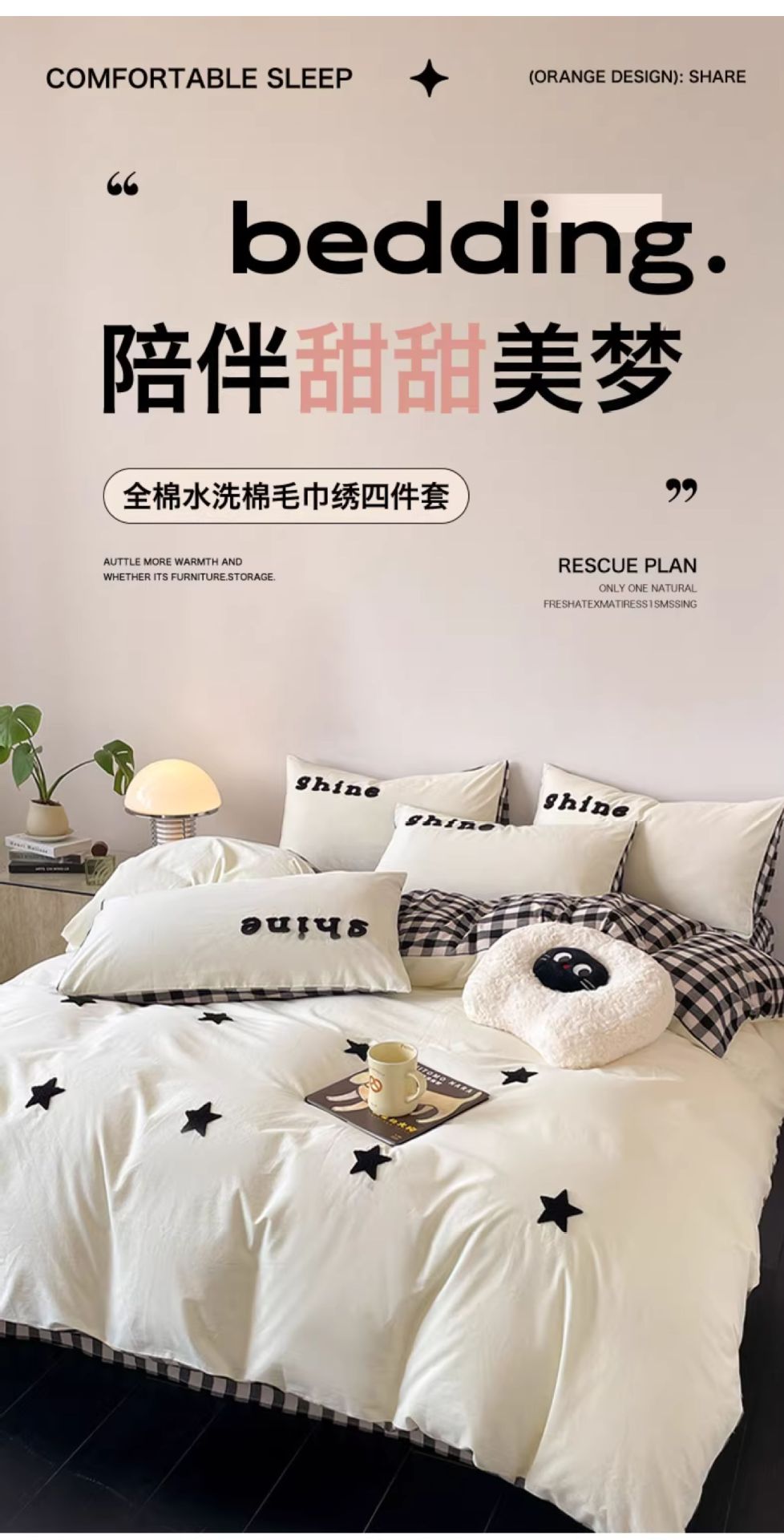 Toalla de algodón lavada con agua bordada cama de algodón cuatro piezas set sábanas de algodón cuatro estaciones colcha de cama general gaza de cama de alta calidad