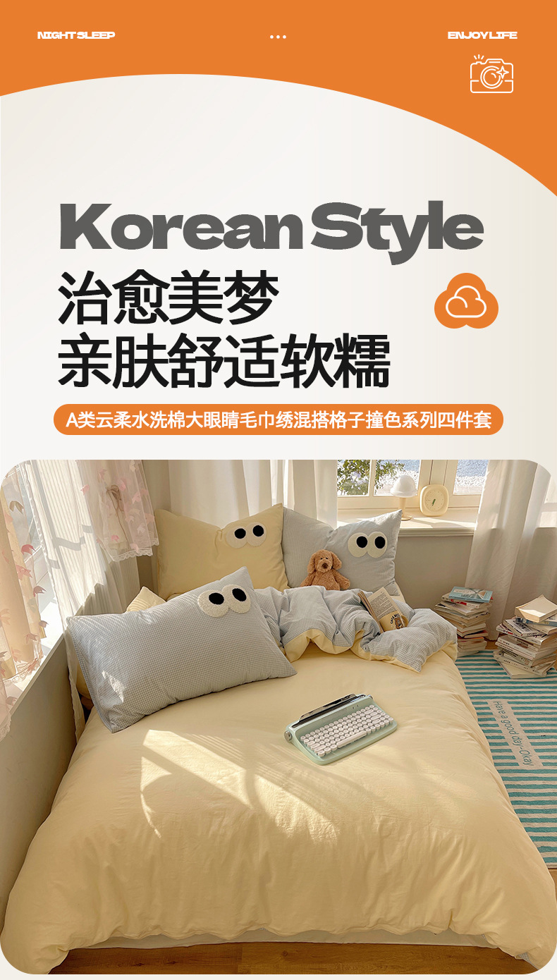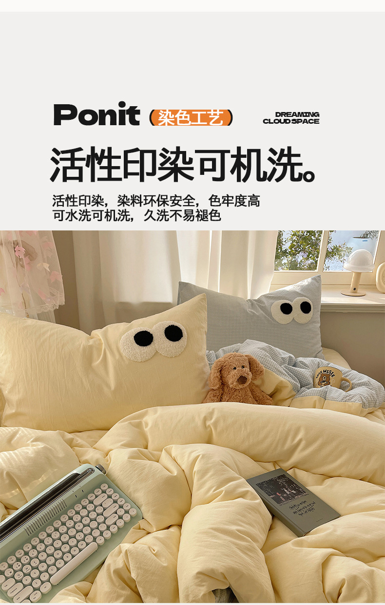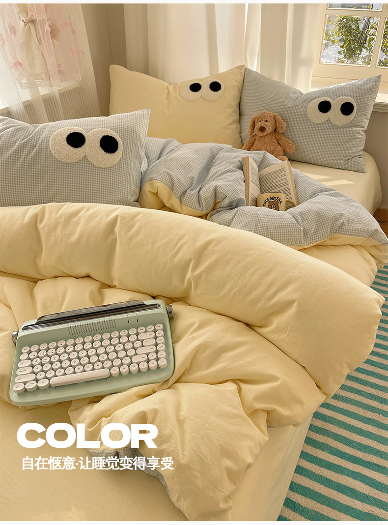 Cama de algodón lavado con agua cuatro temporadas colcha de cama de dormitorio universal de estudiantes tres piezas