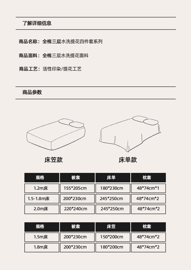 | Especificaciones de tamaño | [juego de tres piezas] especial para dormitorios estudiantiles [adecuado para 150x200cm edredones], 3 juegos de sábanas de 1,2 metros [sábanas 180x230 edredones 155x205], 4 juegos de sábanas de 1,5 metros [sábanas 250x245 edredones 200x230], 4 juegos de sábanas de 1,8 metros [sábanas 250x245 edredones 200x230], 4 juegos de sábanas de 2,0 metros [sábanas 245x250 edredones 220x240], 4 juegos de sábanas de 1,5 metros [edredones 150x200 edredones 200x230], 4 juegos de edredones de edredones de 1,8 metros [edredones 180x200 edredones de edredones] y 4 juegos de edredones de edredones de 1,8 metros 230] |