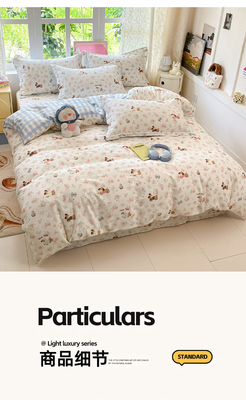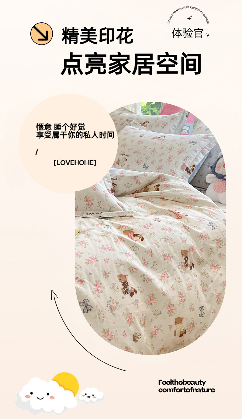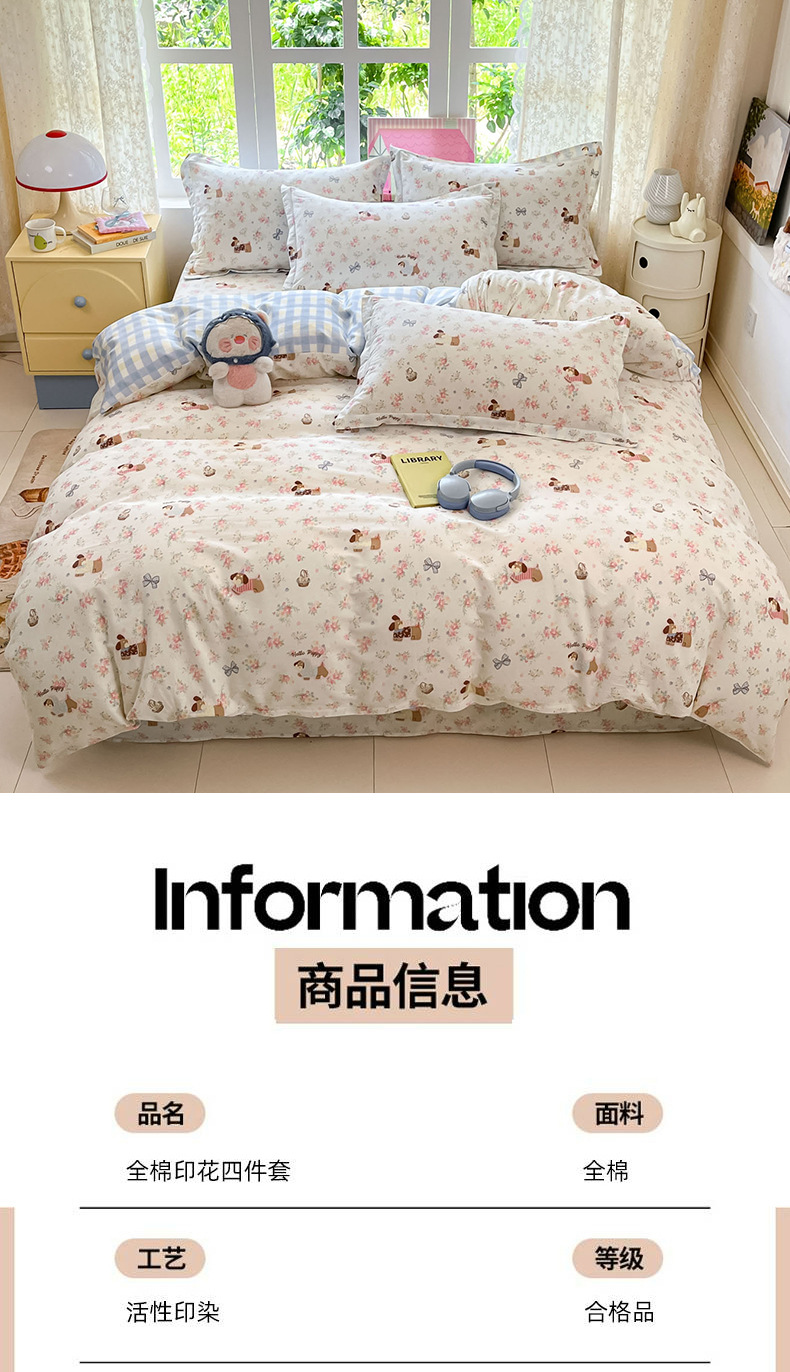 1.8 Conjunto de cuatro piezas de camisa de arroz [camisa de cama 180x200cm + colcha de cama 200x230cm + funda de almohada * 2]