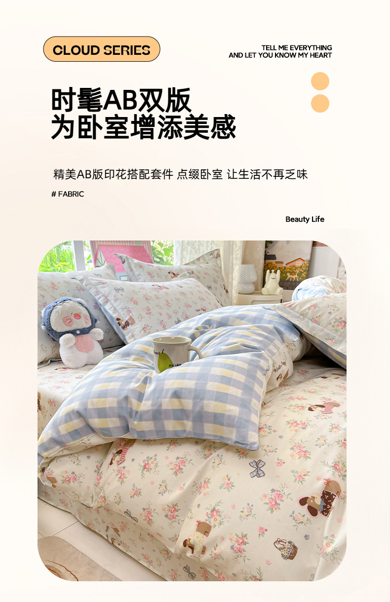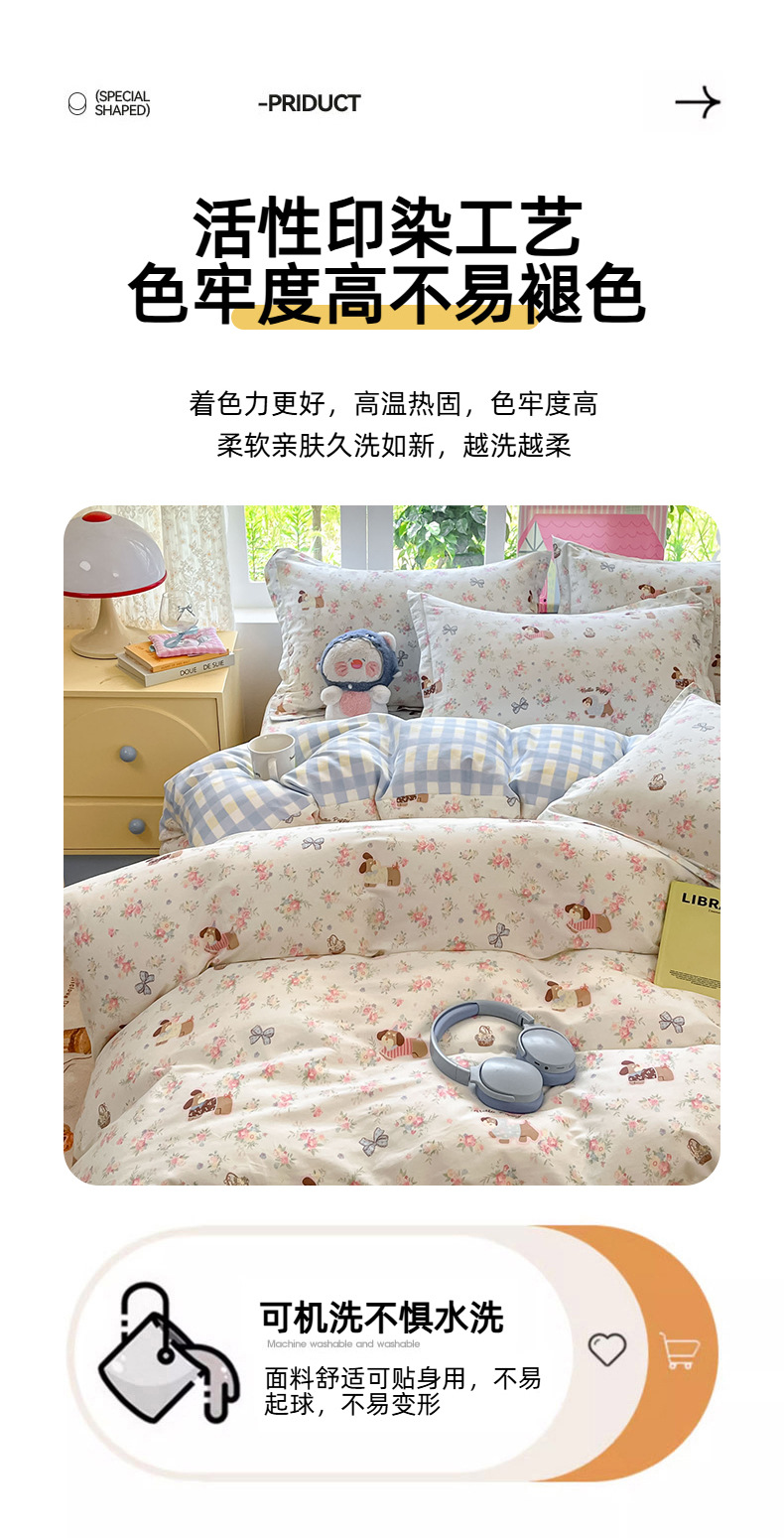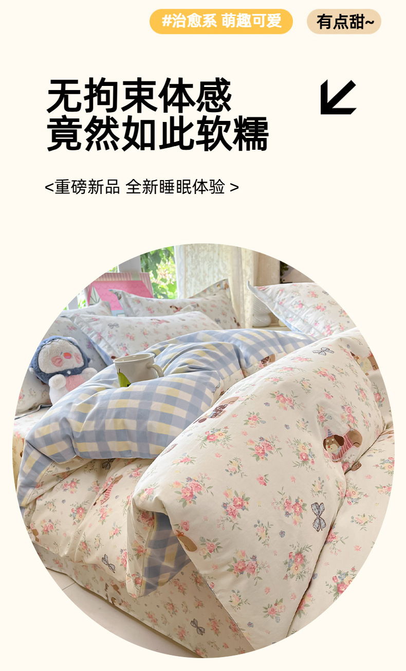 1.8 Conjunto de cuatro piezas de camisa de arroz [camisa de cama 180x200cm + colcha de cama 200x230cm + funda de almohada * 2]