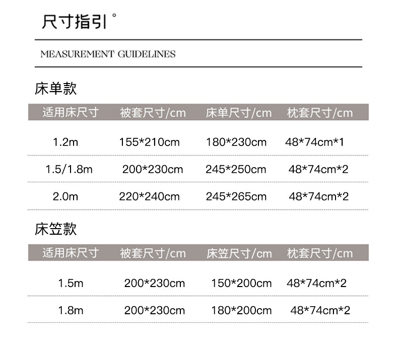 | Especificaciones de tamaño | 1.2m cama [conjunto de sábanas de tres piezas] - adecuado para núcleo de edredón 155x210cm, 1.5m cama [conjunto de sábanas de cuatro piezas] - adecuado para núcleo de edredón 200x230cm, 1.8m cama [conjunto de sábanas de cuatro piezas] - adecuado para núcleo de edredón 200x230cm, 2.0m cama [conjunto de sábanas de cuatro piezas] - adecuado para núcleo de edredón 220x240cm, 1.5m cama [conjunto de sábanas de cuatro piezas] - adecuado para núcleo de edredón 200x230cm, 1.8m cama [conjunto de sábanas de cuatro piezas] - adecuado para núcleo de edredón 200x230cm |