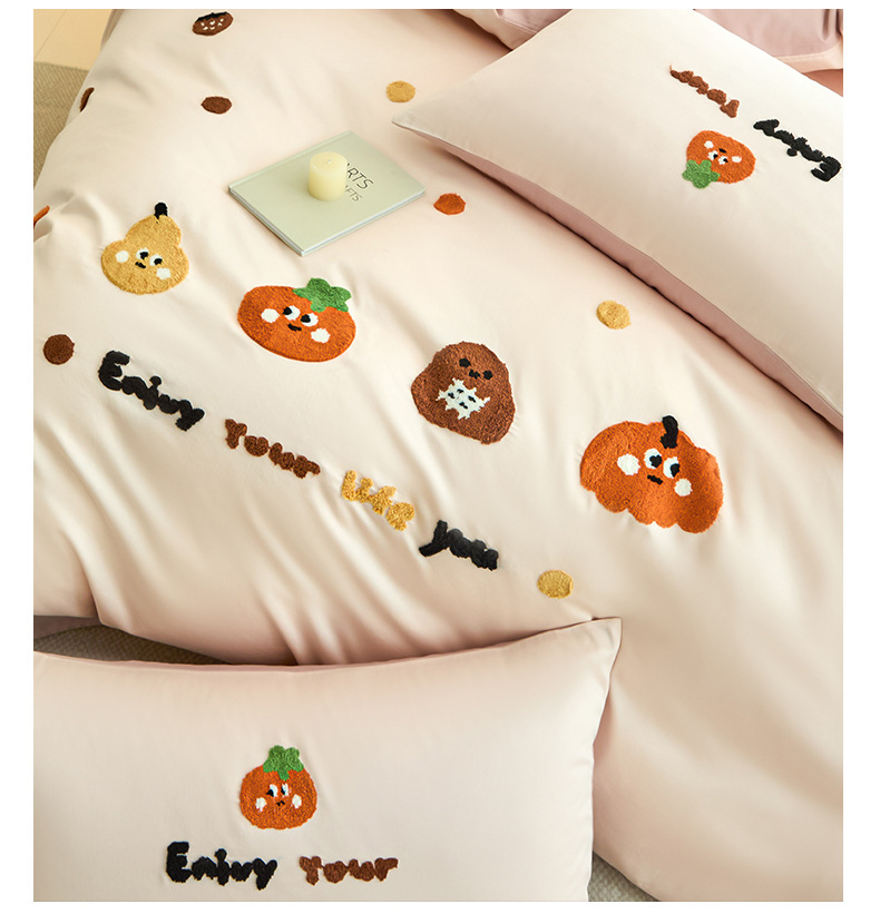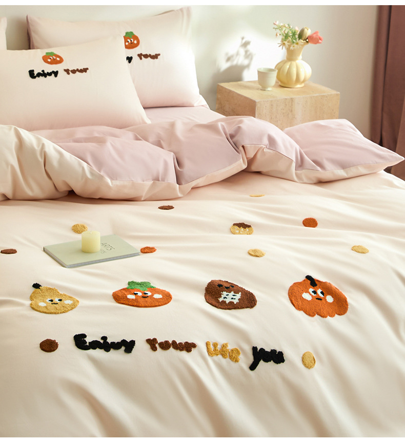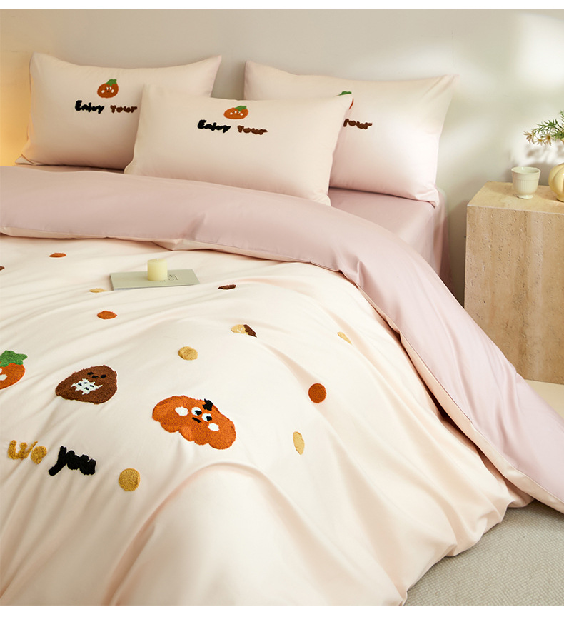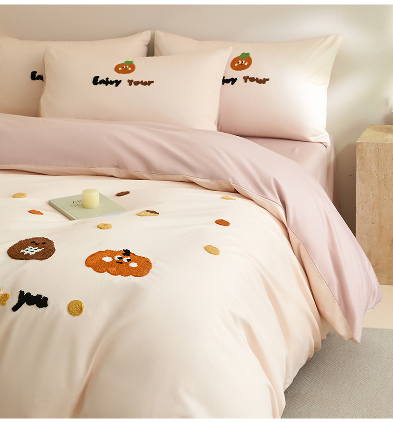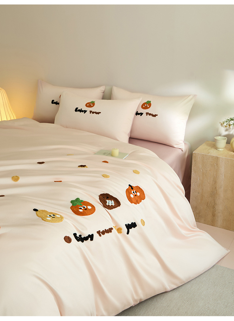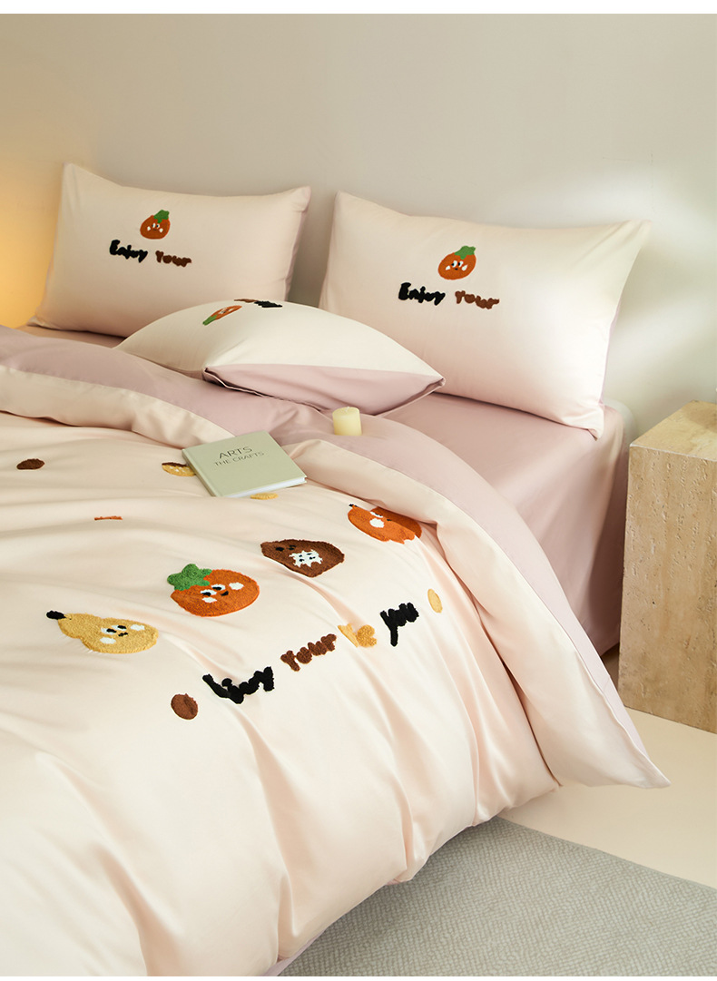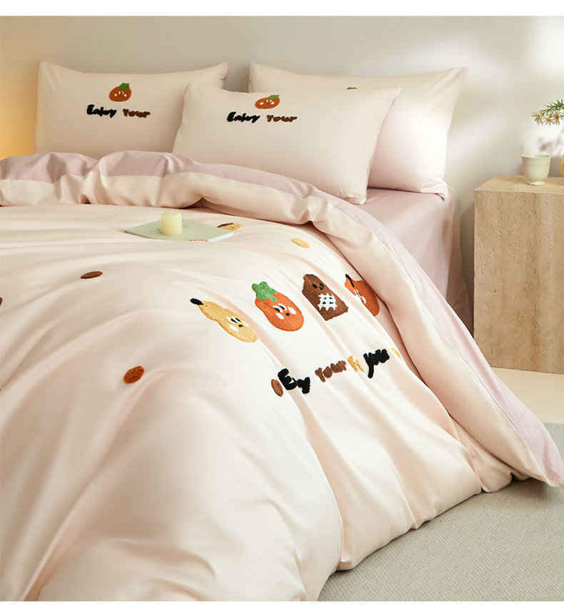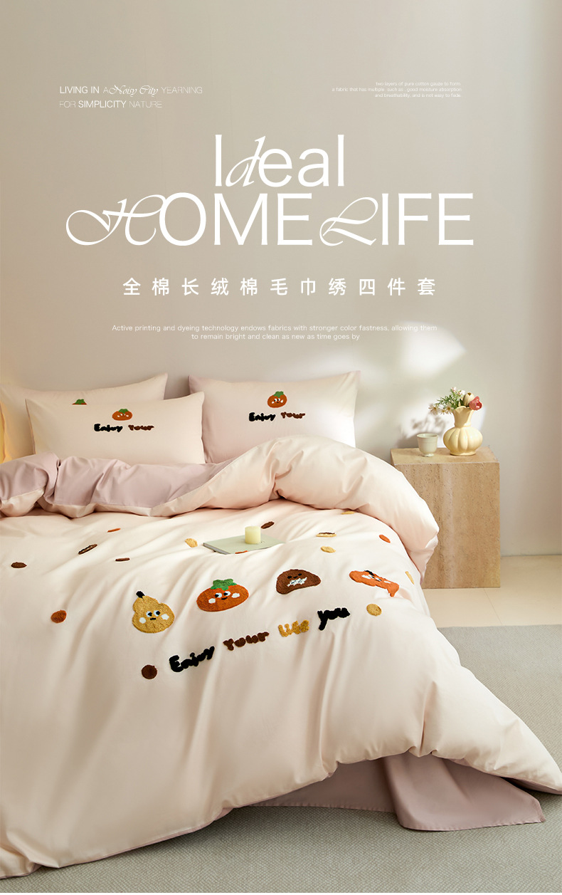 Toallas de algodón bordadas de cuatro piezas de algodón 2025, nueva colcha de cama de sábanas