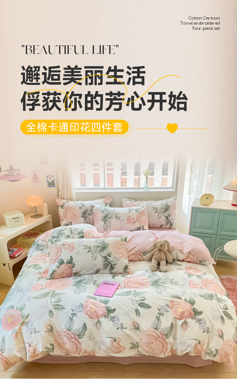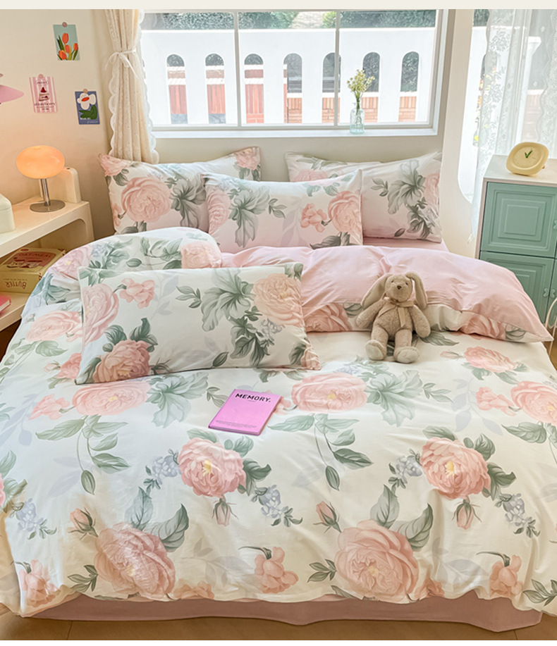 Algodón de cuatro piezas conjunto de algodón 2025 nueva ropa de cama fresca colcha de flores sábanas de dormitorio tres piezas conjunto de cama
