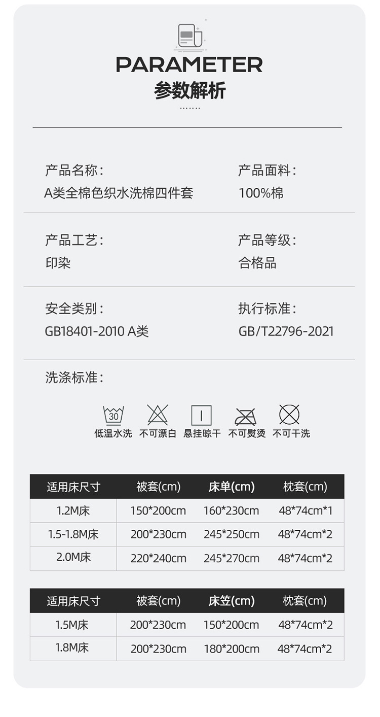| Especificaciones de tamaño | 1.2 Set de sábanas de arroz de tres piezas [sábanas de 160x230 cubierta de edredón 150x200], set de sábanas de 1,5 metros de cuatro piezas [sábanas de 245x250 cubierta de edredón 200x230], set de sábanas de 1,8 metros de cuatro piezas [sábanas de 245x250 cubierta de edredón 200x230], set de sábanas de 2.0 metros de cuatro piezas [sábanas de 245x270 cubierta de edredón 220x240], set de sábanas de 1,5 metros de cuatro piezas [sábanas de 150x200 cubierta de edredón 200x230], 1,8 metros de cama de cuatro piezas [casa de cama 180x200 cubierta de edredón 200x230] |